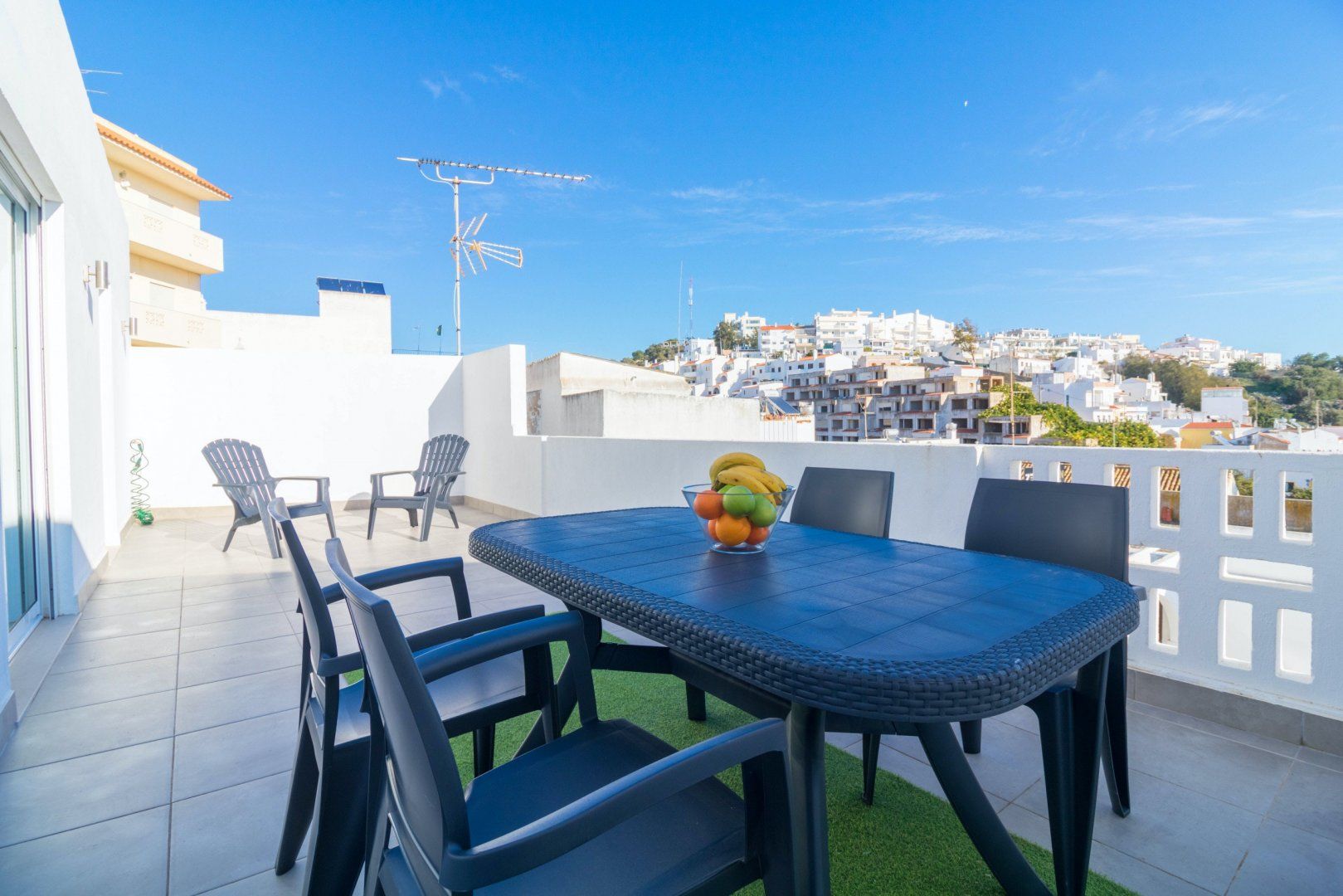 Located just five minutes on foot from the beach and only three minutes from the historical town centre of Albufeira with its vast array of bars, restaurants and shopping opportunities – you'll have the best of the Algarve in the palm of your hand here. Overlooking the Old Town's rooftops, the home's best asset undoubtedly rests outside on the balcony terrace. With an alfresco dining area and seating, it's a great spot for soaking up the Portuguese sunshine when you're not on the beach. Inside, contemporary designs create a cool place to relax in comfort and retreat from the sun.