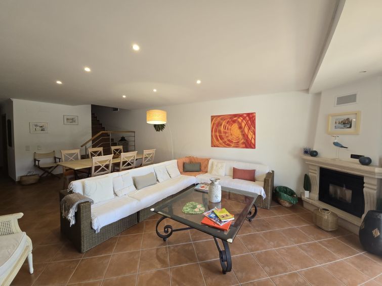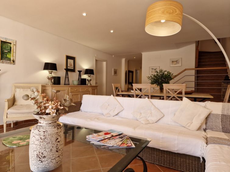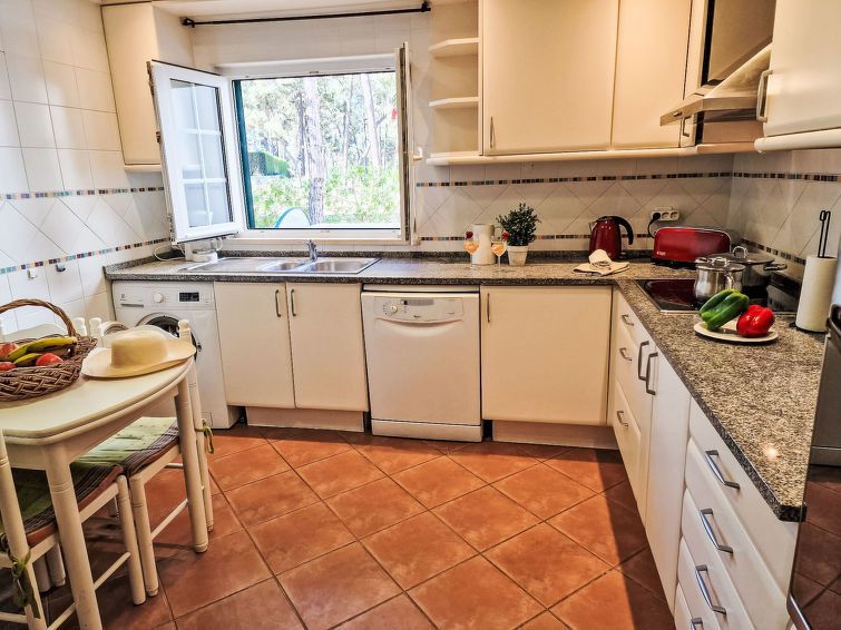 "V3 Falésia", 4-room villa 98 m2. Very practical and cosy furnishings: living room with dining table and cable TV (flat screen). Exit to the terrace. 1 room with 1 french bed (160 cm, length 200 cm), shower/WC. Kitchen (oven, dishwasher, 4 ceramic glass hob hotplates, toaster, kettle, microwave, freezer, electric coffee machine, Capsules for coffee machine (Dolce Gusto not incl)) with dining table.