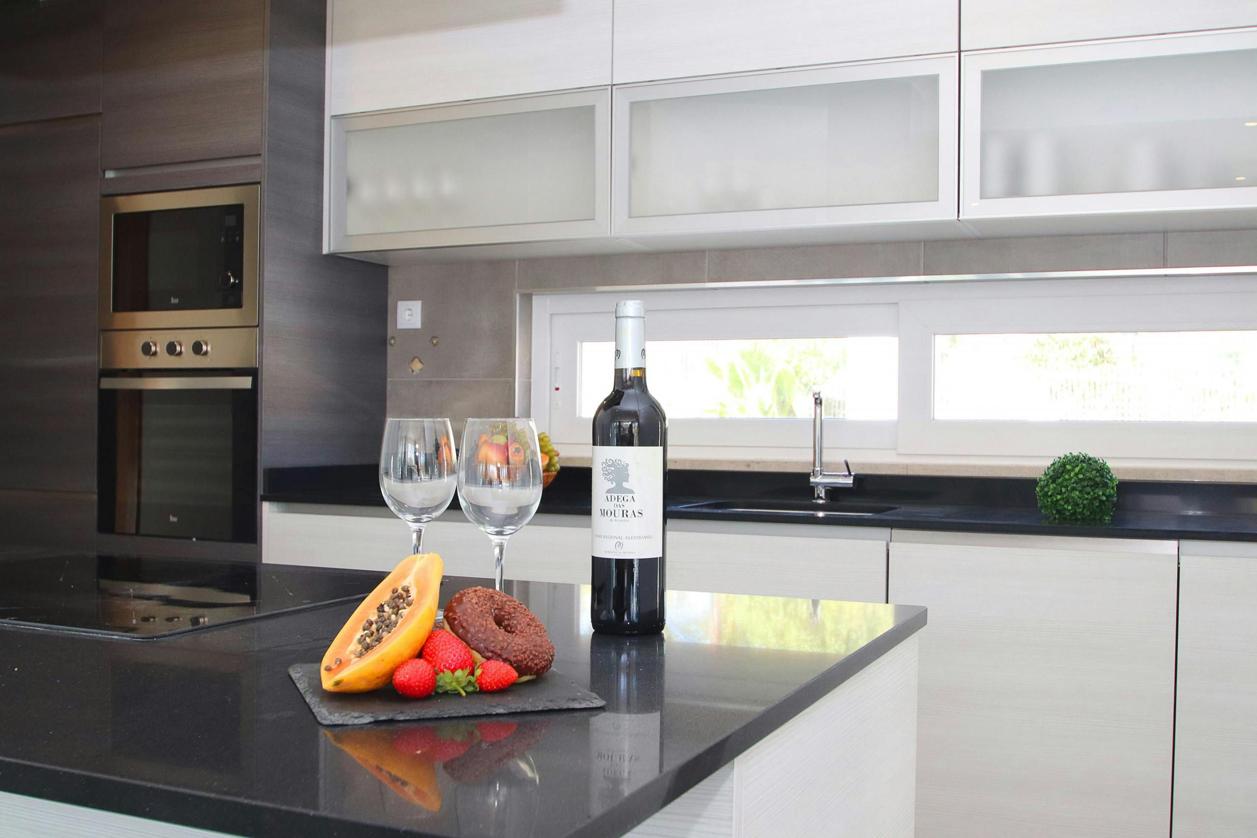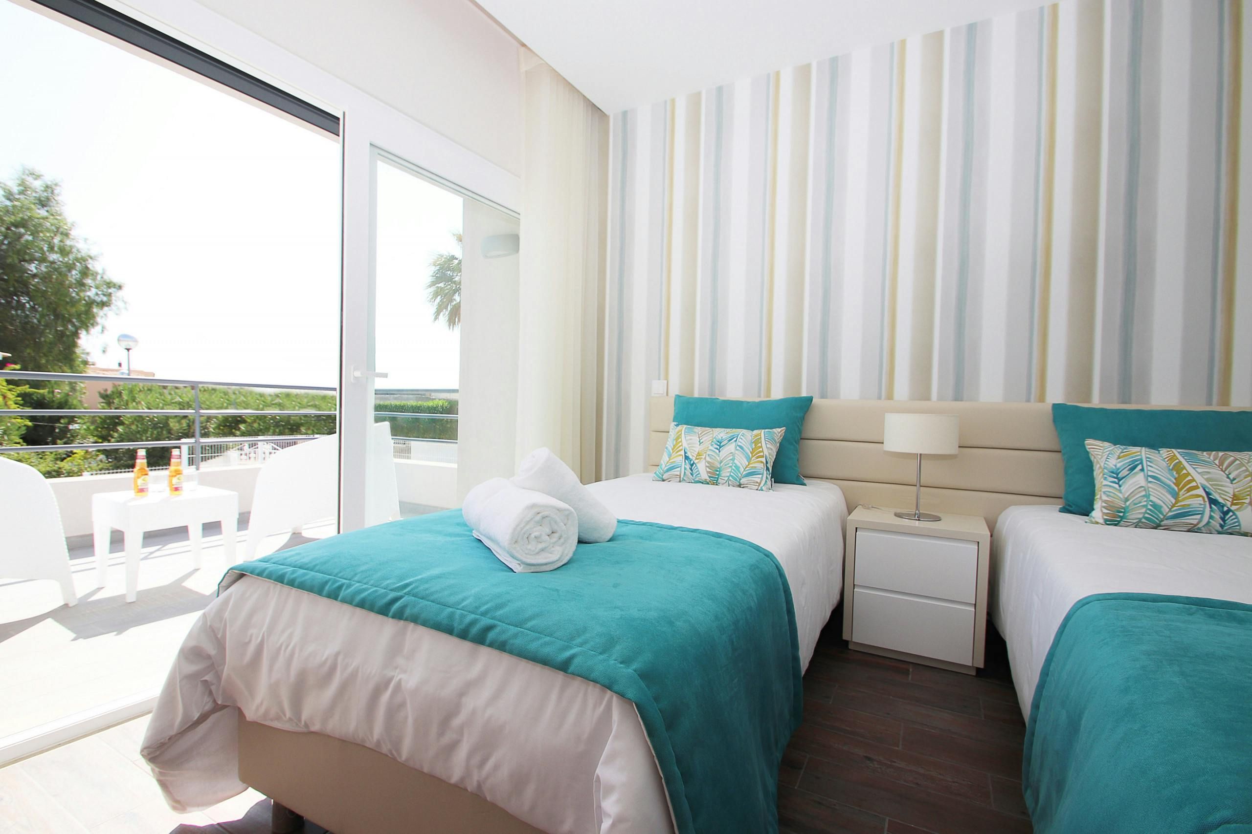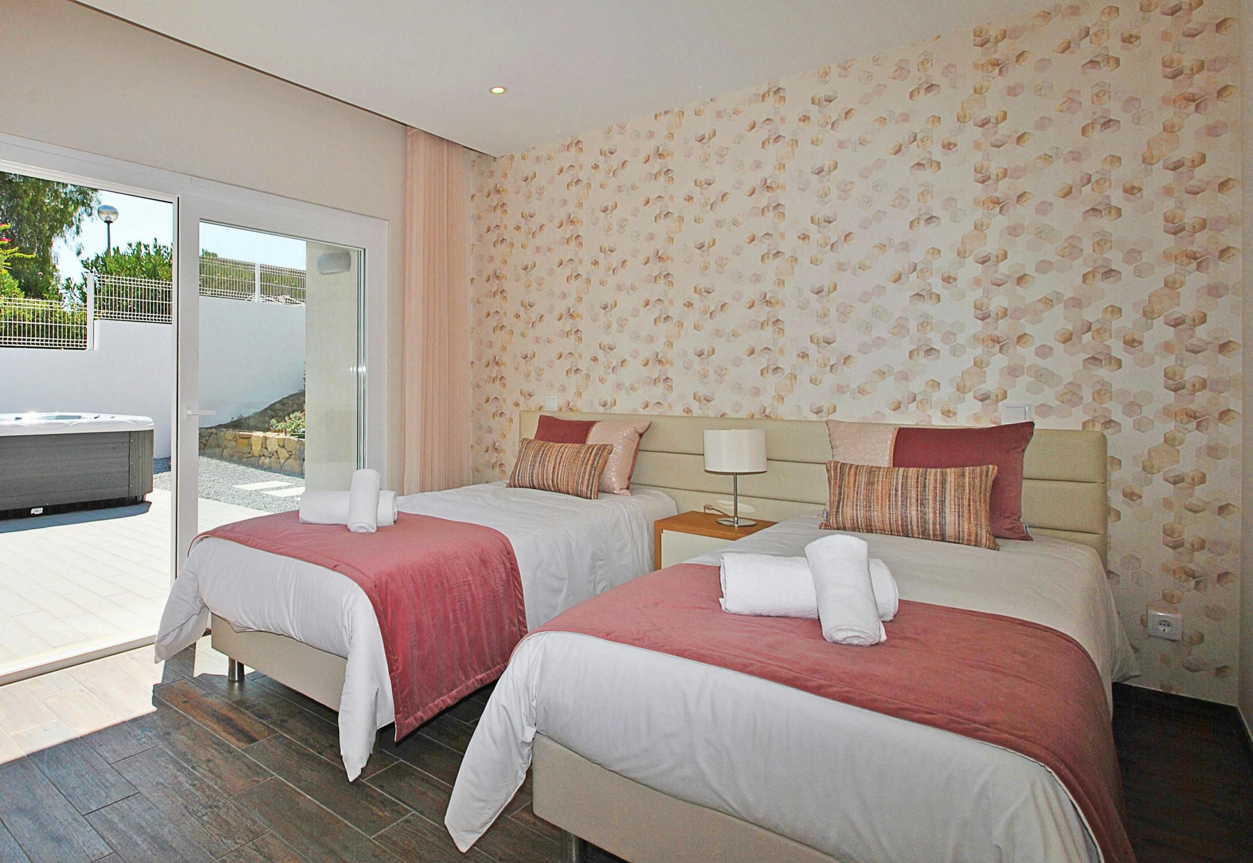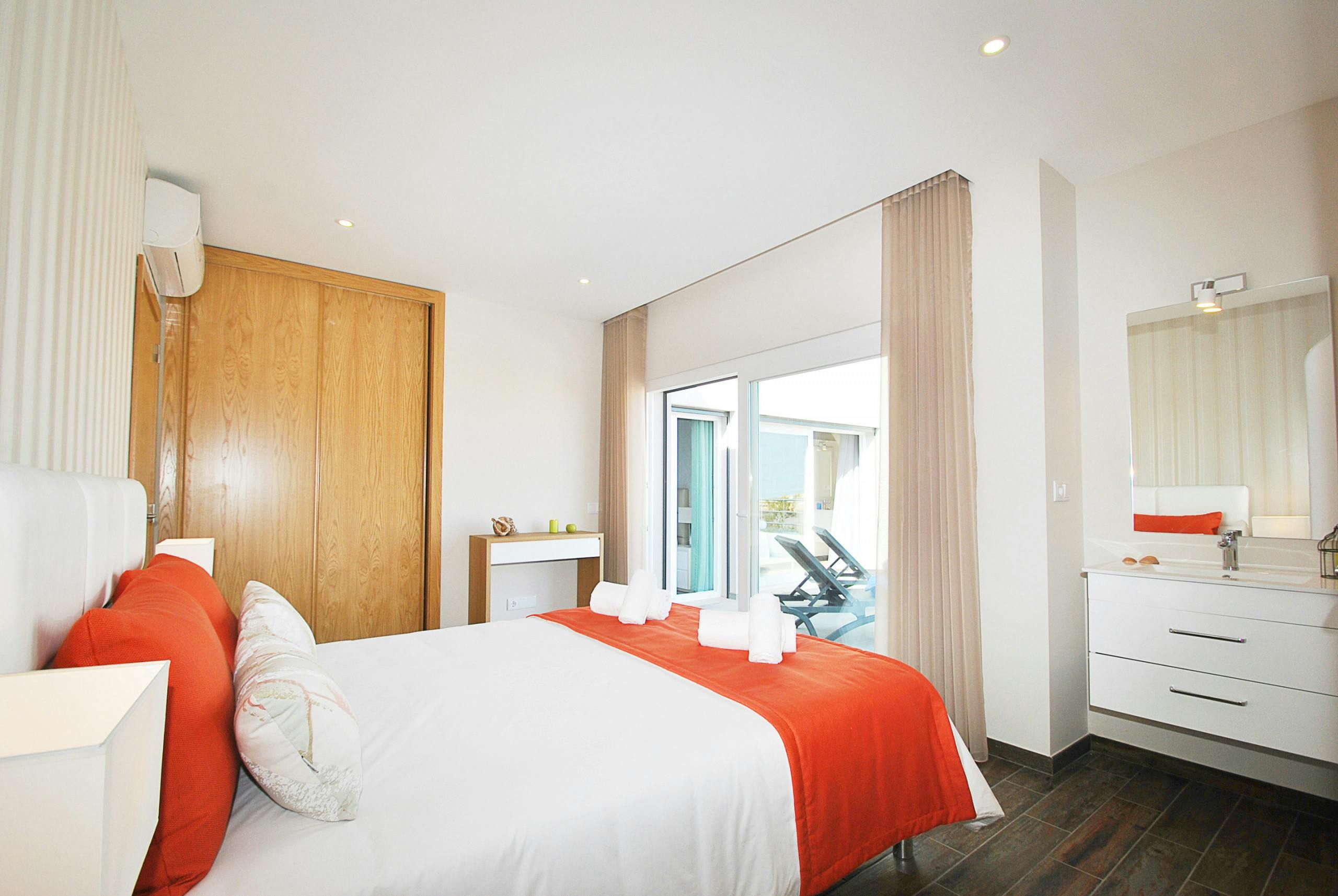 This luxurious villa has been designed for large groups seeking a relaxing stay on the Algarve. The big swimming pool can be heated and there’s a hot tub for spa sessions (for an additional fee). Outdoor dining comes courtesy of the portable barbecue and there are layers of terraces and balconies to this place. It’s modern and bright inside, with a sociable, open living area and a dedicated games room. You’ll find this villa in Armação de Pera, just 750 metres from the golden sandy beach and an easy walk to shops, supermarkets, restaurants and bars.
