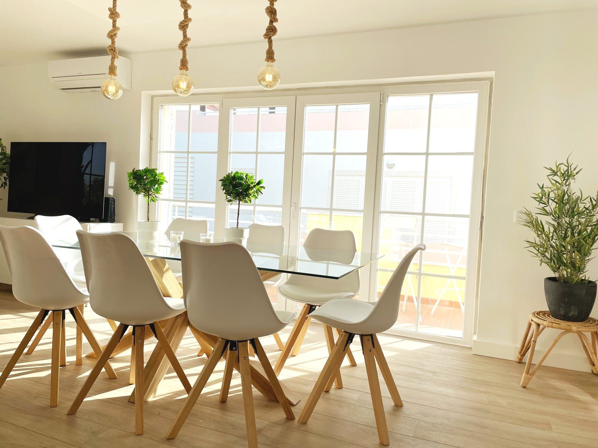 This stylishly designed apartment is waiting to welcome you on your peaceful trip to the Algarve. The biggest draw of the home is, of course, the large rooftop terrace offering views over this scenic landscape, but we also adore the little balcony, overlooking the Ria Formosa lagoon nearby, perfect for morning coffees in the sunshine. You’ll be in a central spot, close to the ferry boat to Beach Island so you can spend time relaxing on Praia de Cabana, while the charming fishing village of Cabanas, with its delicious seafood restaurants, can be reached in just two minutes by foot.