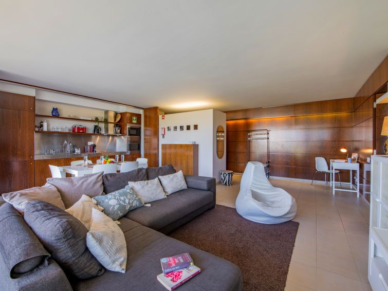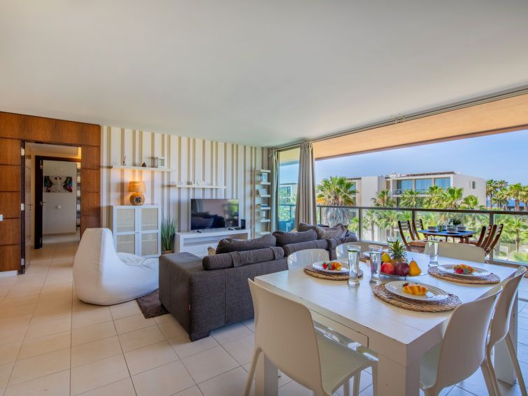 "Algarve Sun-Sea Retreat", 3-room apartment 104 m2 on 3rd floor. Spacious and bright, practical and cosy furnishings: open living/dining room with 1 double sofabed, TV, international TV channels, flat screen, air conditioning and forced-air heating. Exit to the terrace. 1 room with 1 french bed (180 cm, length 200 cm), hip bath/WC, double hand-basin, air conditioning and forced-air heating.