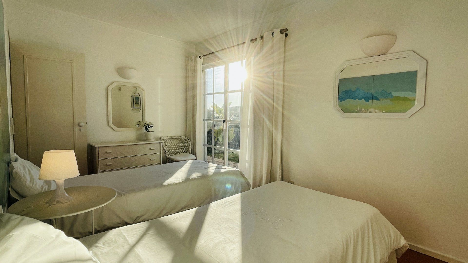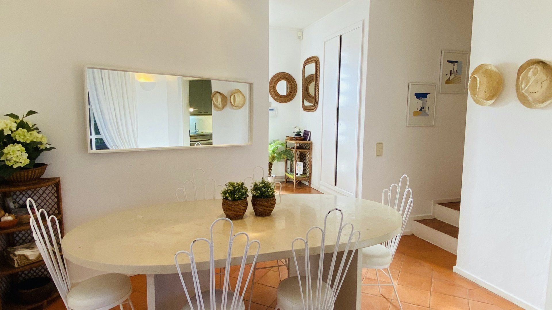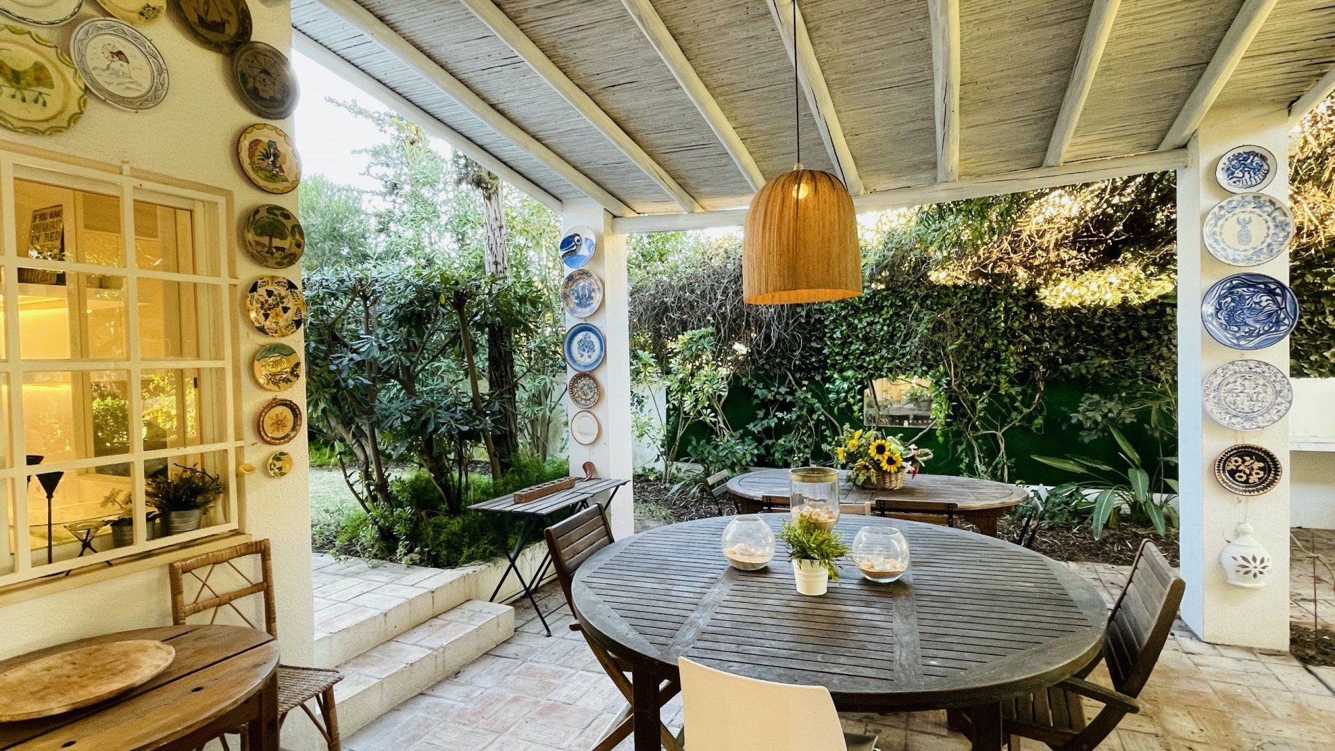 Also wedged between terracotta tiles and exposed rafters, you’ll find a generous bedroom that’s practically designed for afternoon naps. That’s the general feeling this home instils – to forget about time and simply do what moves you in the moment. If that happens to be a casual afternoon swim in the pool, then so be it. Otherwise, spend time lounging poolside with an ice cold drink in hand, admiring the porcelain work of the plate-decorated walls right where you can dine alfresco, or simply staring at the view.
