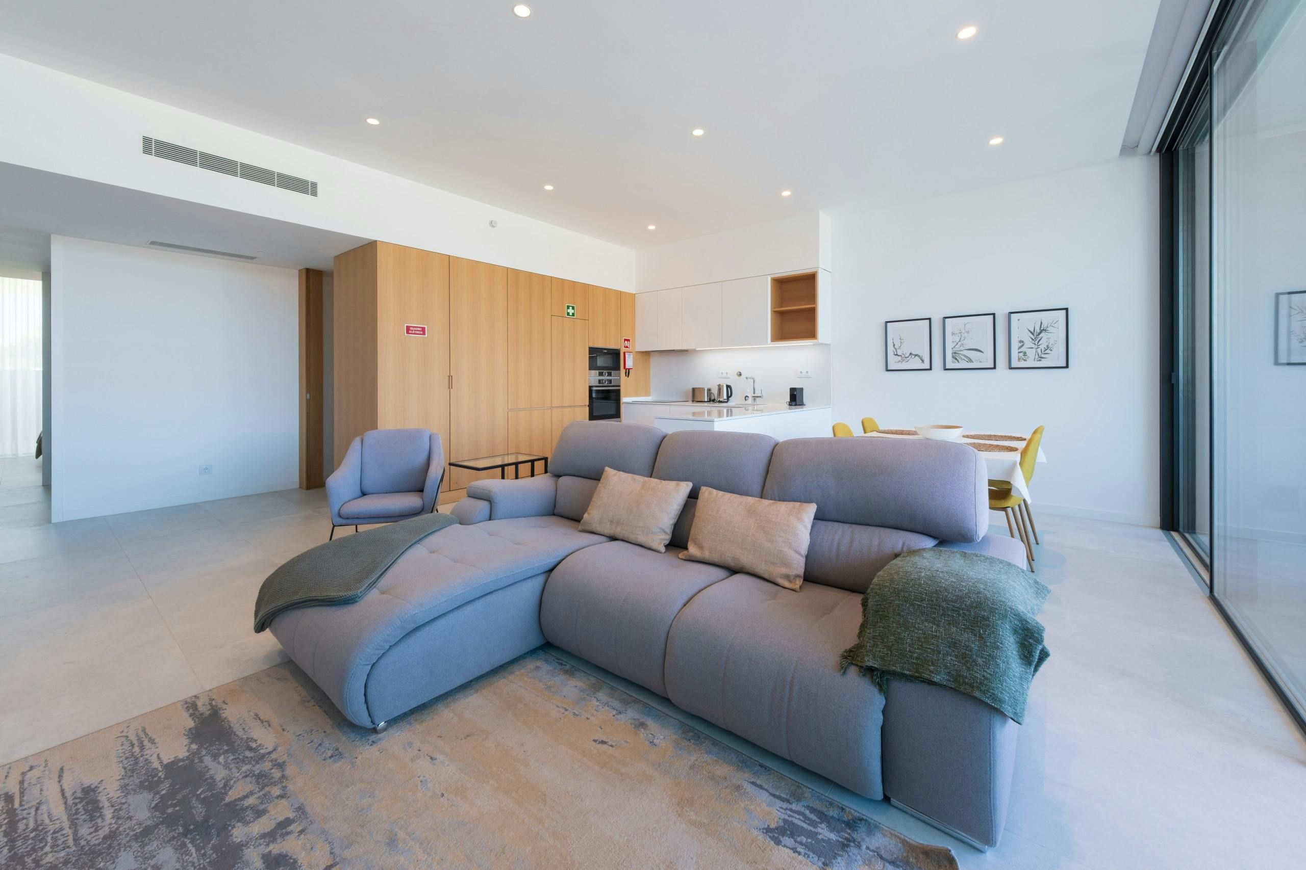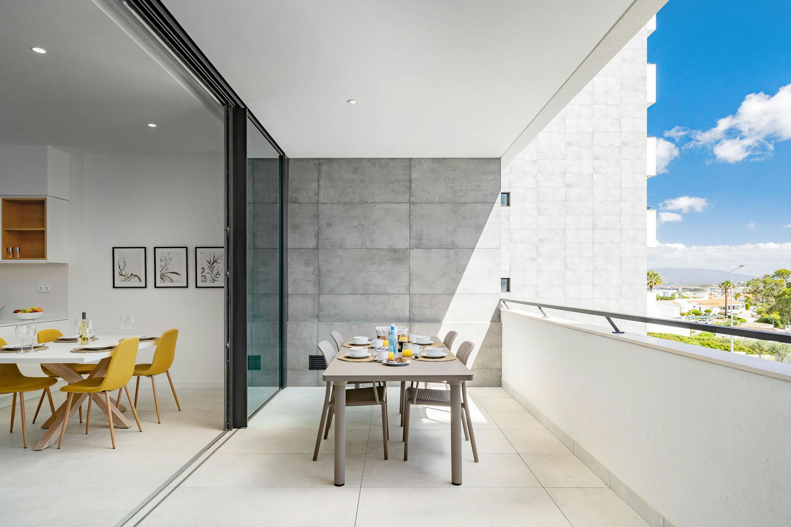 This modern apartment puts you within striking distance of several Algarve beaches, with Praia da Batata, Porto de Mós and Praia Dona Ana all within two kilometres. For those not keen on sinking their feet into the sand or splashing in the sea, there’s also a plethora of golf courses in the surrounding area and eateries within walking distance, so you’re never far from authentic Portuguese cuisine. Back home, you can enjoy on-site amenities such as a gym, sauna and communal swimming pools to keep you entertained, while the private balcony is just the spot for sundowners as the day ends.