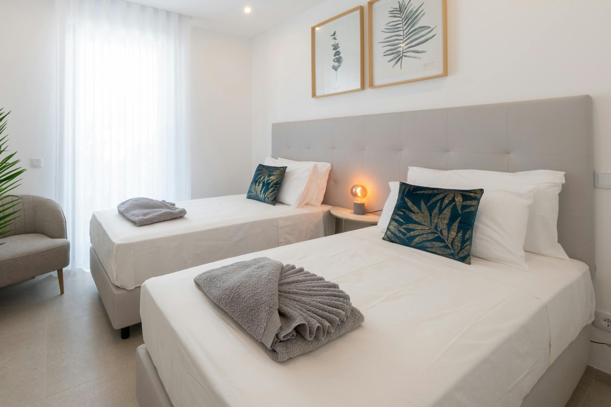 Located on the ground floor of a tranquil apartment building in Lagos, this apartment is close to Porto de Mós beach. The garden and terrace have space for dining alfresco and for children to play, and you'll have access to a communal pool and children's pool. The twin beds can be joined together to make a super king bed, making this home great for a couples' retreat as well as for family and friends. To elevate your stay and add further convenience, your host can provide an array of extras for an additional fee, including private chefs, childcare equipment, and food hampers.