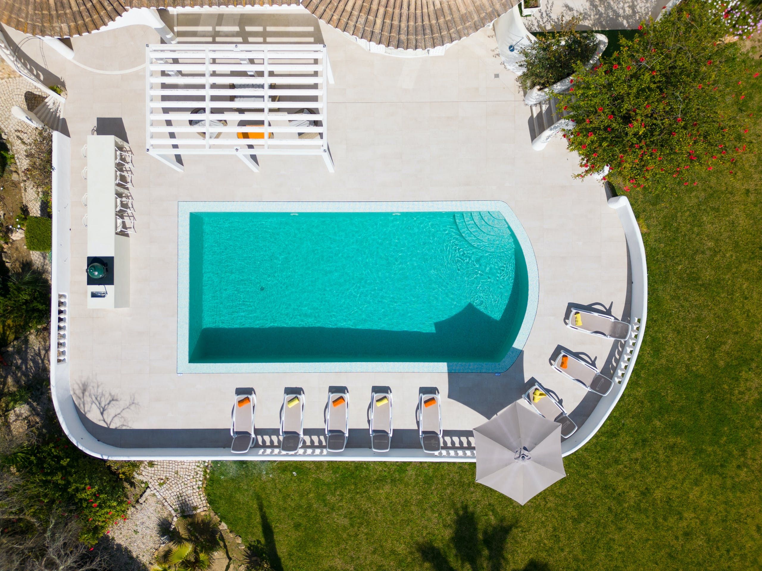 Occupying a peaceful spot just outside Lagos town centre, this family-friendly home is a refreshing coastal escape. There’s a sheltered garden, a private pool (heated upon request) and a covered pergola with a 'big green egg' barbecue – perfect for lingering sunset meals. It’s also extremely well located, with restaurants, bars and shops just a twenty-five-minute walk away. Meia Praia beach is also within walking distance, although we recommend hiring a car if you’d like to explore the beautiful beaches further along the coast.