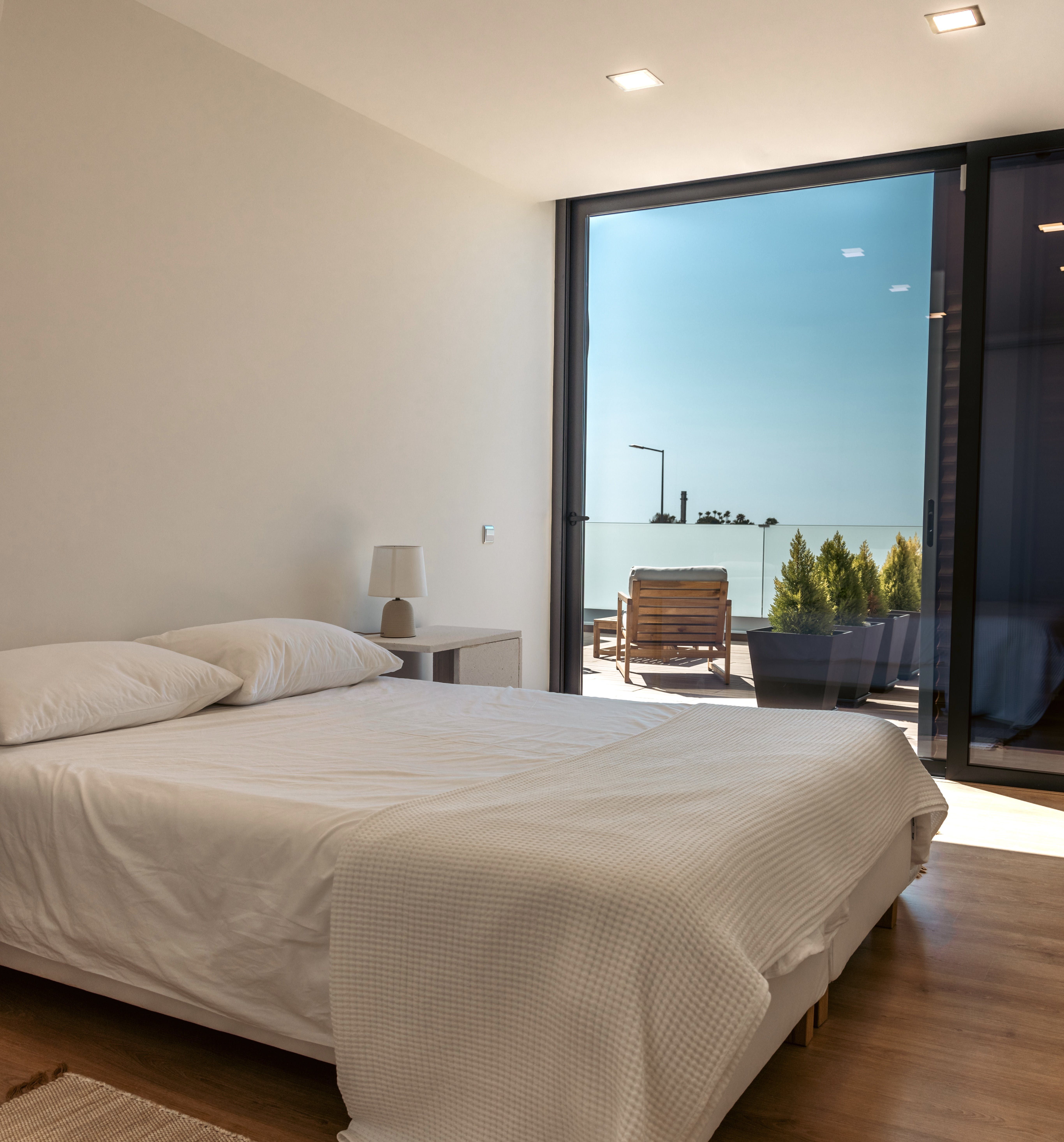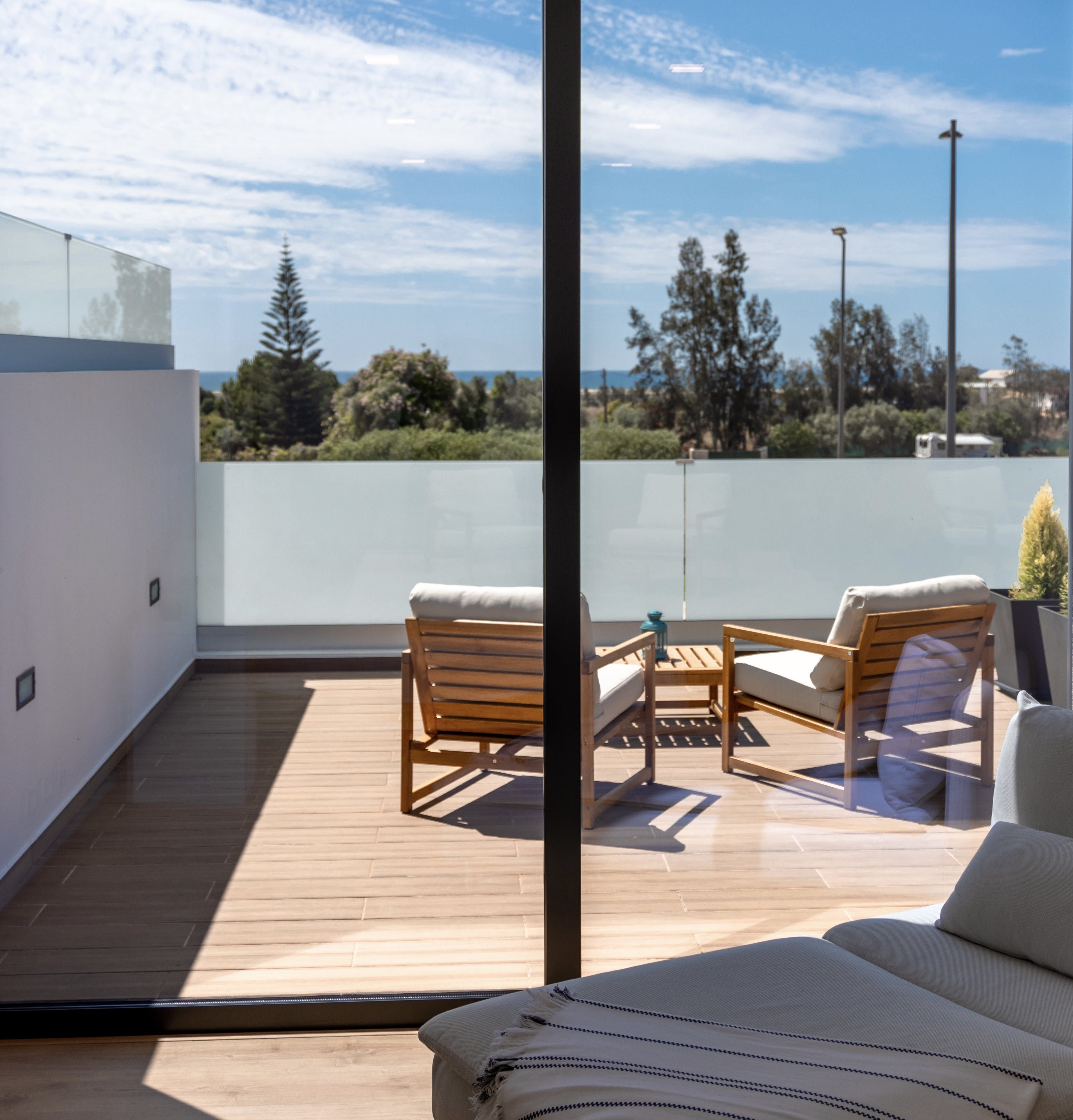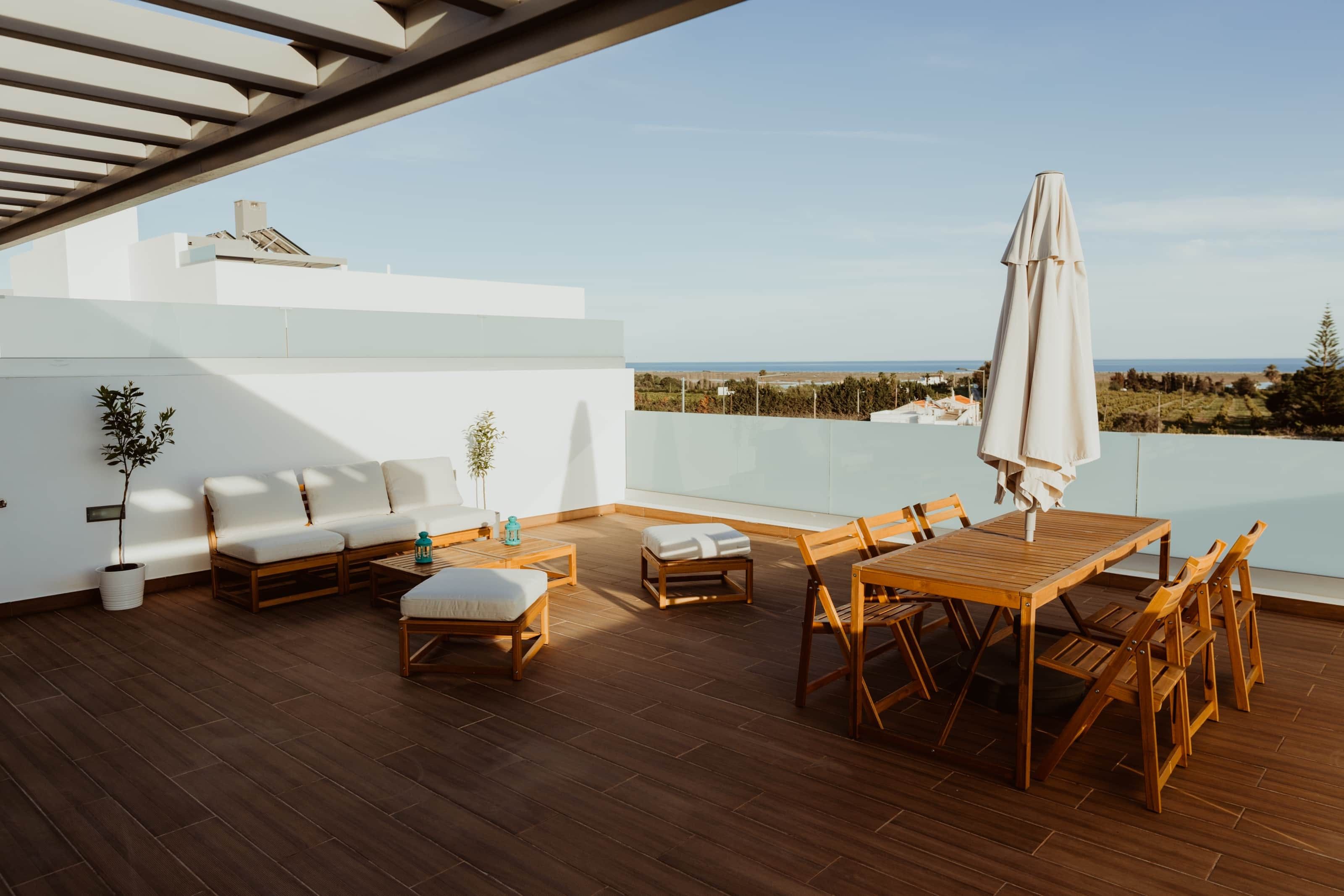 Spread over three floors, this seamless villa lies in the Algarve, with its own private pool and views of the Atlantic ocean from the rooftop terrace. All the bedrooms enjoy their own en-suites, with one on the ground floor for easy accessibility. The location is close to several similar villas so there is the potential for some noise from neighbours, and with a noise curfew in the evening, this won't be the place for parties. You'll want a car here for visiting the beaches, or heading into central Tavira where you'll find restaurants and historical buildings.