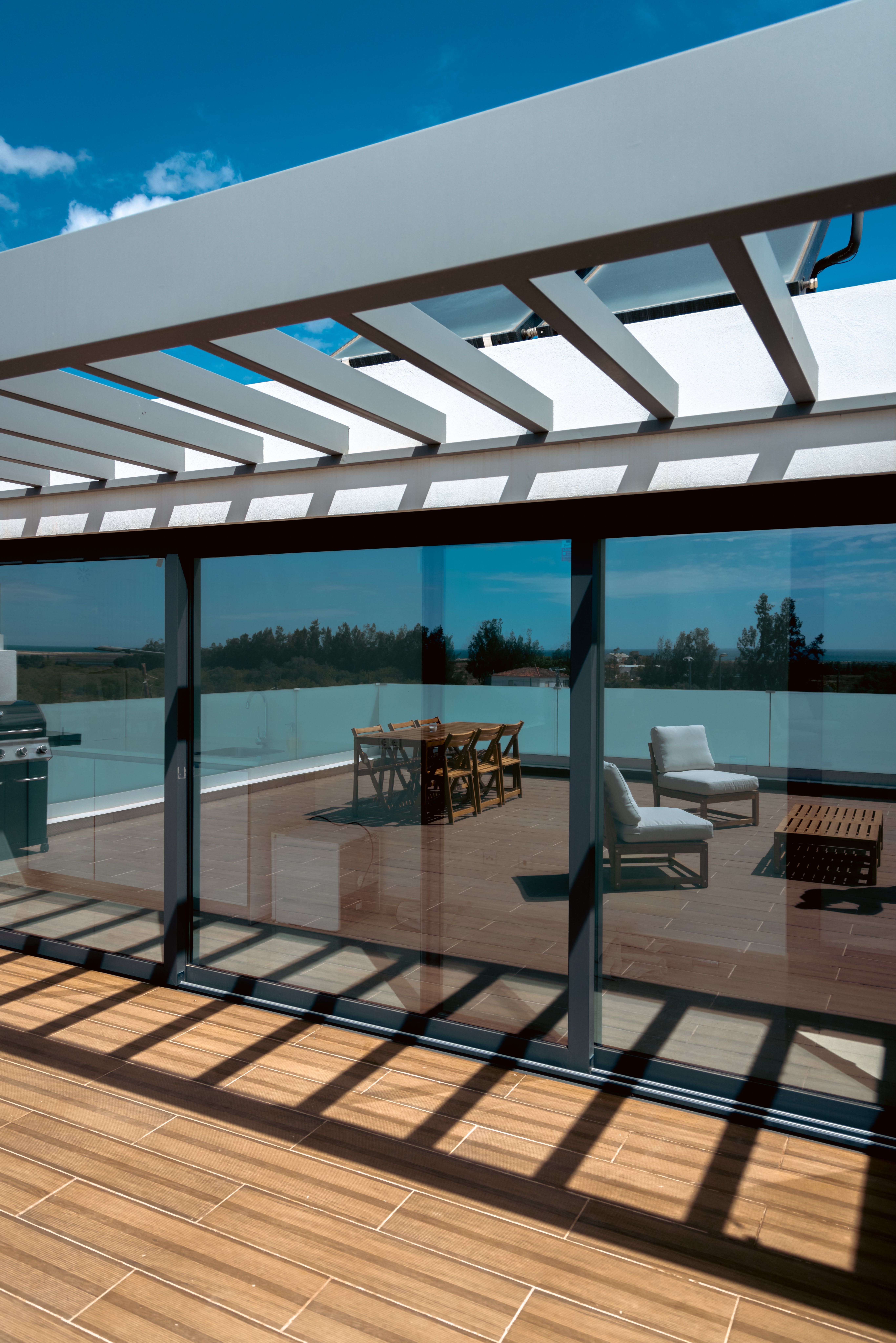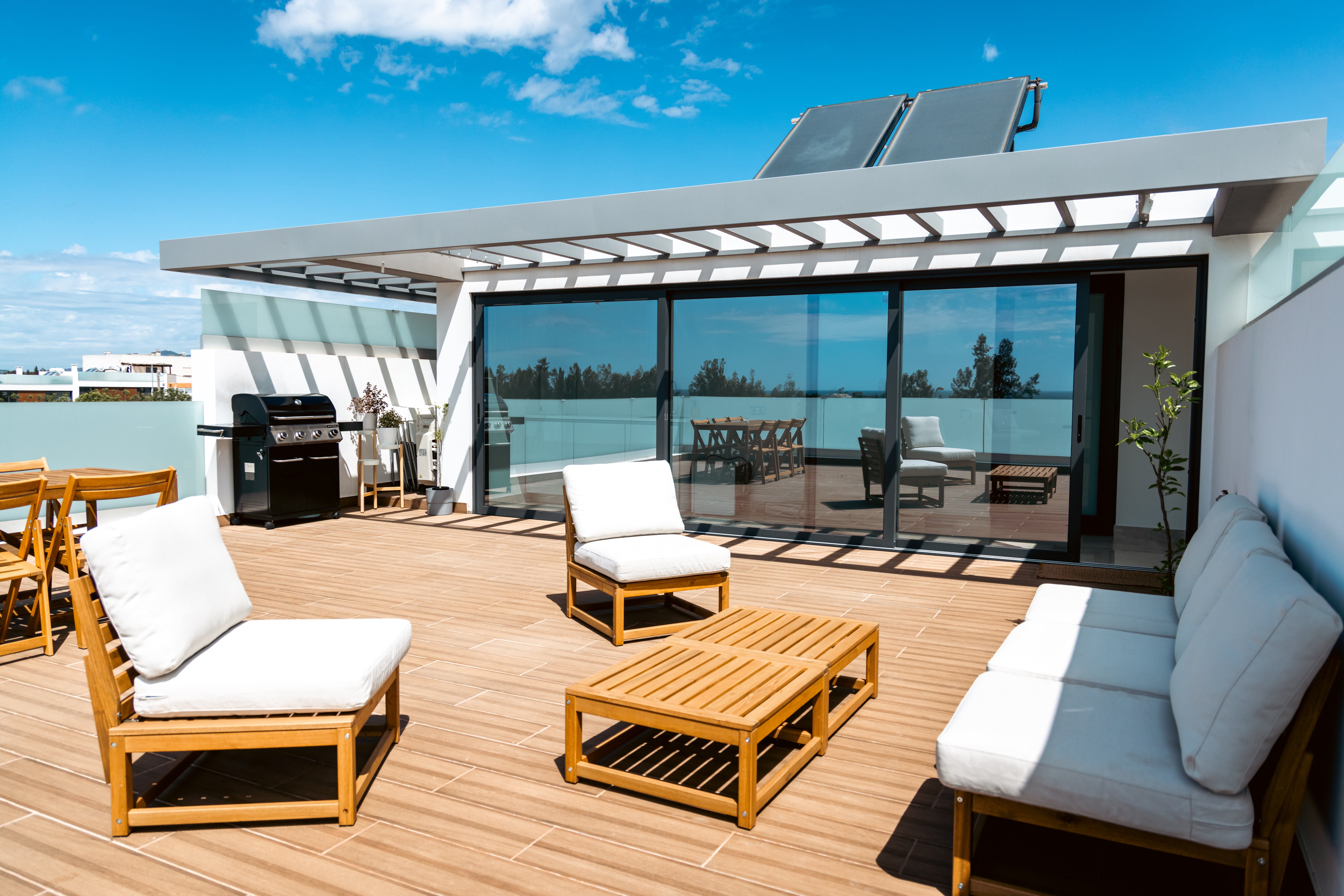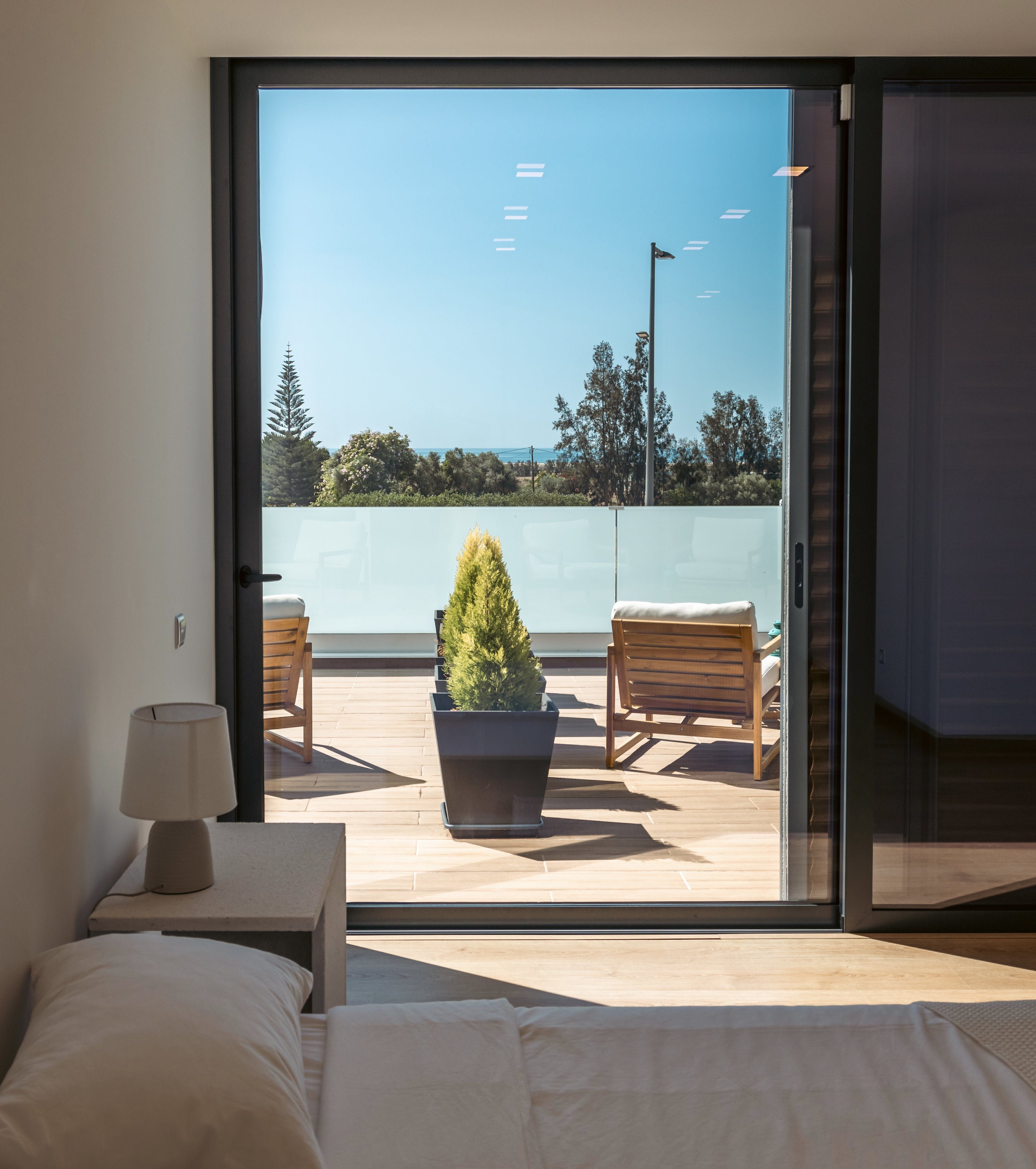 Spread over three floors, this seamless villa lies in the Algarve, with its own private pool and views of the Atlantic ocean from the rooftop terrace. All the bedrooms enjoy their own en-suites, with one on the ground floor for easy accessibility. The location is close to several similar villas so there is the potential for some noise from neighbours, and with a noise curfew in the evening, this won't be the place for parties. You'll want a car here for visiting the beaches, or heading into central Tavira where you'll find restaurants and historical buildings.