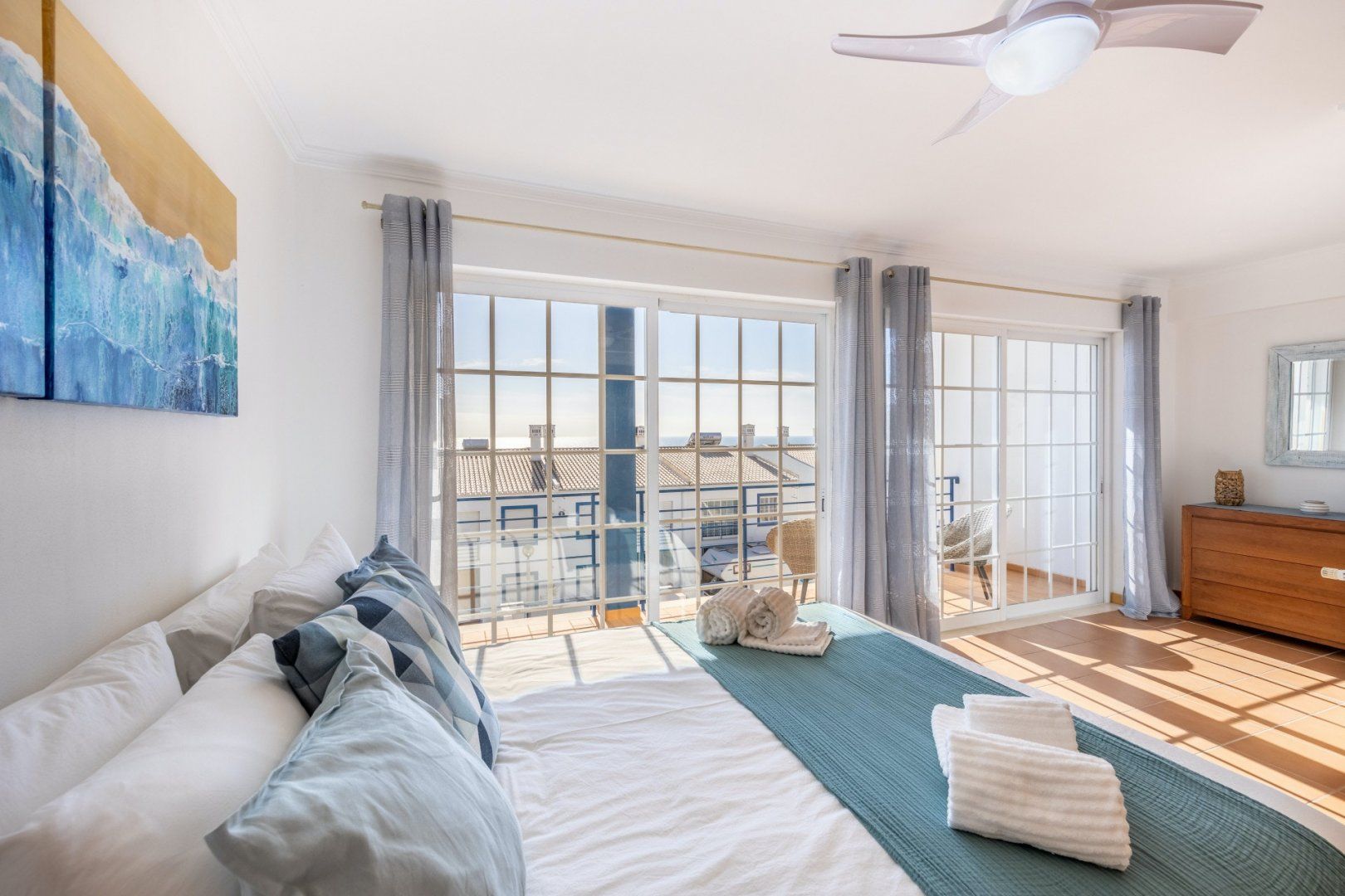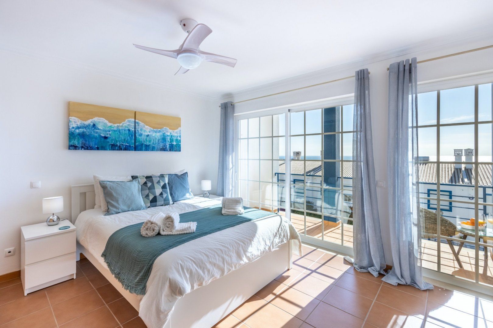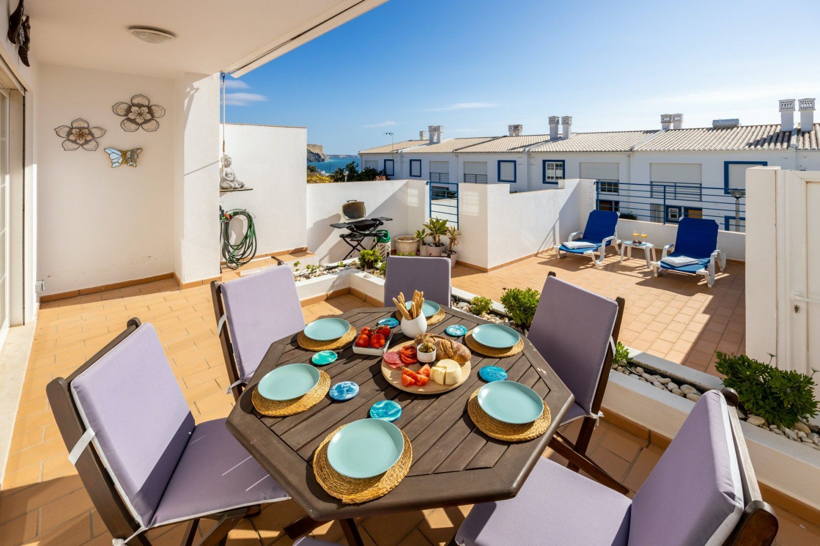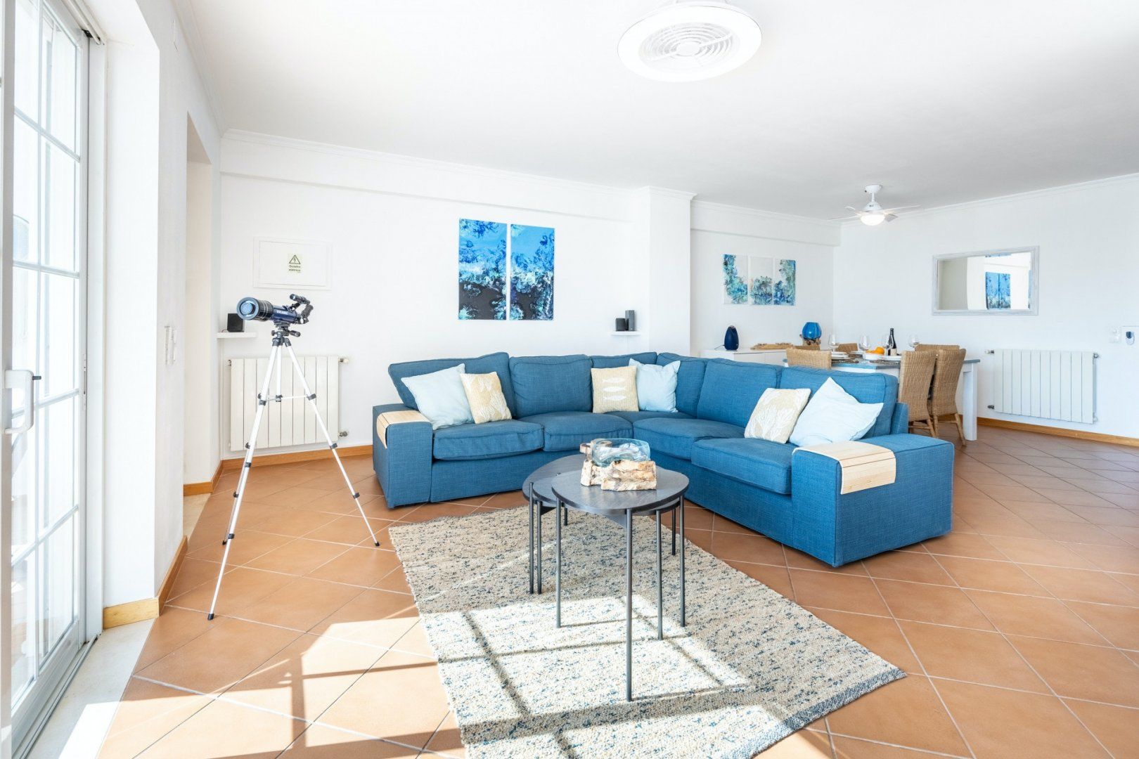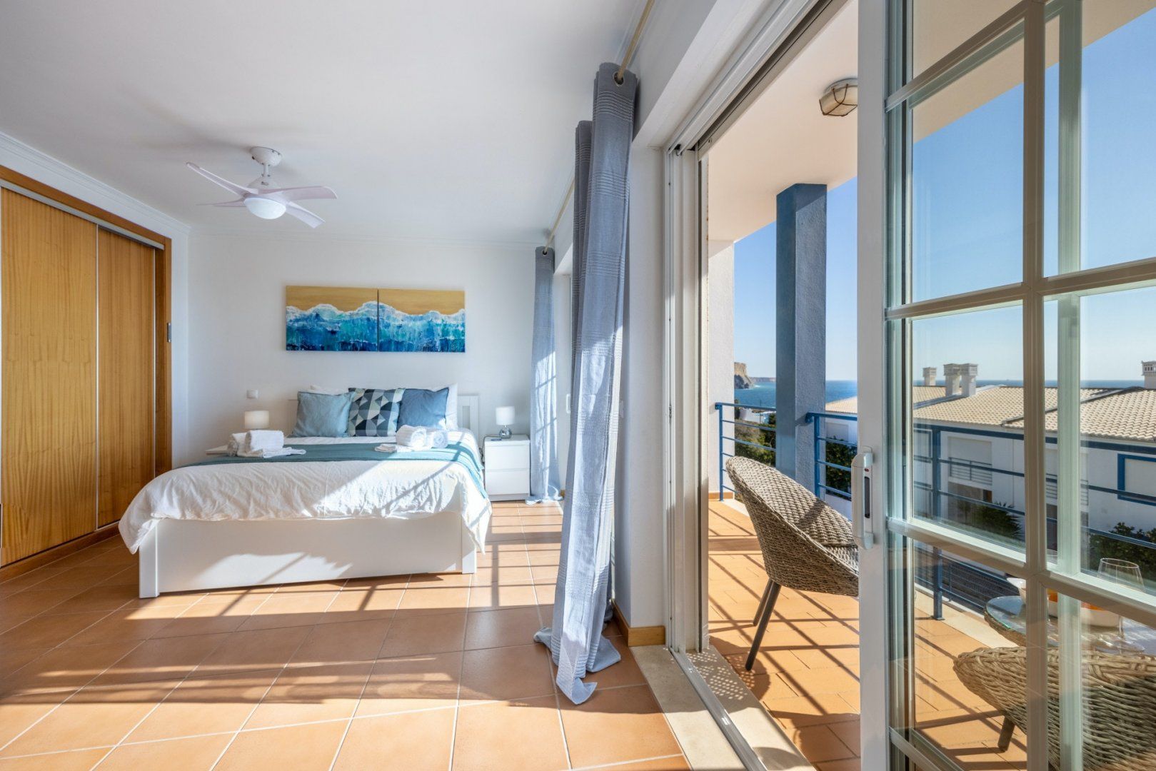 In between Algarve explorations, relax in style at this breezy townhouse. Wake up in the light-filled main bedroom and pad immediately out to the south-facing balcony to enjoy your cup of coffee in the fresh air. The sparkling sea view is a bonus – we can't think of a better way to start the day than gazing out at the ocean blue. Come evening, tuck into an alfresco Portuguese feast on the sun-dappled patio, enjoying a bottle of wine and good conversation as the sun slowly sinks overhead. Afterwards, unwind in the contemporary living room before bed, taking turns on the telescope to spot glittering stars, planets and constellations – you can even light the wood-burning fire for extra ambience.