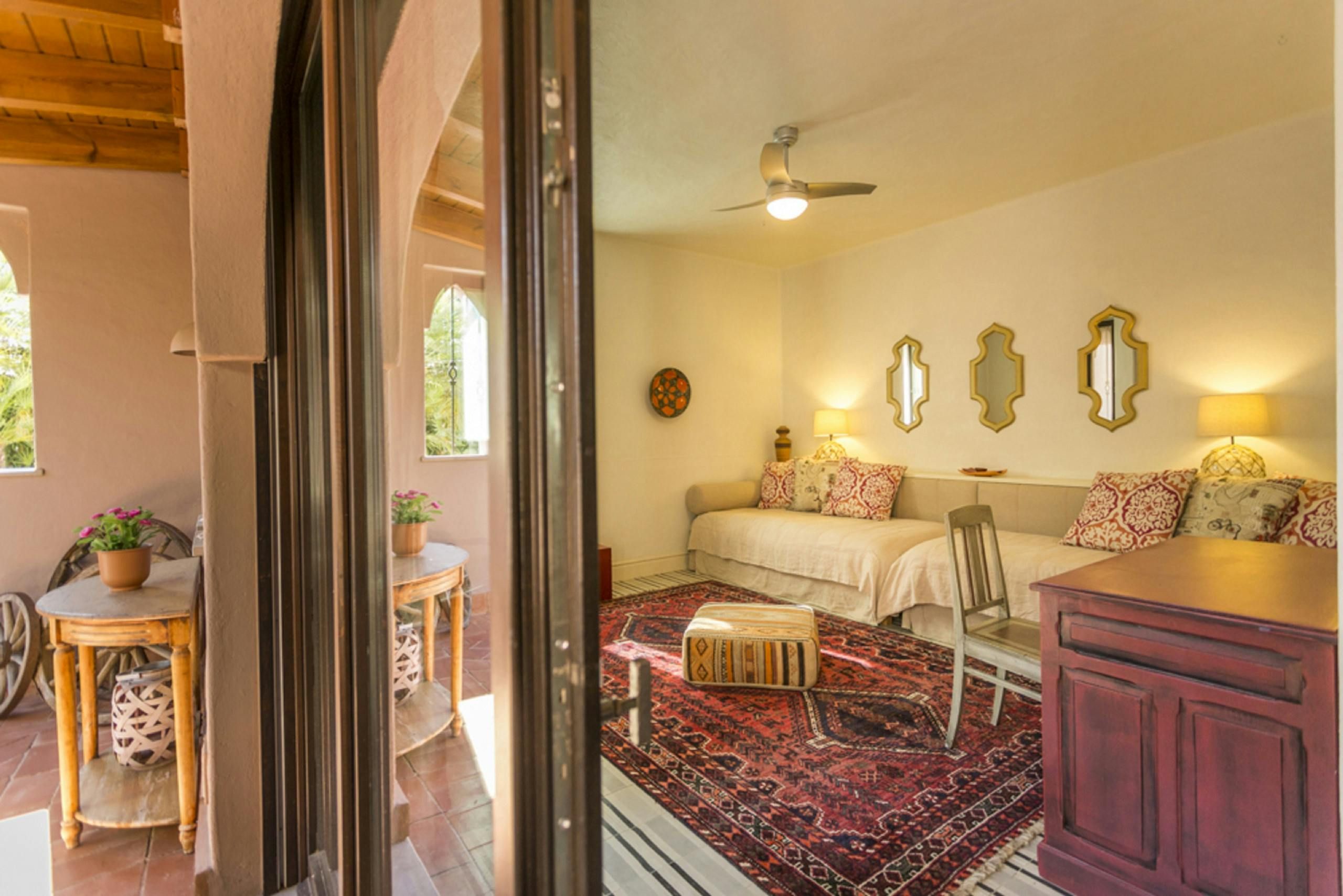 Nestled on a sprawling natural reserve dotted with fig and pomegranate trees, this Moorish Villa offers an idyllic escape for those seeking peace off the beaten path. Step through the front door into the enclosed courtyard, transporting you into your own fiefdom. With various seating areas indoors and out, choice is king here – spend time soaking up sun around the pool or break off into more intimate groups for glasses of wine at the fire pit or an alfresco dining area. The large kitchens are perfect for cooking together, or you can bring authentic Algarve flavours to your mouths by booking a chef through your host.