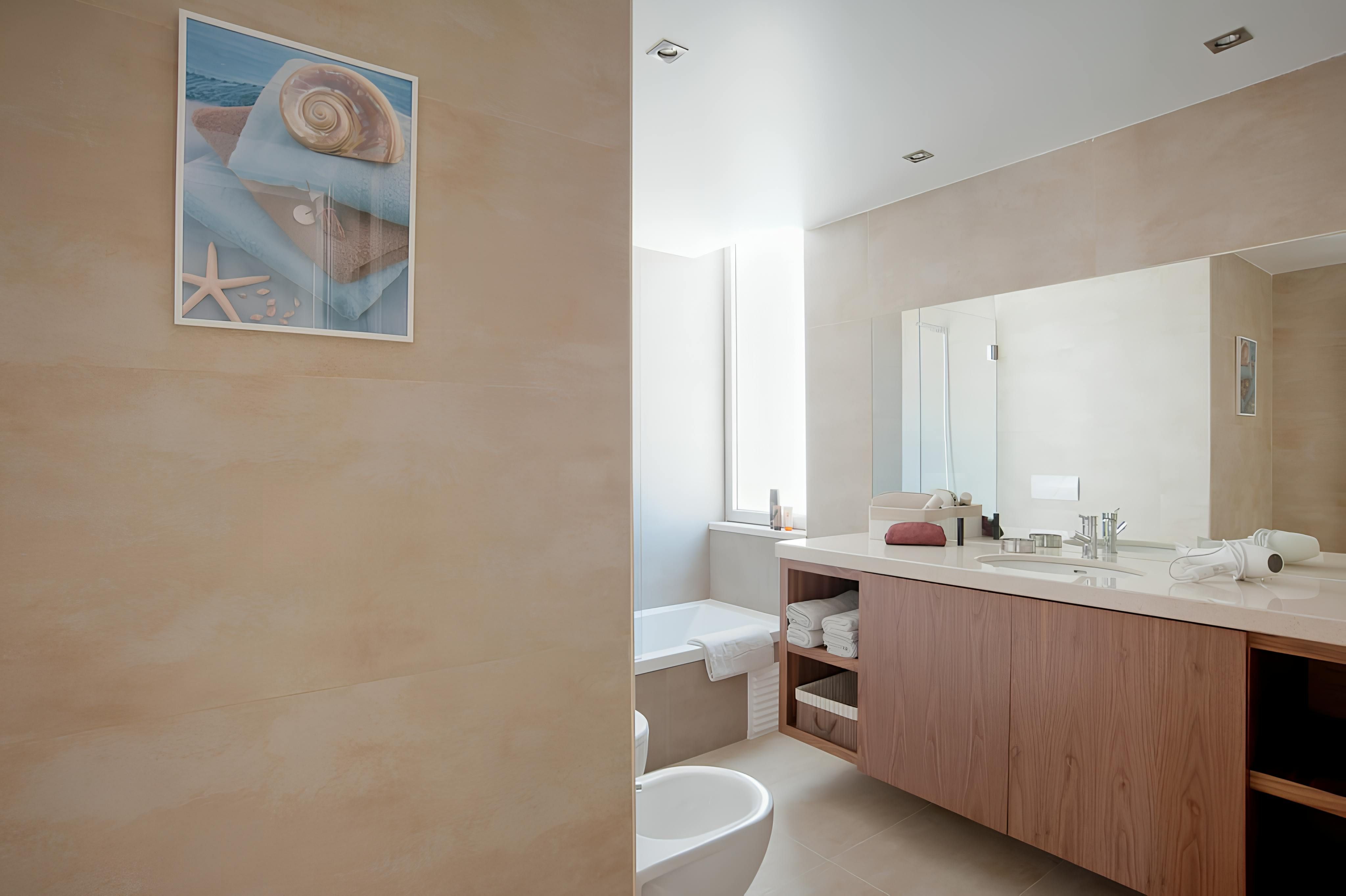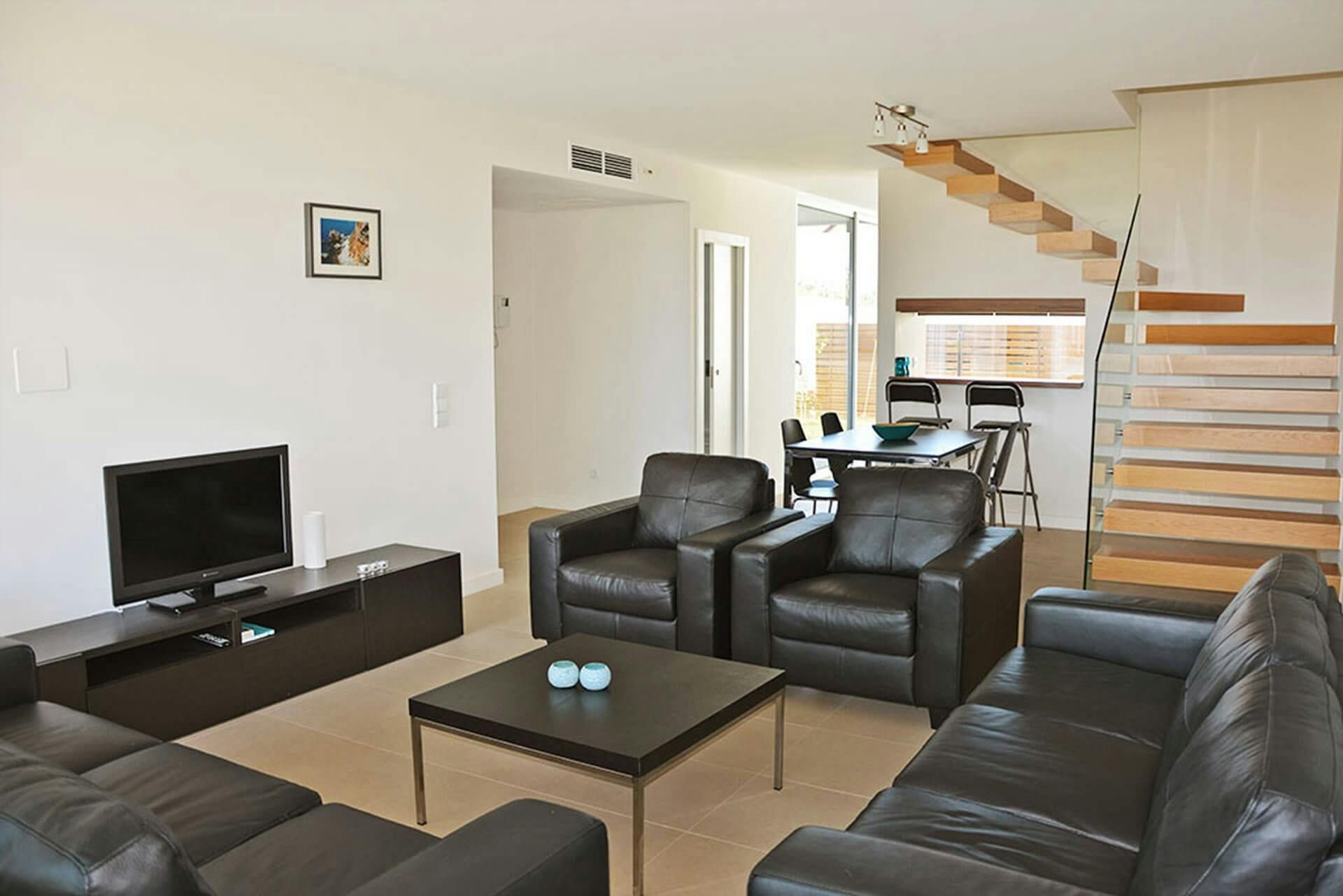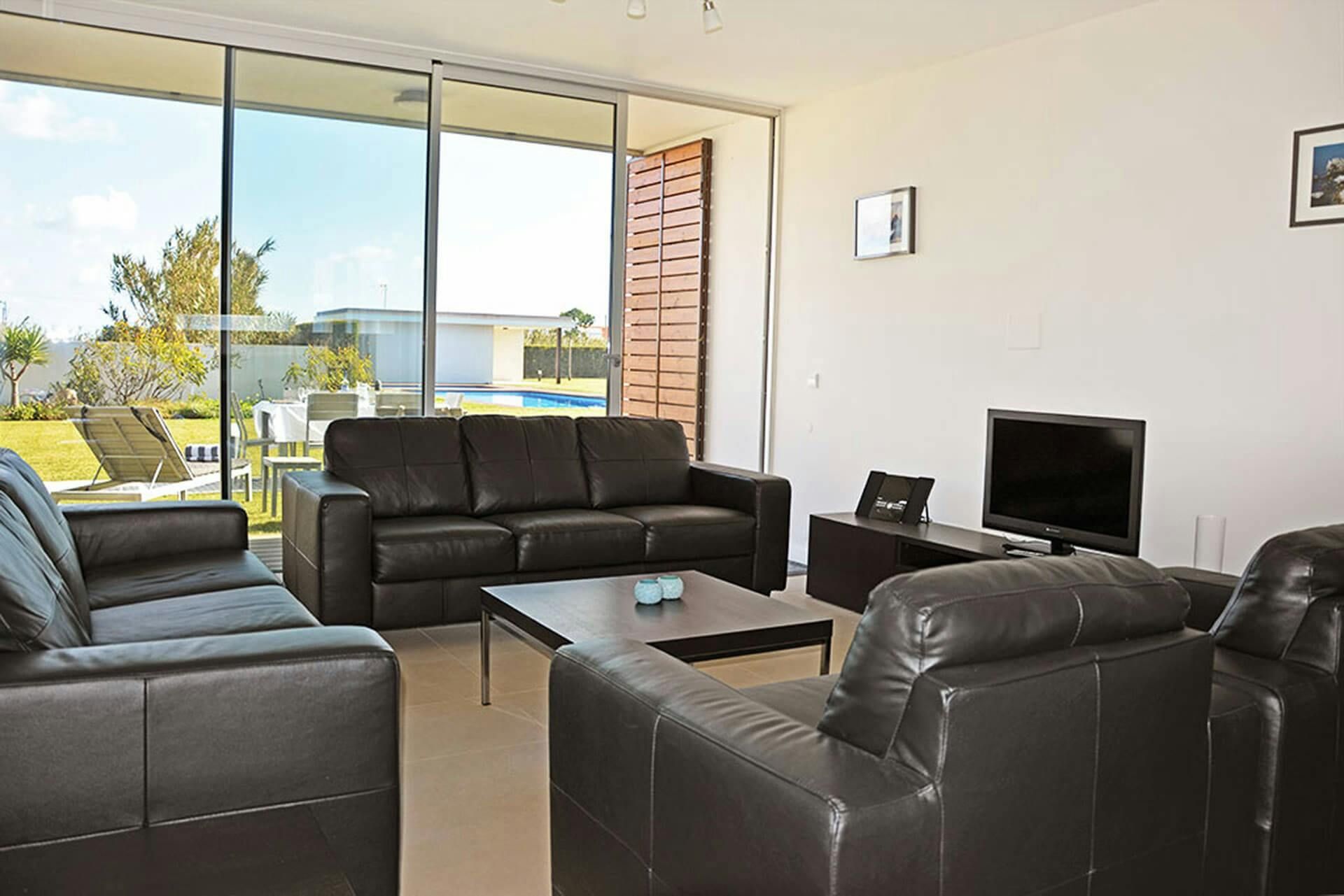 This contemporary villa sits within a 10-villa condominium in Sagres on the Algarve coast. Picturesque Martinhal beach is a short walk away (600 metres), and there are restaurants, bars, and supermarkets within a kilometre of this spot. Yet, it’s quiet and perfect for families as guests here have access to a shared swimming pool and kids’ pool. While away afternoons on the private patio with its outdoor dining area and barbecue. Glass sliding doors lead to the big, open living area with a full kitchen. The decor is on the spartan side, but the rooms a big and breezy and the location more than makes up for it.