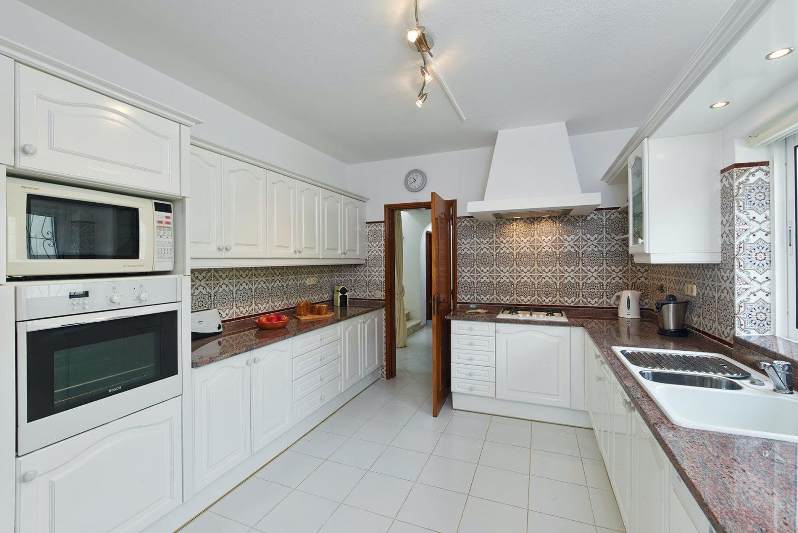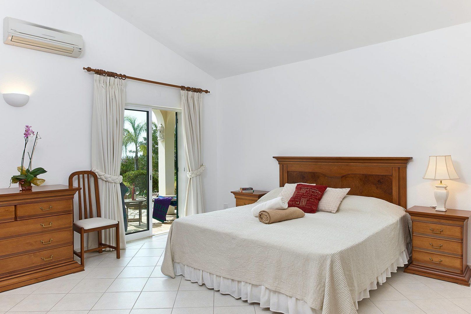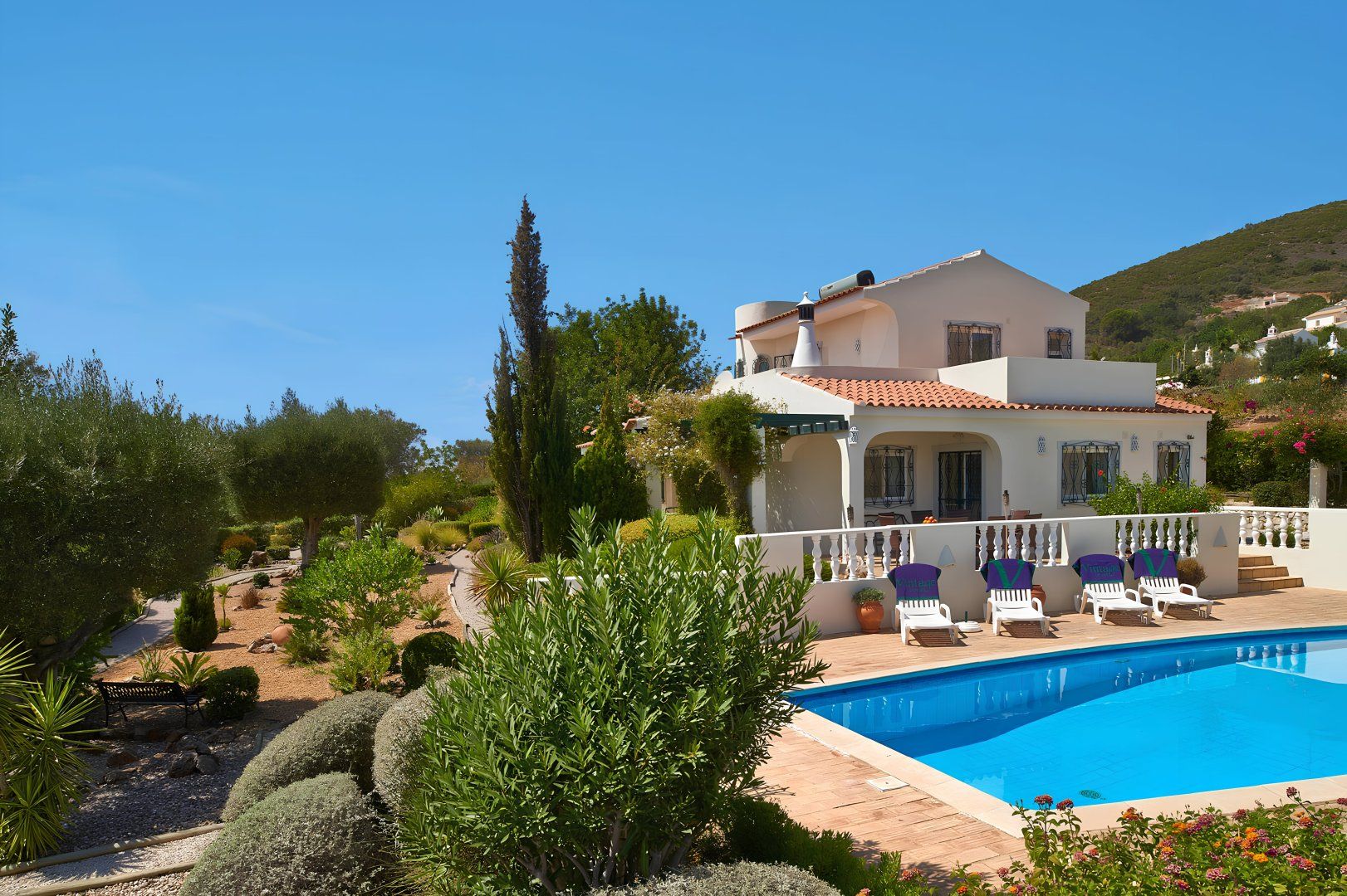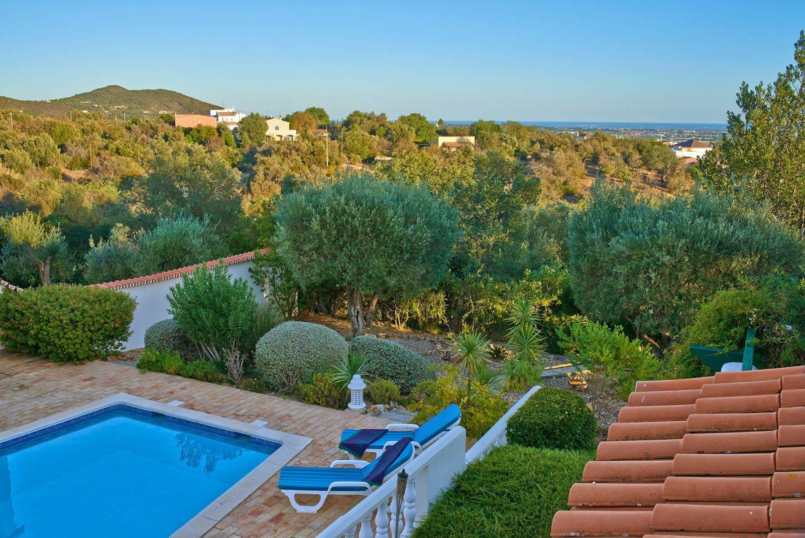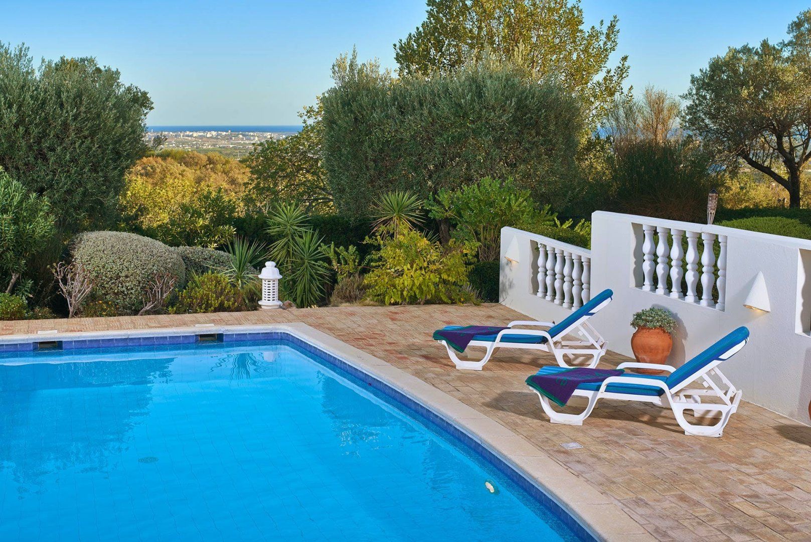 Boasting ocean views in the distance, this villa on the Algarve presents a scenic spot – perfect for a relaxed family holiday. The landscaped gardens filled with Mediterranean fauna and flora create a calming setting from which to laze by the private swimming pool. Meanwhile, the villa's interiors (while dated in terms of style in parts) are dedicated to comfort and practicality. All of the bedrooms feature an en-suite bathroom, giving all guests a piece of privacy. Meanwhile, you'll be within convenient driving reach of resort towns such as Quinta do Lago and the Algarvian coastline.