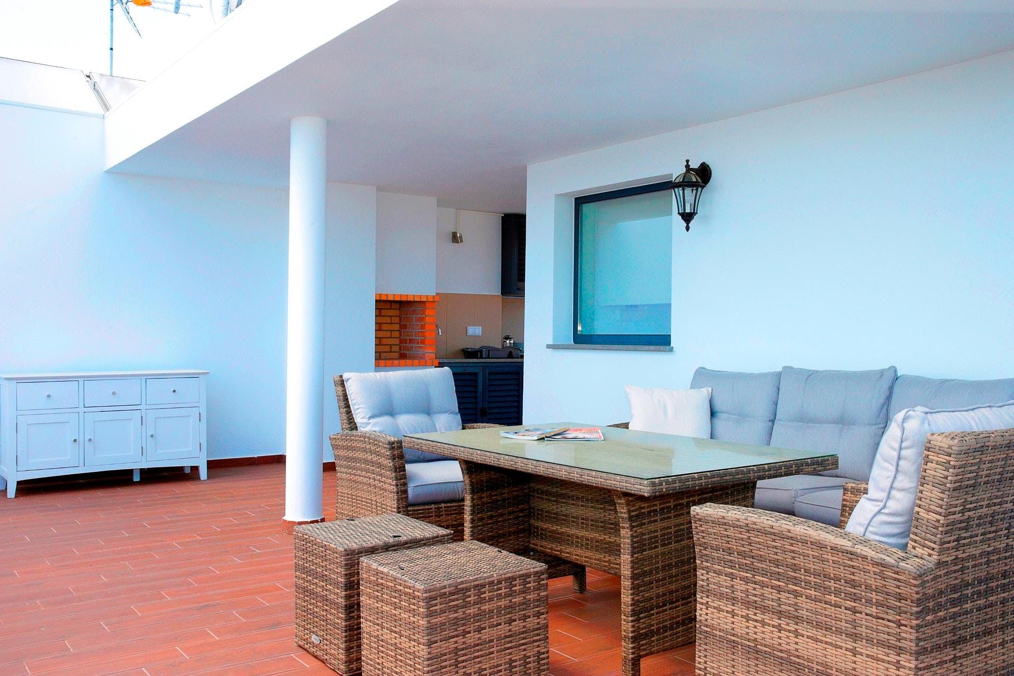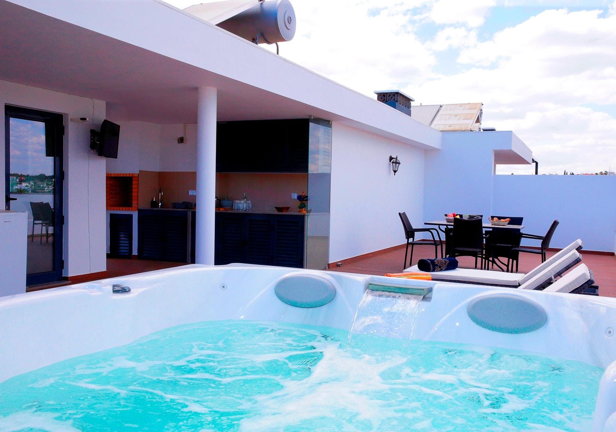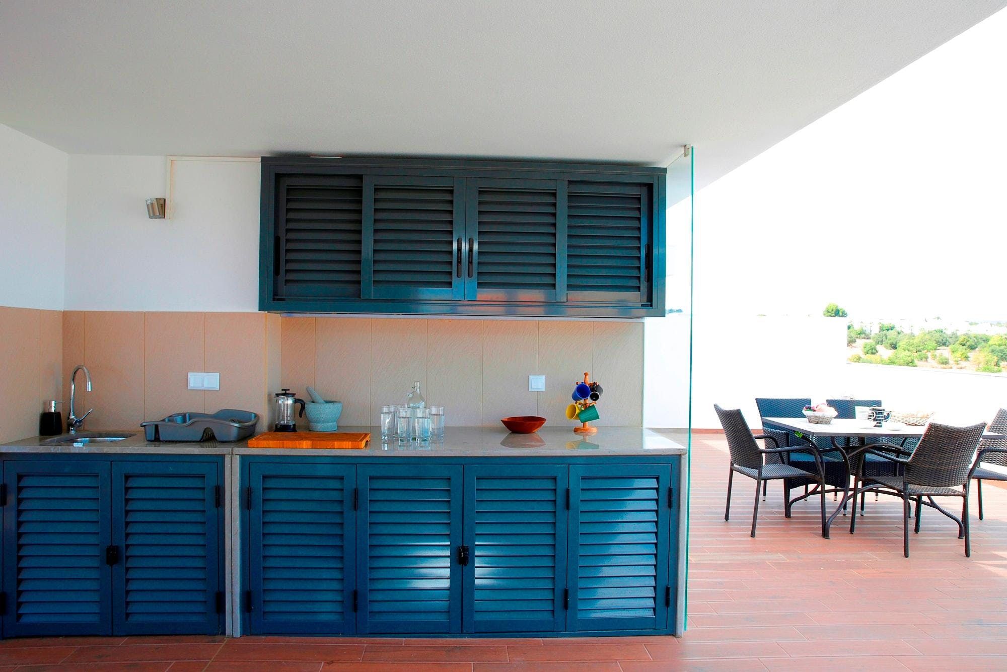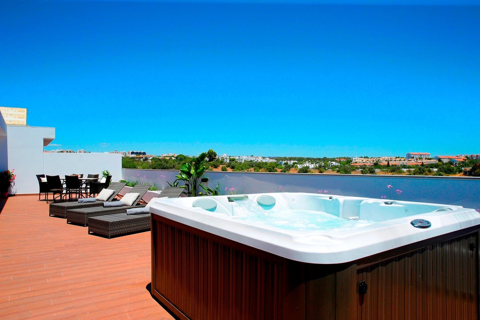 With special views overlooking the sun-soaked horizon, this is a home where you'll spend your downtime sipping wine with your loved ones and soaking in the hot tub. We especially love the outdoor kitchen here – what could be more perfect than dining alfresco after making memories to last a lifetime? Inside, the contemporary design will put you at ease while discussing your daily plans at the breakfast bar – just remember to sip meia-de-leite if you wish to start each morning like a local.