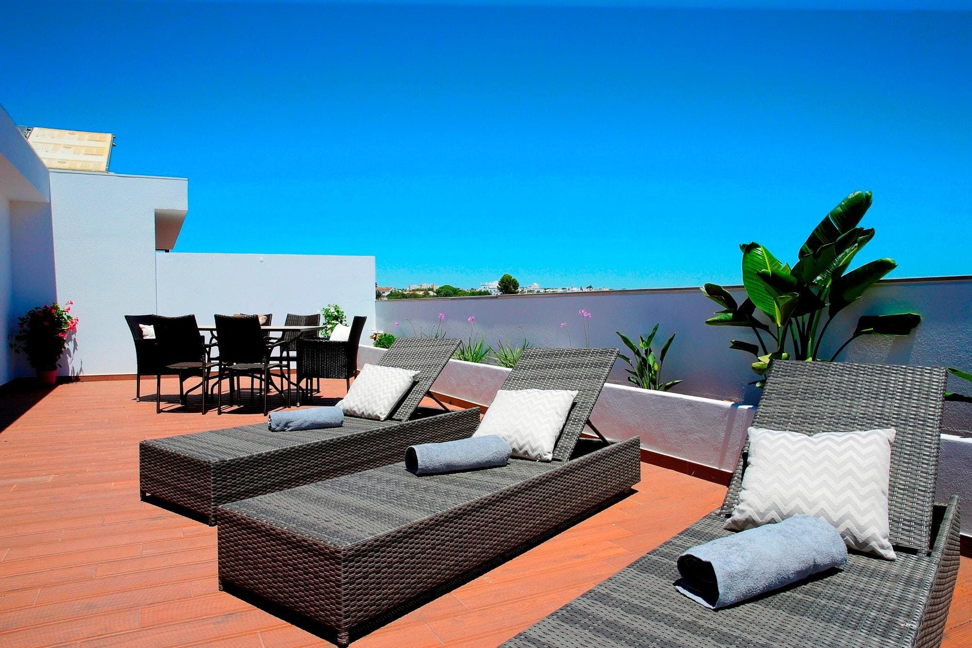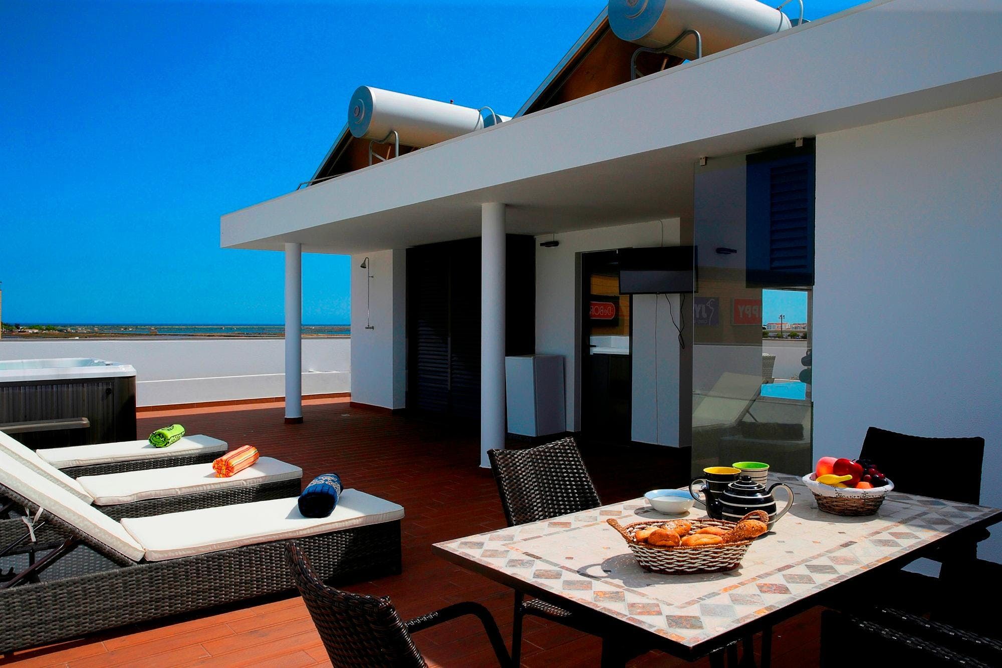 Located on the ever-popular Algarve coast, this apartment has all the charms of Tavira's historic city on its doorstep. Surrounding the Gilão River, you'll find gorgeous architecture housing delicious restaurants and artisan shops. For a taste of culture, history lovers will want to take a tour of the 11th-century castle before stopping by the Santa María do Castelo Church. Alternatively, the golden sands of Praia da Ilha de Tavira await only a short ferry ride away.