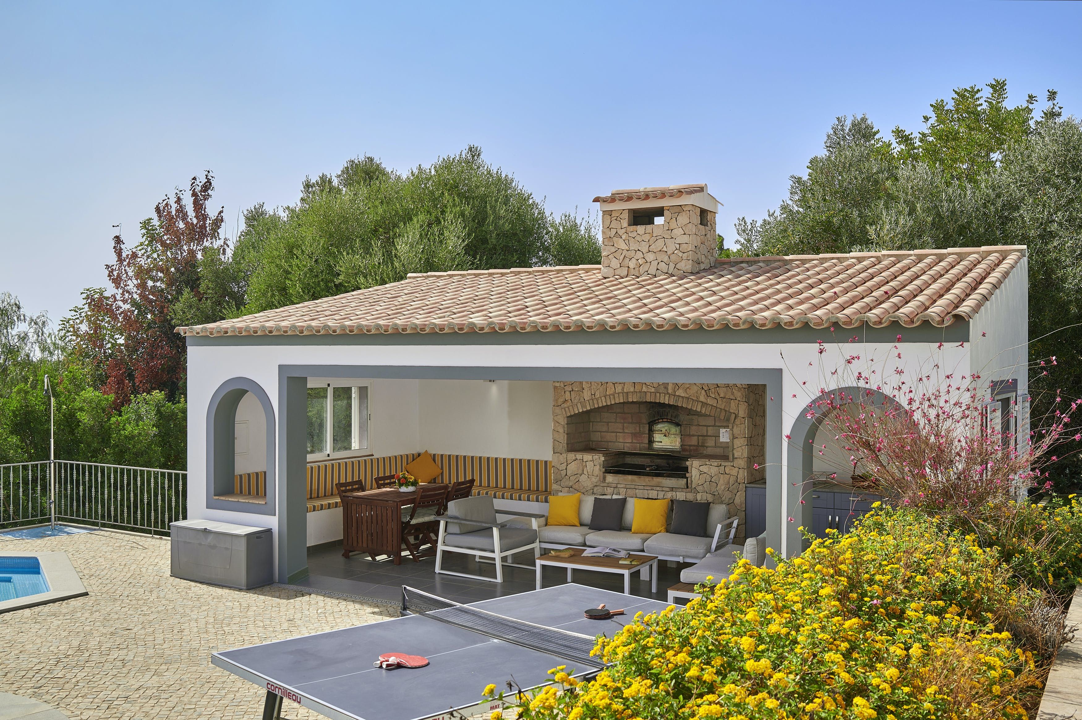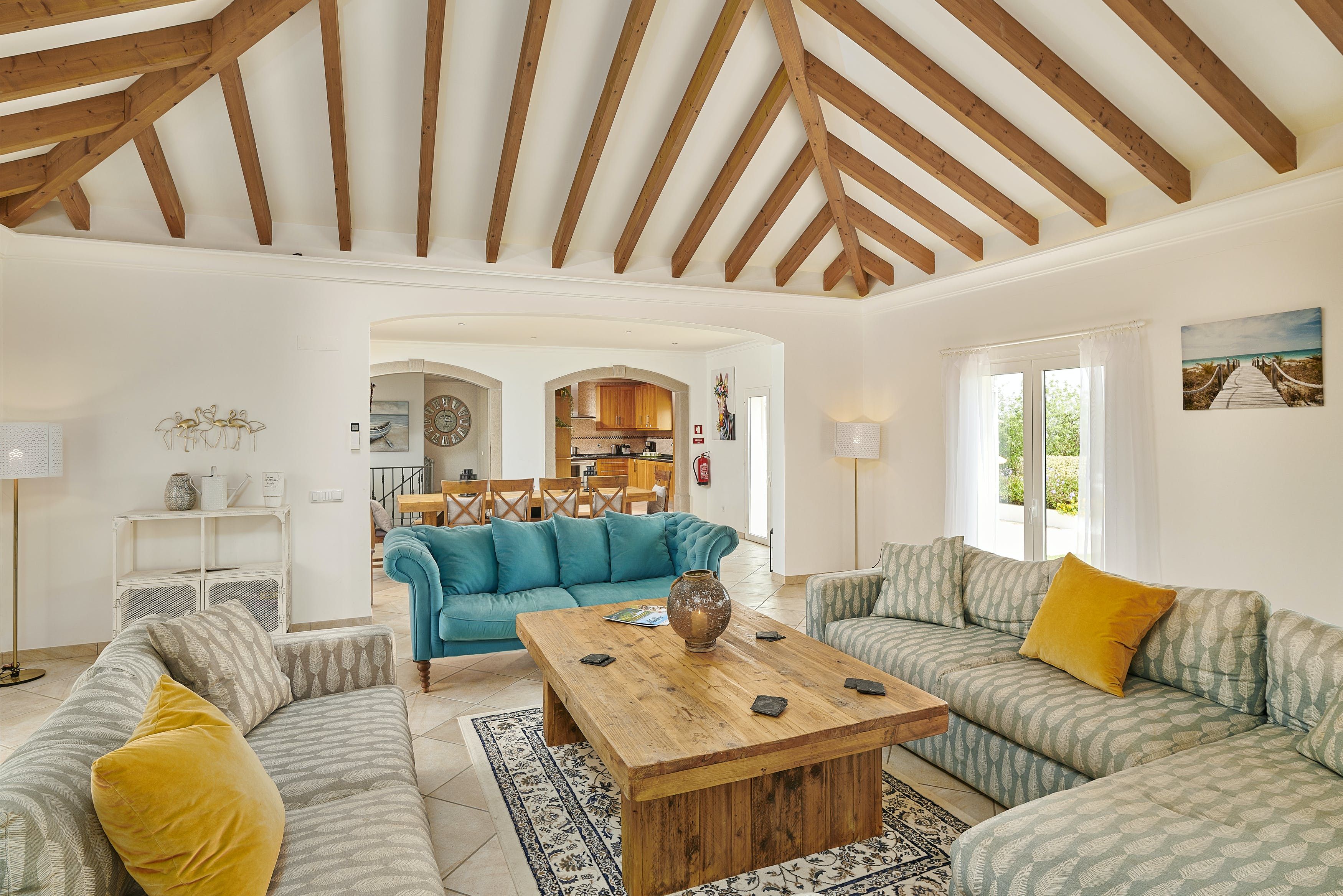 Step inside to find bright interiors, exposed beams, and a homely atmosphere that'll make you feel at ease from the moment you arrive. Though some standout features include the vaulted ceilings in the living room, the games room, and your private cinema, the outdoor area is the true hero. Imagine relaxing under one of the daffodil-yellow patio umbrellas as you soak up every last bit of sun before cooling down in the private pool.