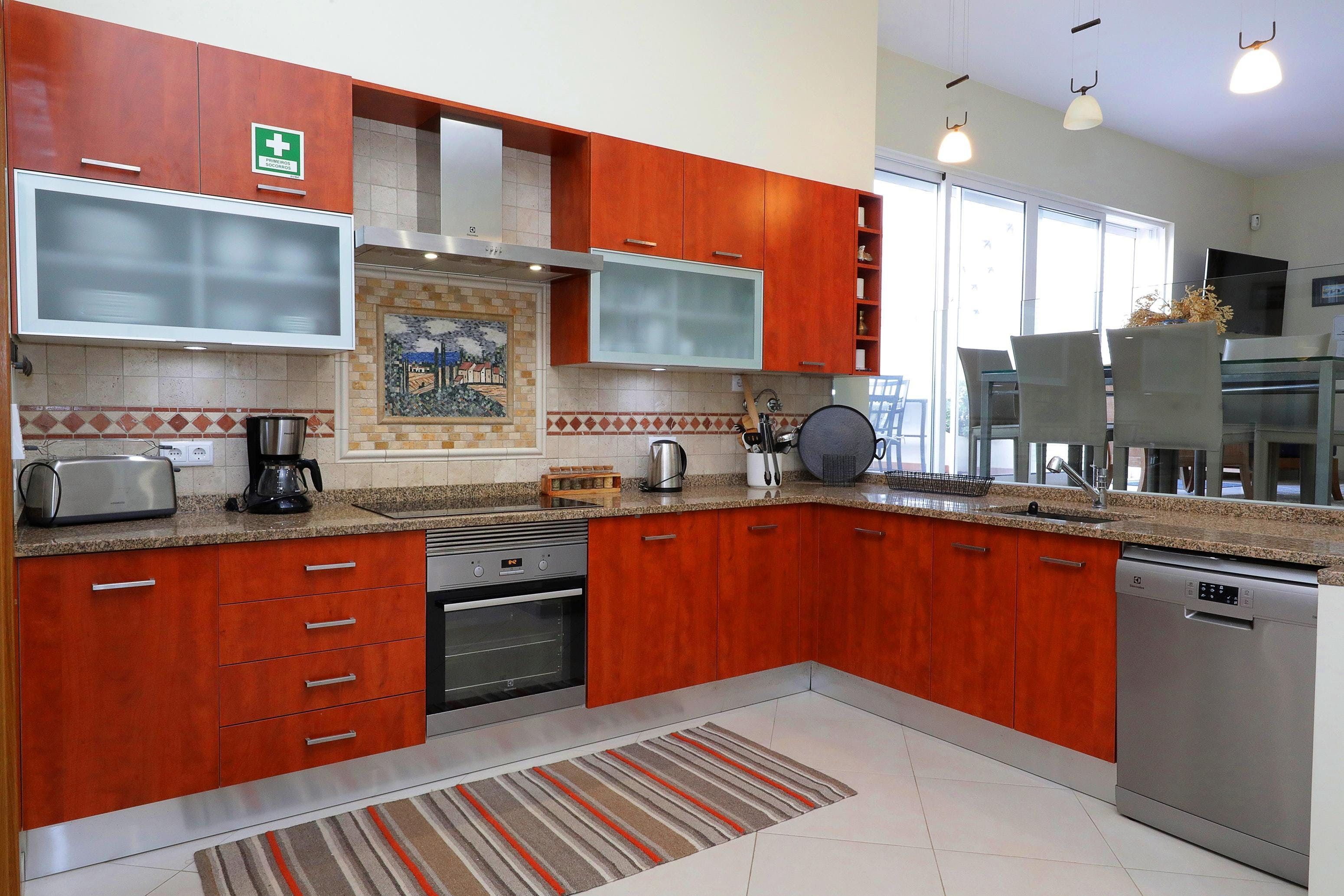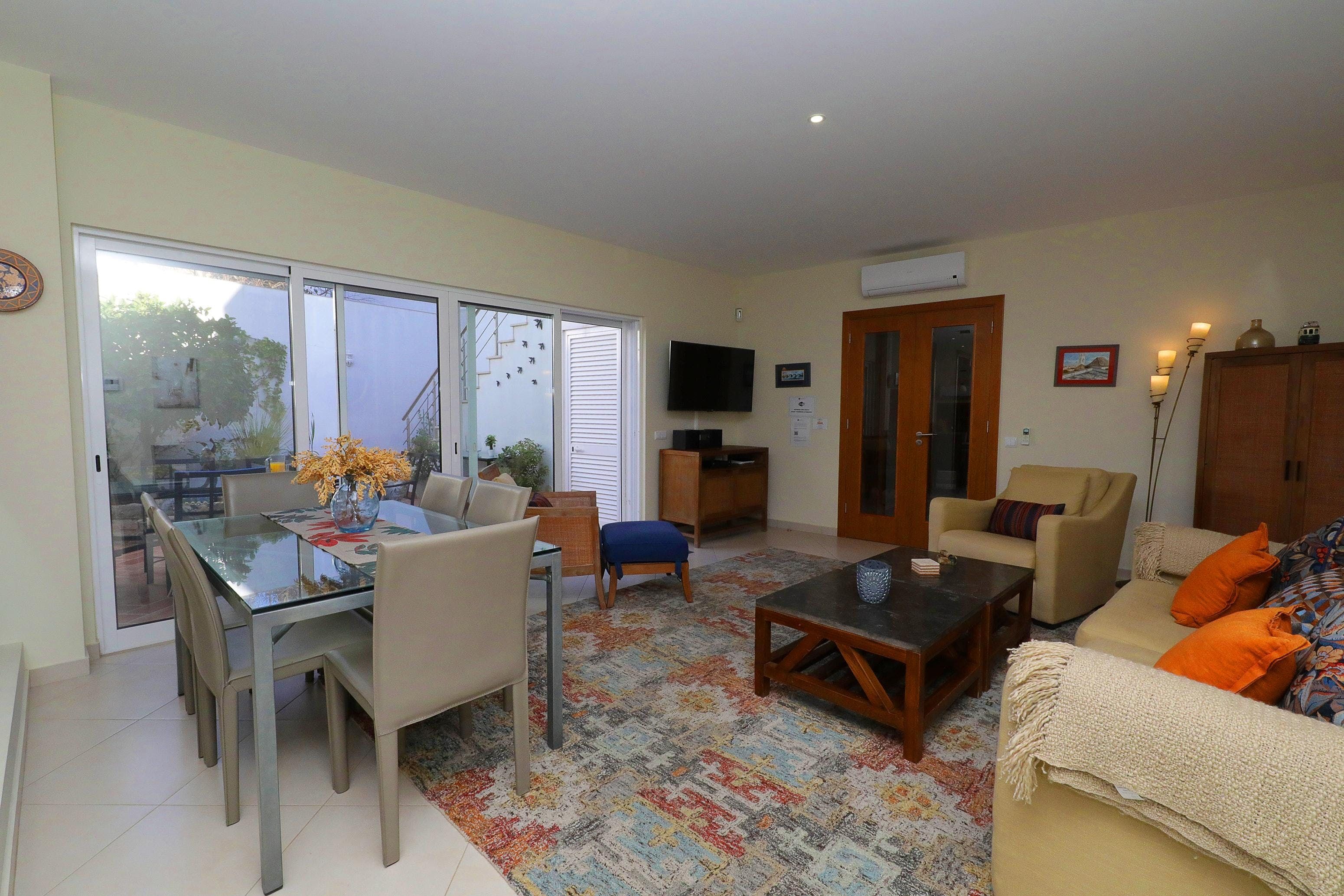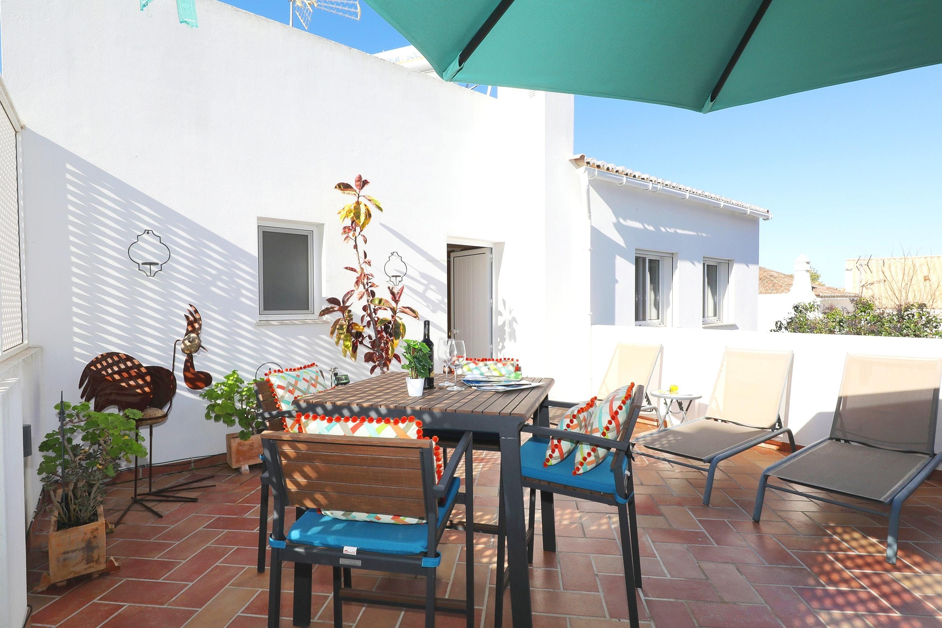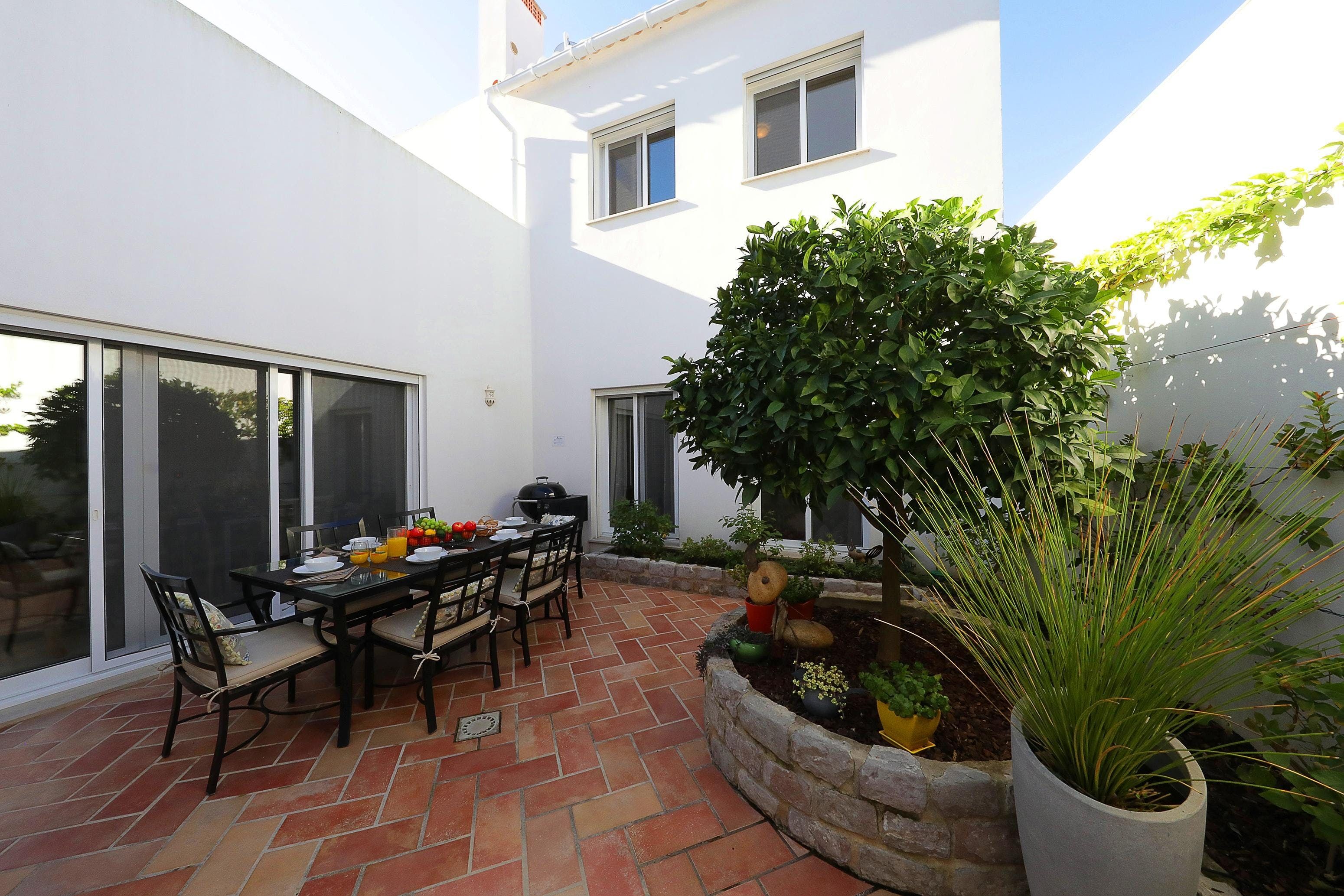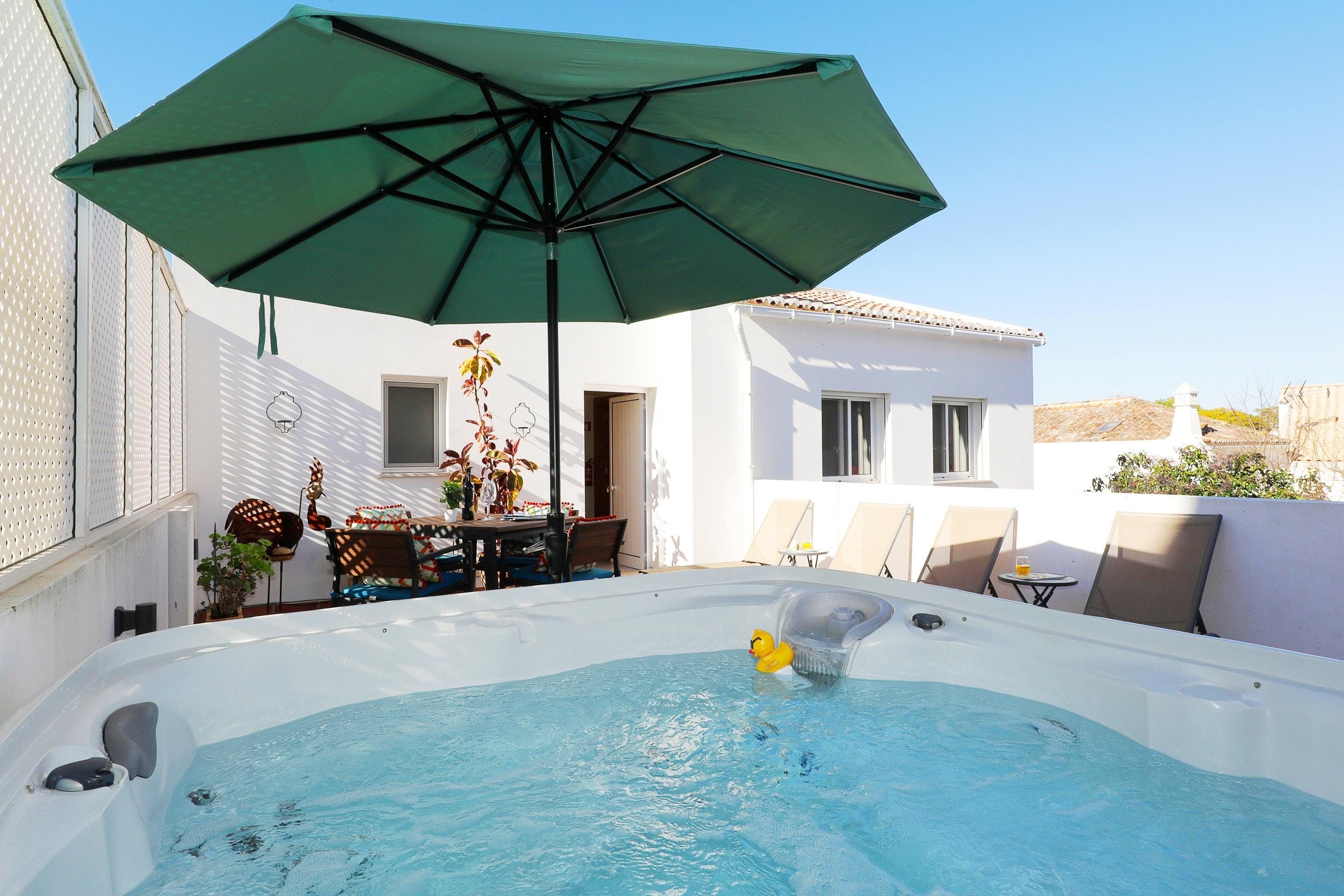 Centring around its outside space, this homely townhouse invites you to rustle up barbecue lunches on the patio. Carry your cup of meia-de-leite out to the sun loungers and make plans beneath blue skies. We think dipping your toes in this hot tub is ideal at any hour of the day, but maybe the reward will be sweeter after working hard at the lamplit desk. Under the pergola, gather your family at the coffee table while you all raise your glasses to a happy holiday.