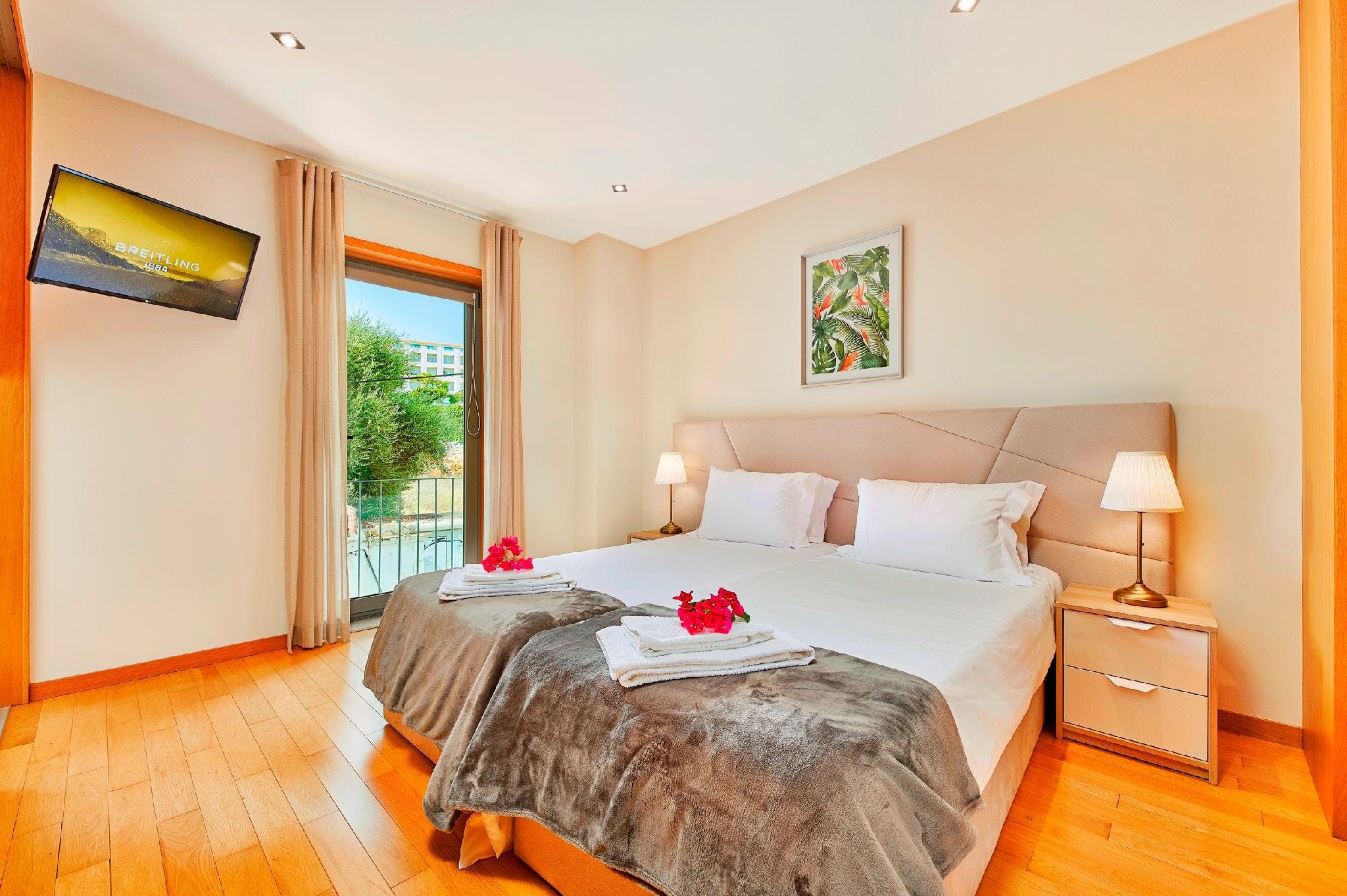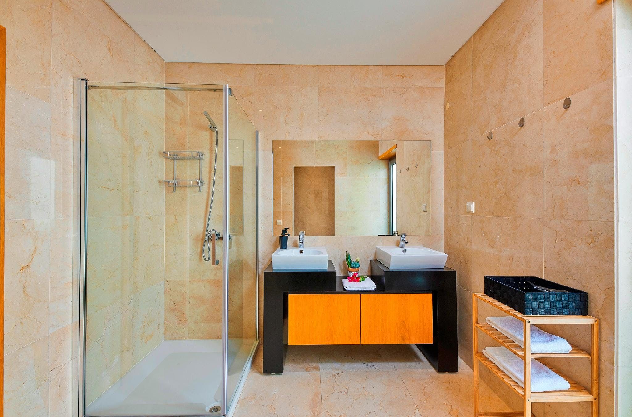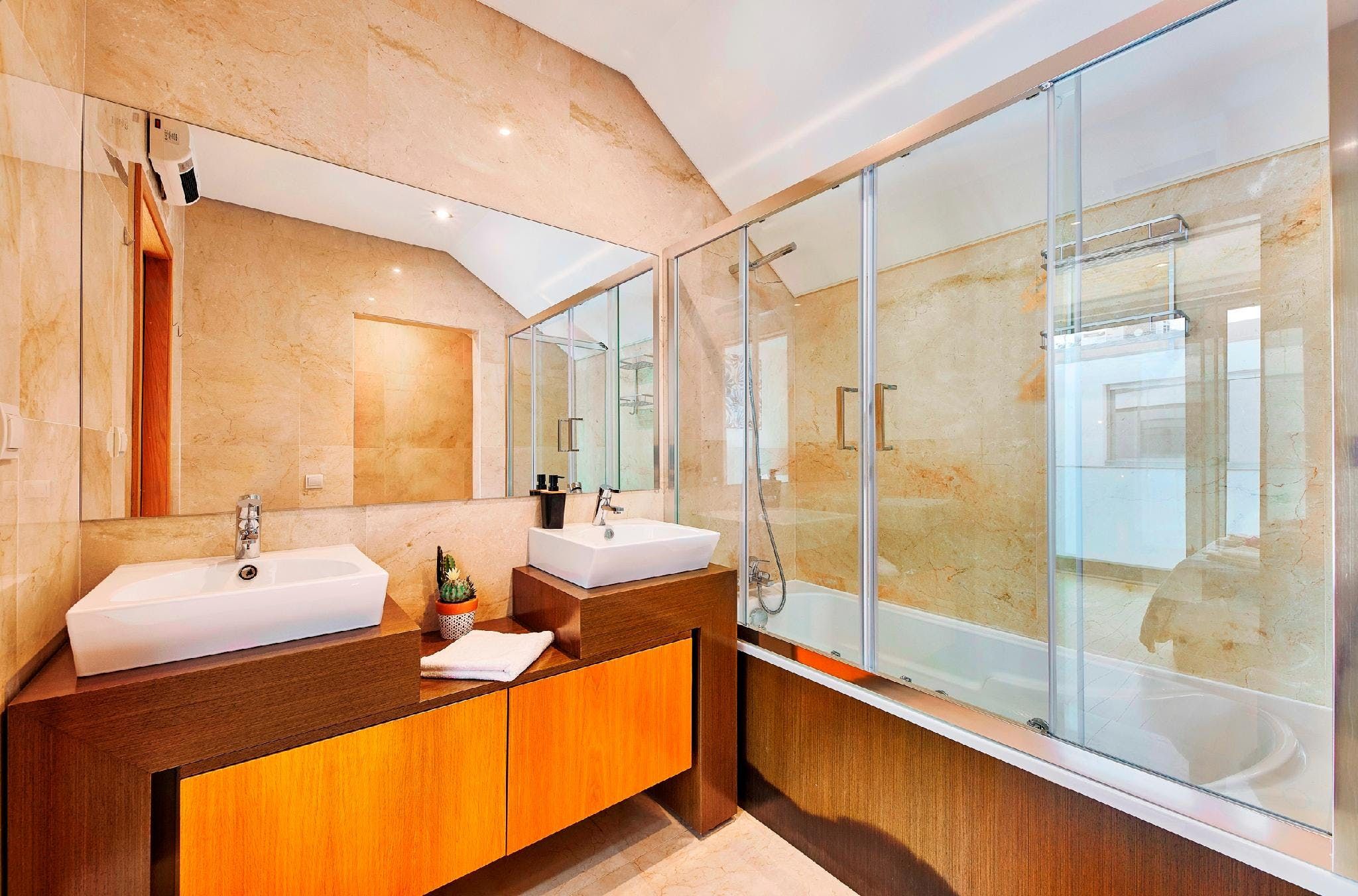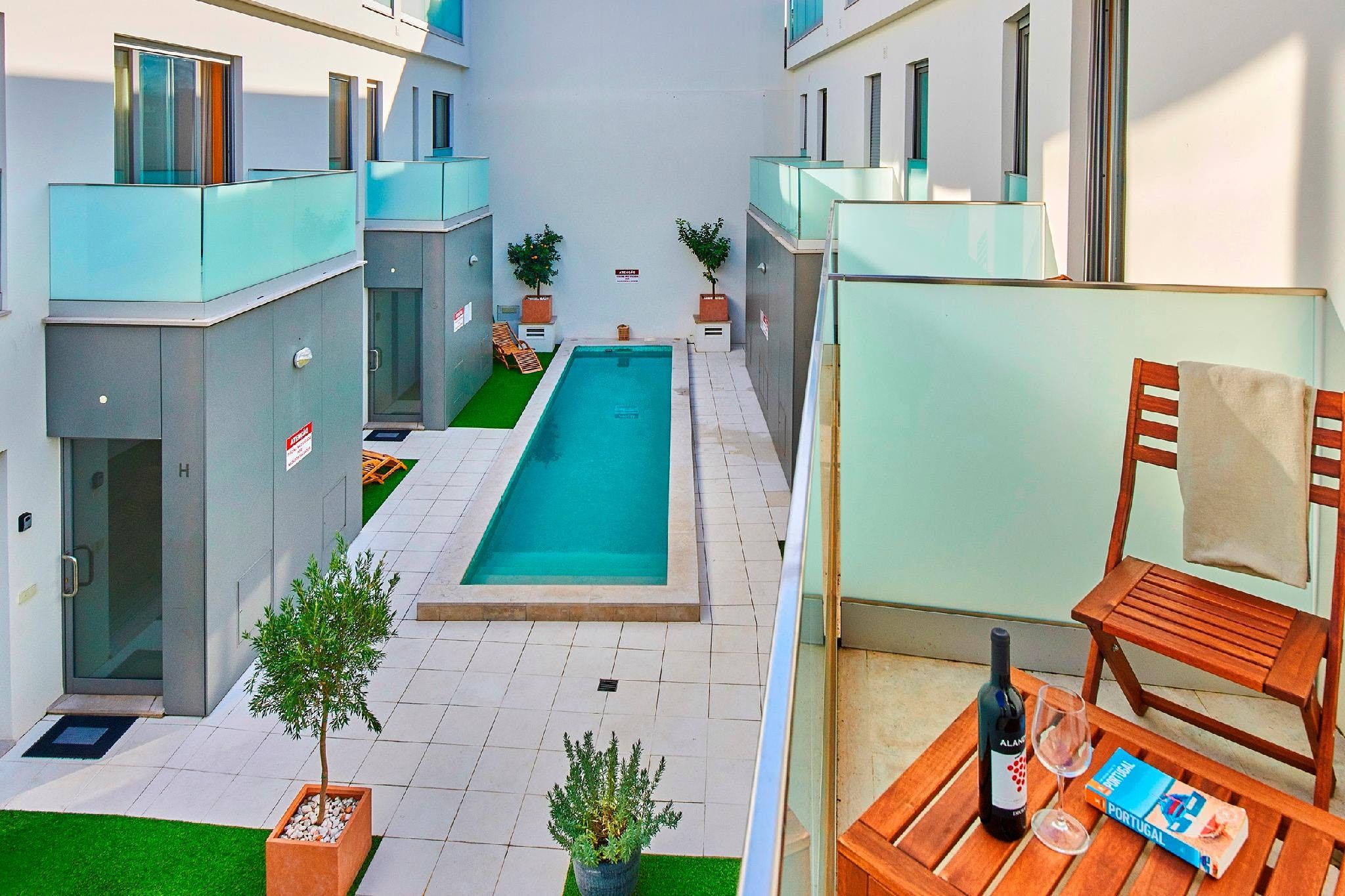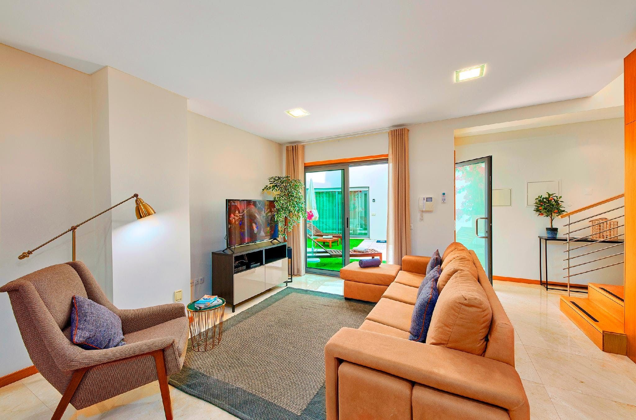 Downstairs, the free-flowing living space leading out onto a charming private courtyard with views of the neighbouring church is made for socialising. Get together for a sunny alfresco breakfast of expressos and Pastel de Natas on the veranda, then pad over to the shared terraces for a dip in that sparkling pool surrounded by tumbling bougainvillaea and fragrant citrus trees.