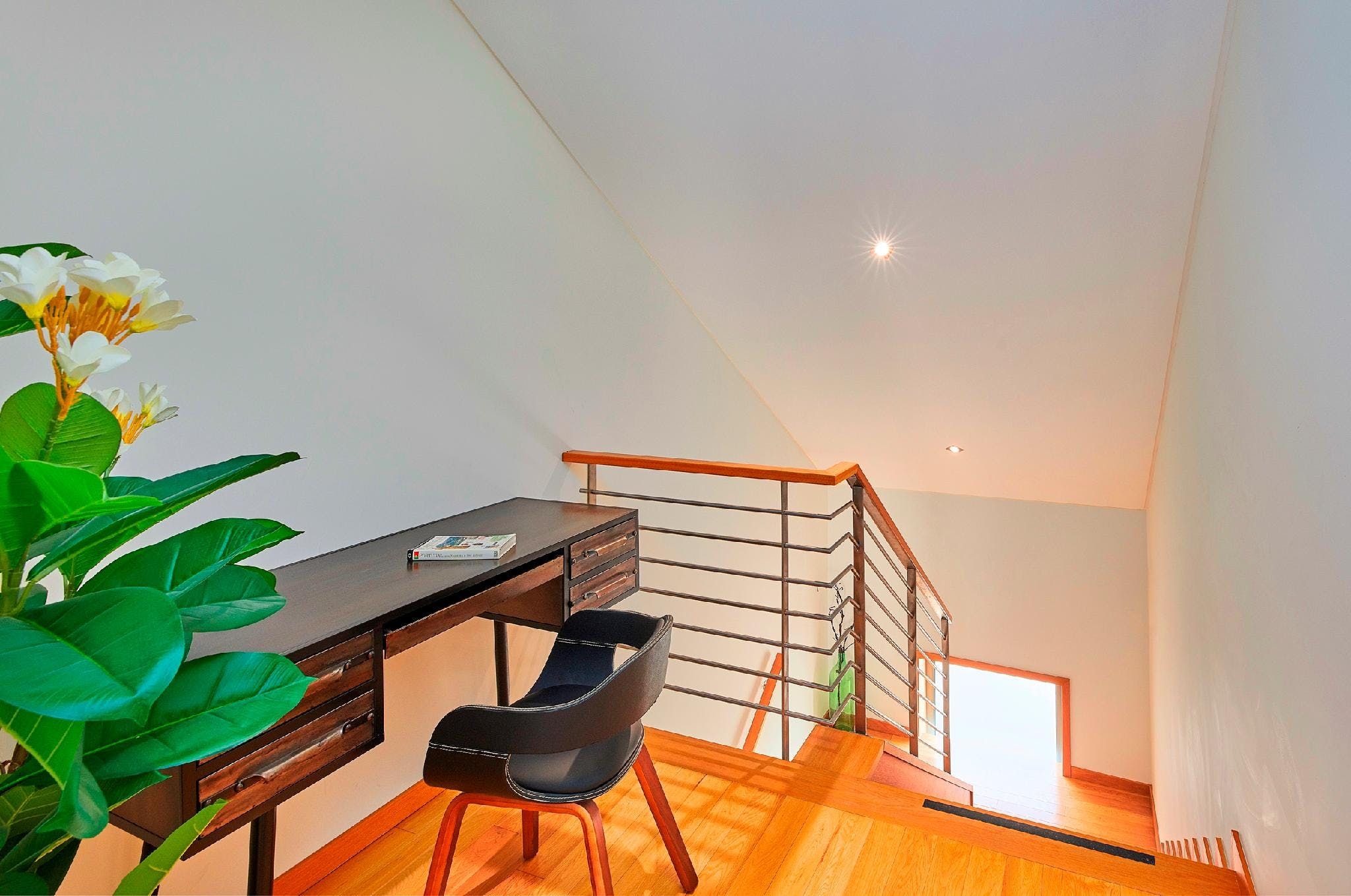 An excellent choice for friends or extended family sharing, each bedroom sits on its own floor with an en-suite bathroom for a little extra privacy. And you’re all sorted if you plan to work, with a dedicated desk tucked away in a quiet corner on the top floor.