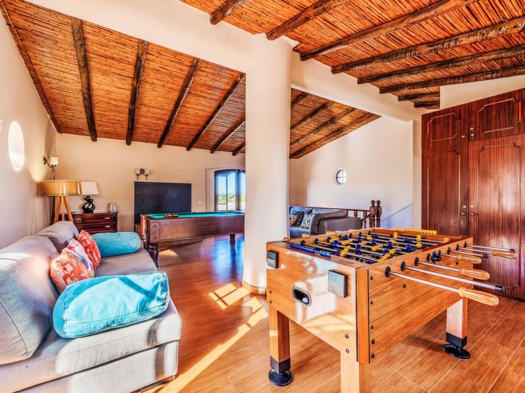 "Arrochela", 7-room villa 430 m2 on 3 levels. Spacious, very cosy furnishings: living room with dining table, cable TV, flat screen, air conditioning and forced-air heating. Exit to the terrace. 1 room with 1 french bed (180 cm, length 200 cm), bath/shower/WC, air conditioning and forced-air heating.
