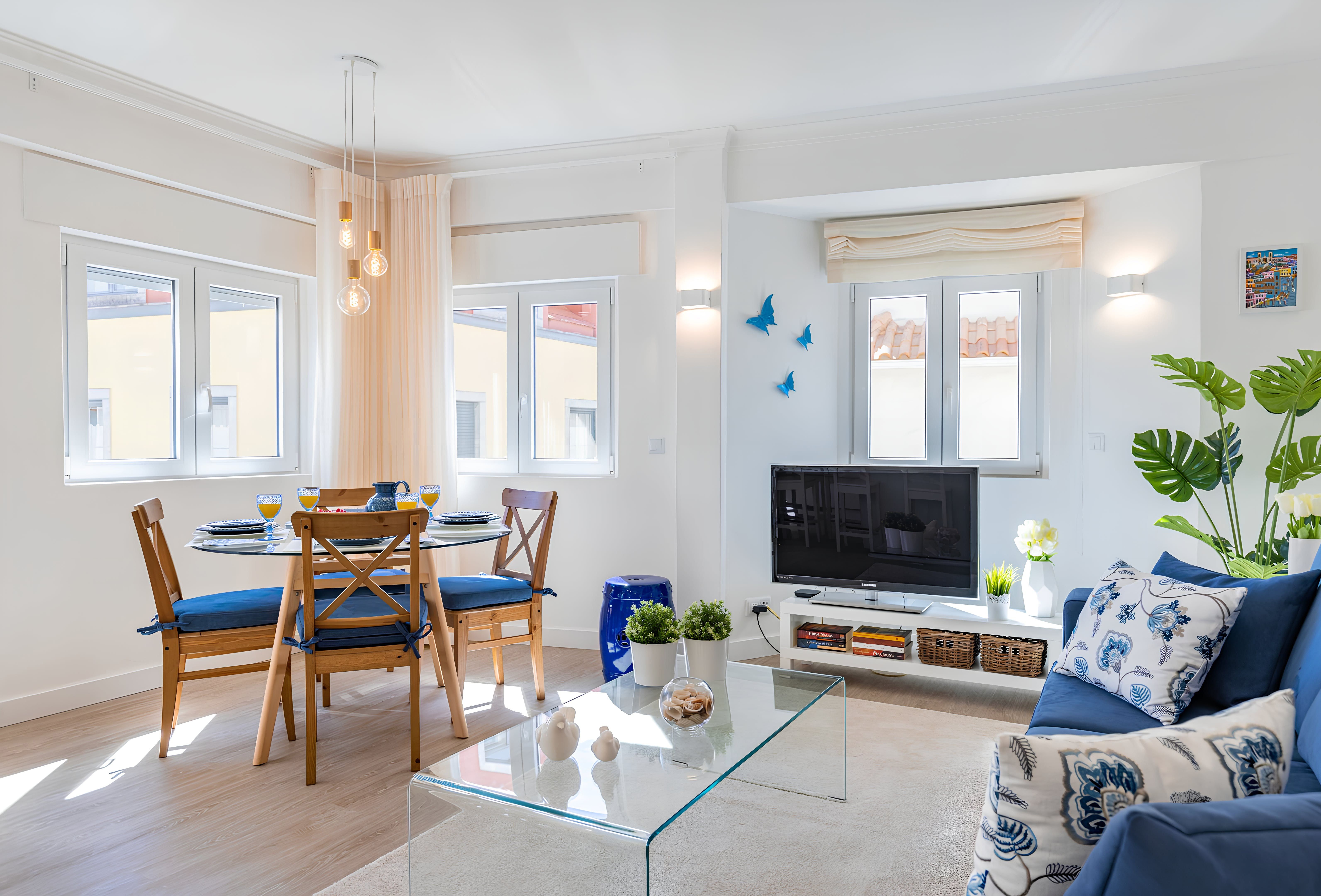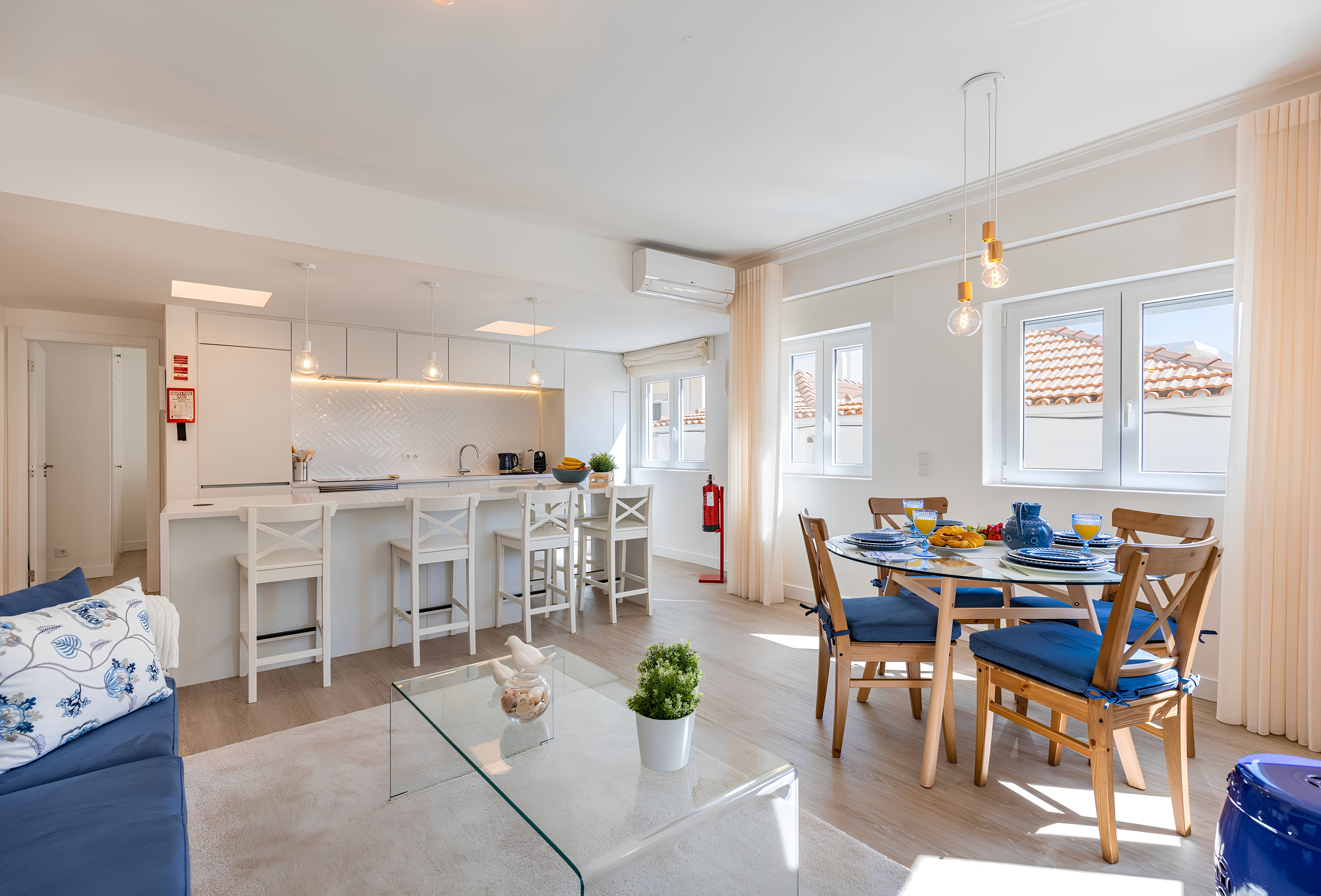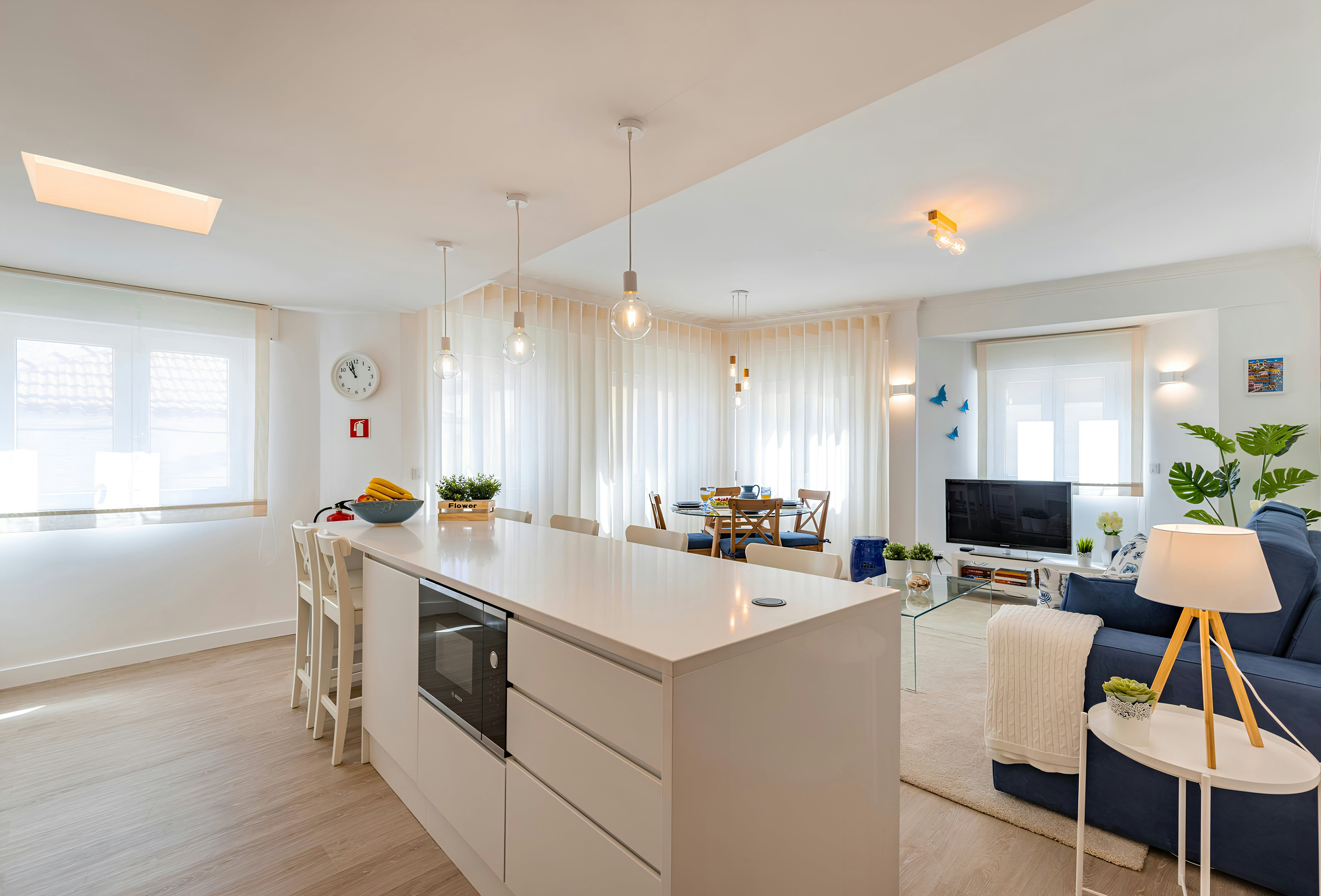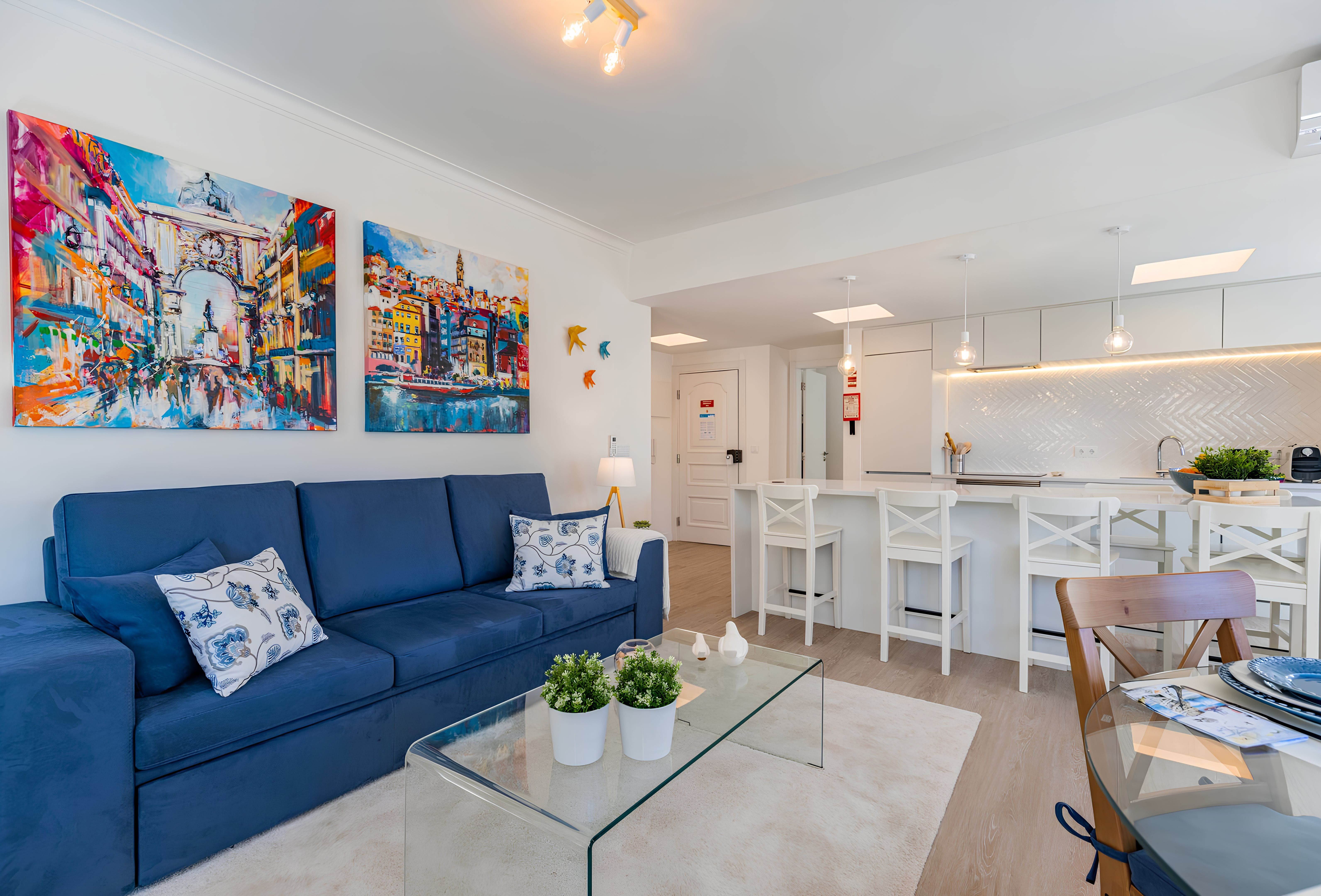 So, this home has the best of both worlds with its location. It's situated in the picturesque town of Cascais with its charming streets and beaches, yet it's just a short stroll to the train station which connects to Lisbon. There's plenty of room for entertaining in the apartment, and there's a desk in one of the bedrooms if you need to catch up on work emails. If you want to accommodate six guests, though, two will be sleeping on a sofa in the open-plan living room.