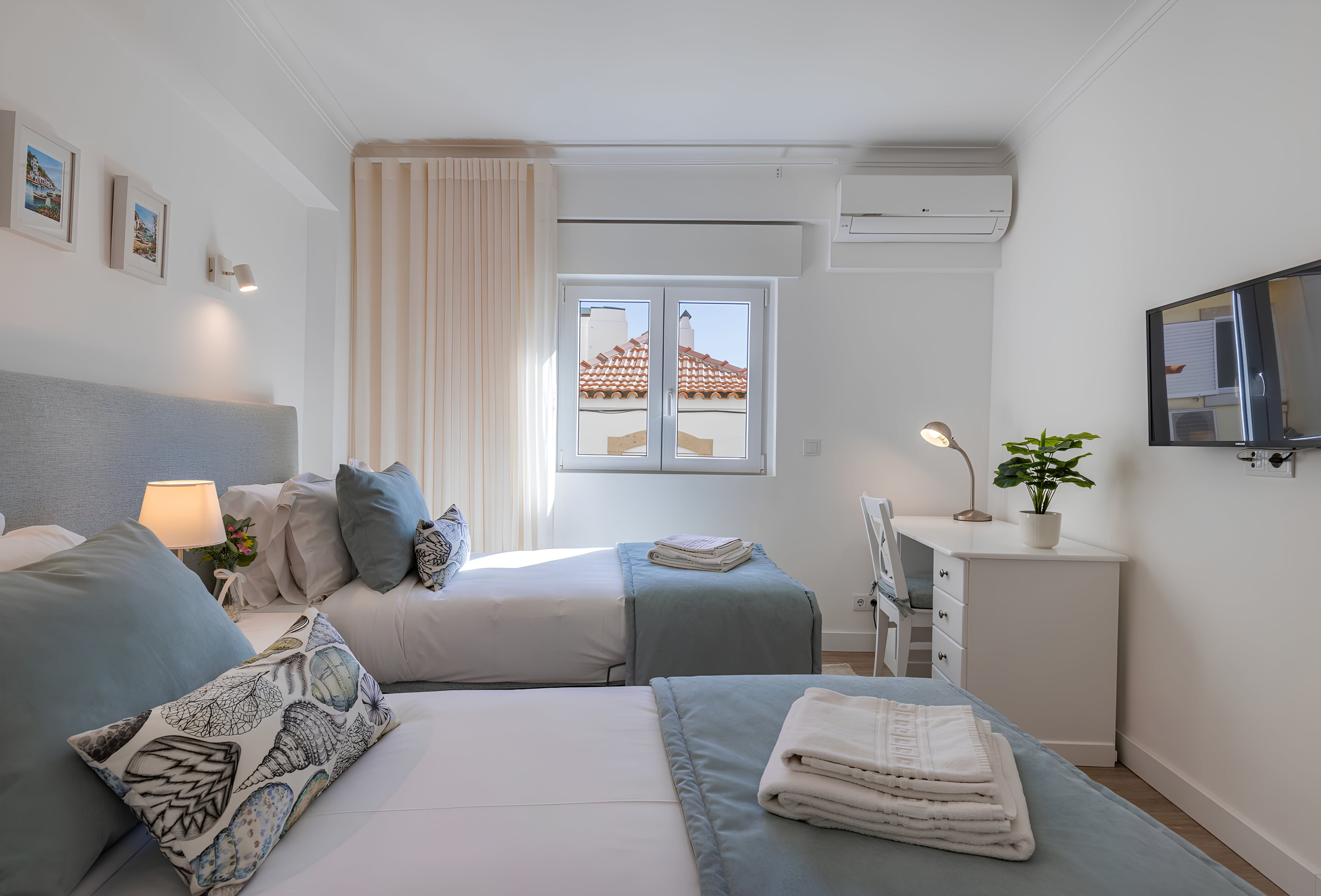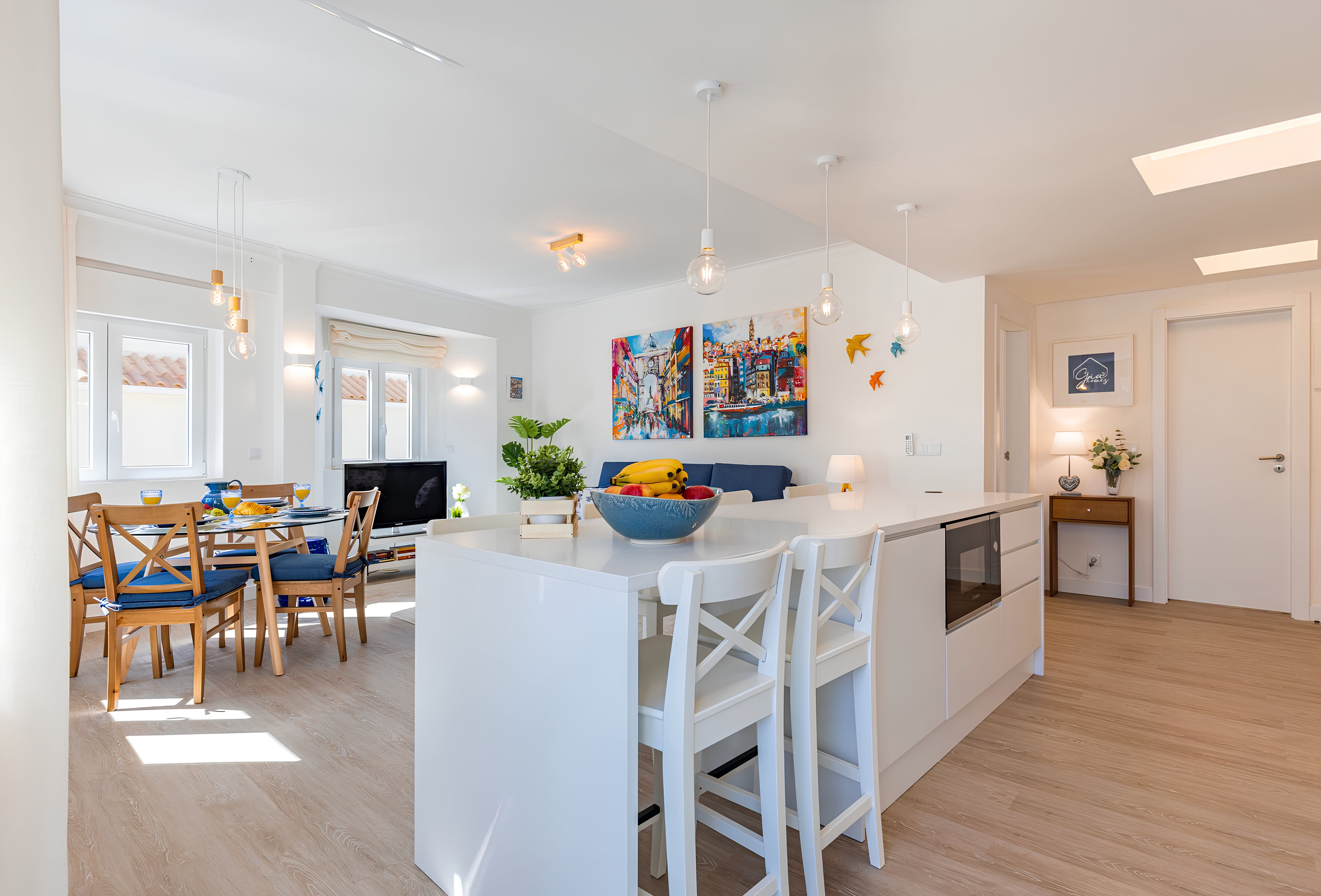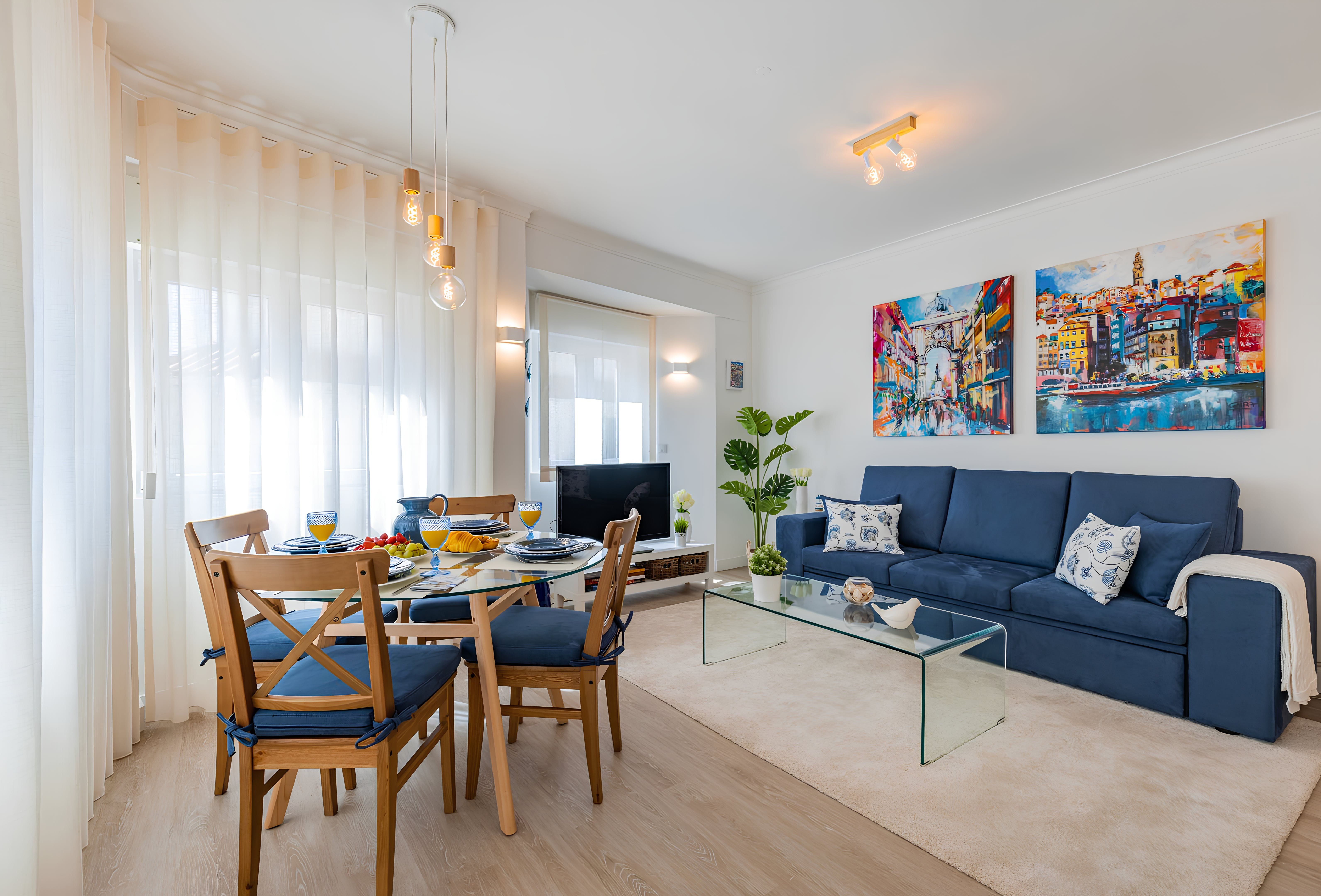 So, this home has the best of both worlds with its location. It's situated in the picturesque town of Cascais with its charming streets and beaches, yet it's just a short stroll to the train station which connects to Lisbon. There's plenty of room for entertaining in the apartment, and there's a desk in one of the bedrooms if you need to catch up on work emails. If you want to accommodate six guests, though, two will be sleeping on a sofa in the open-plan living room.