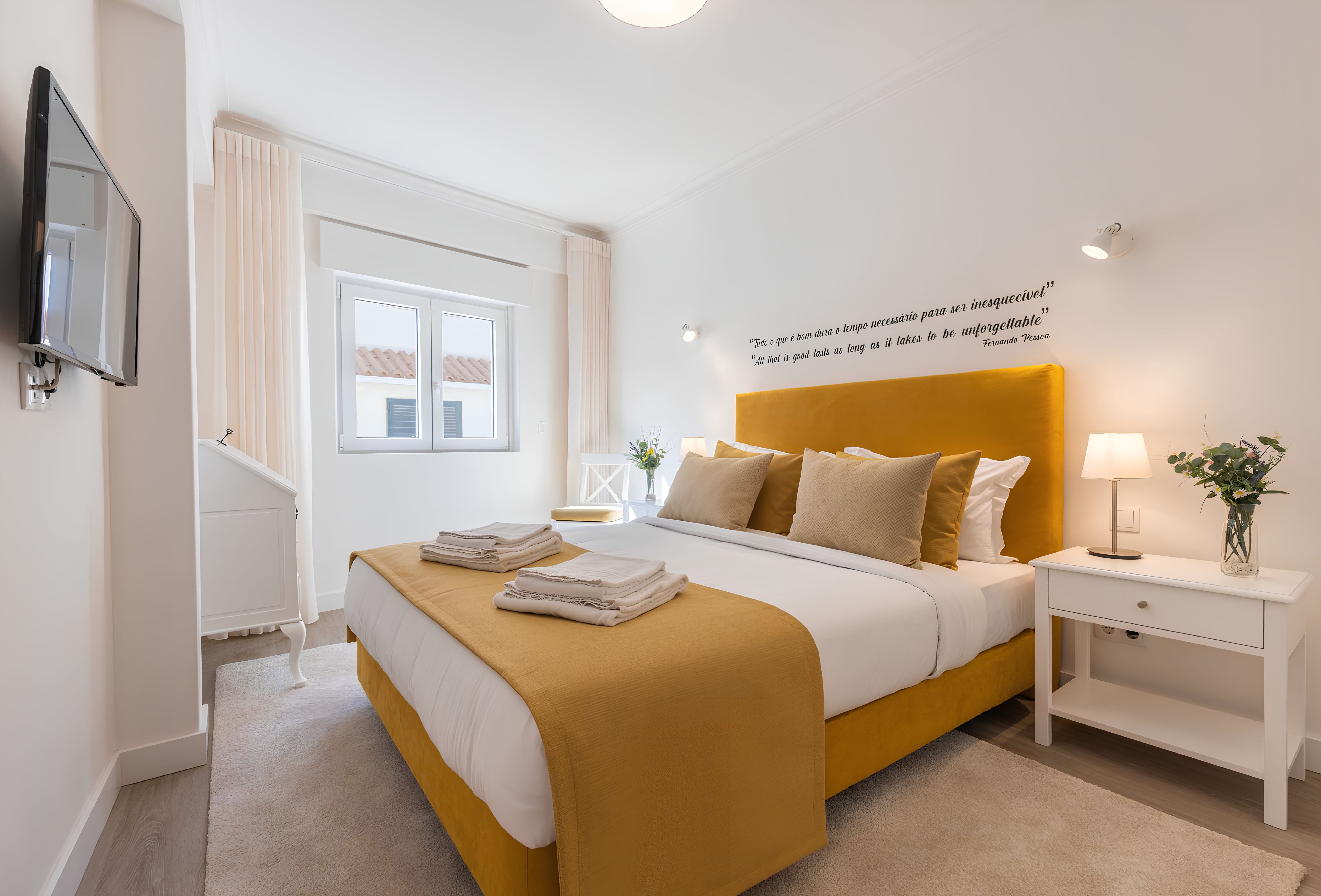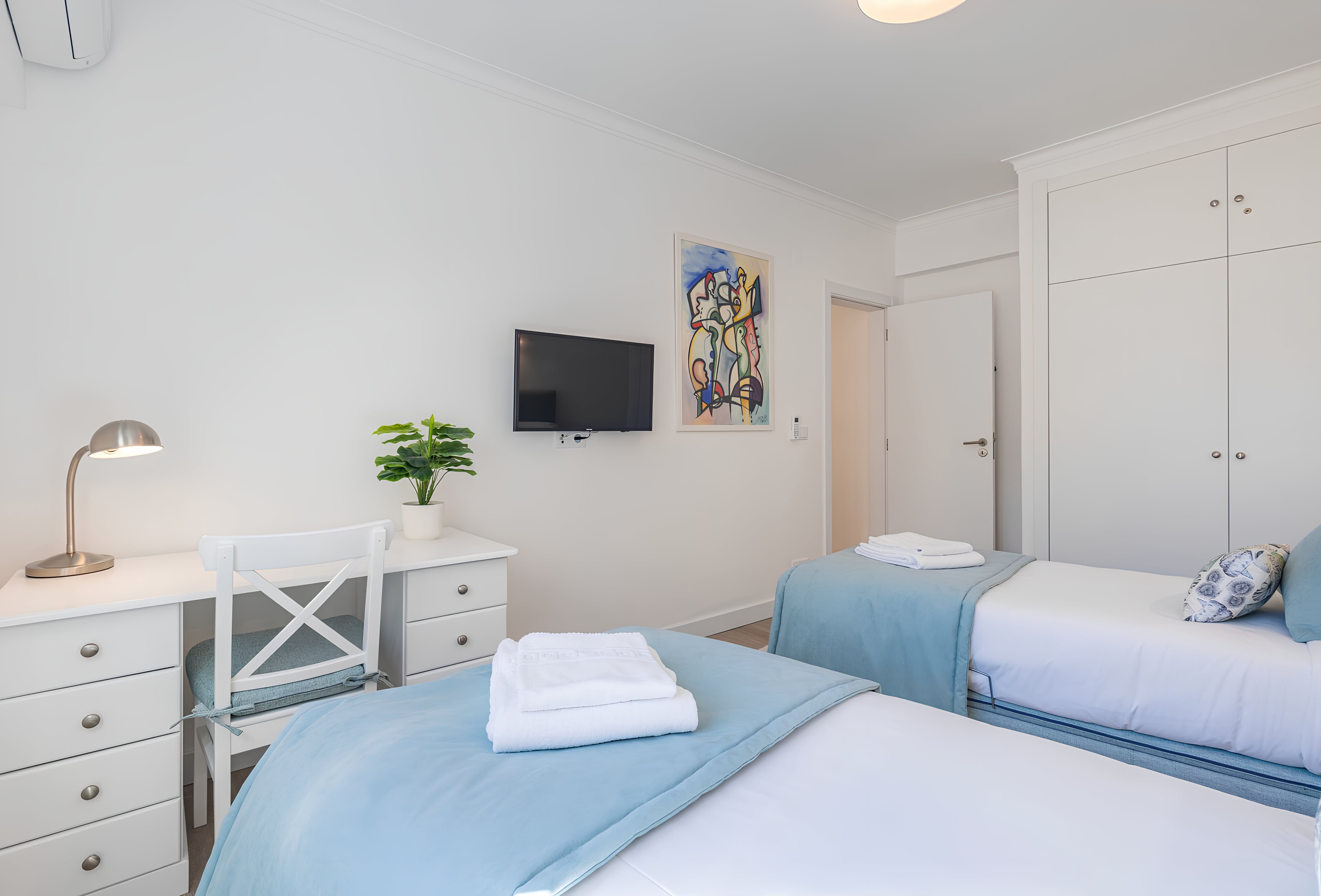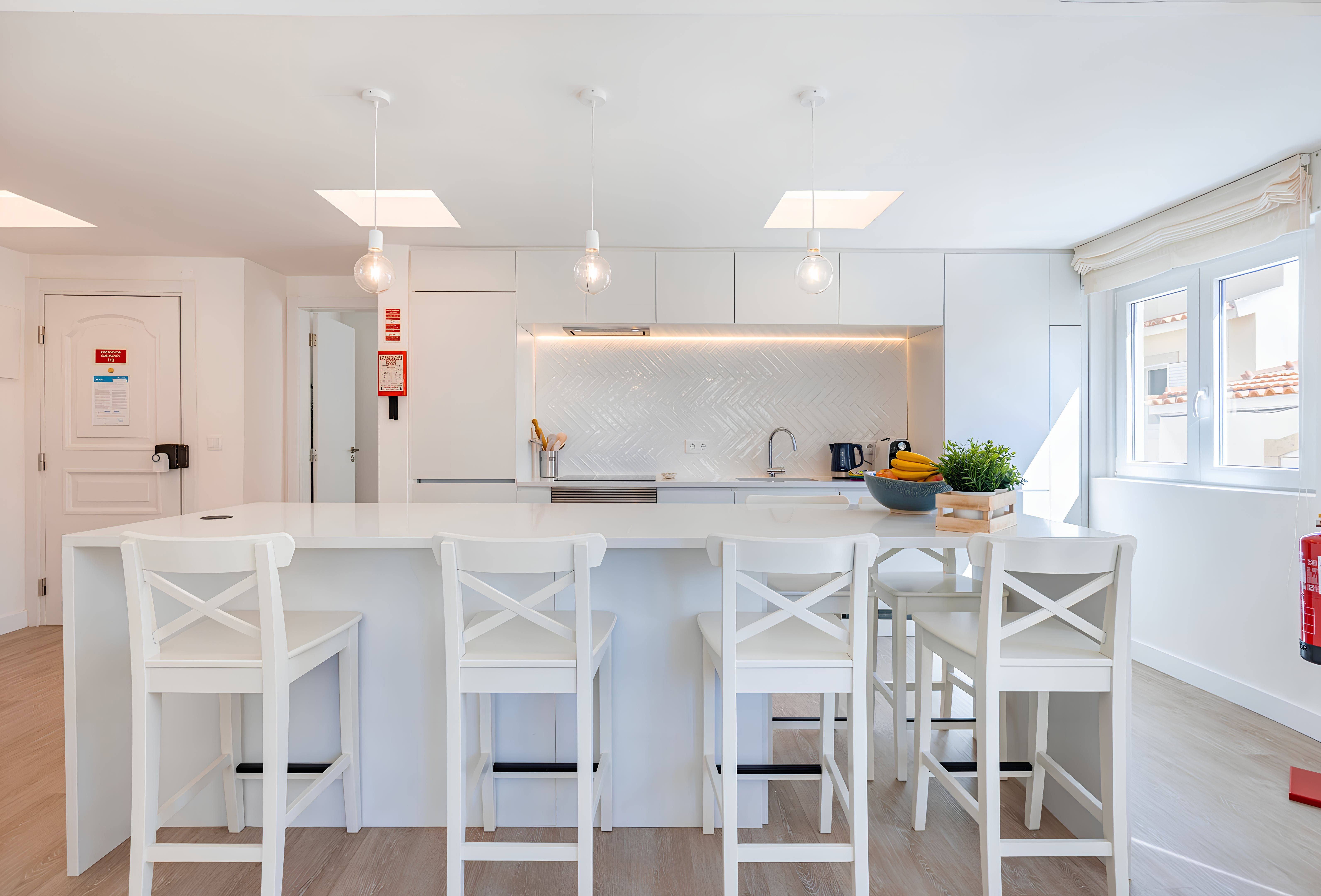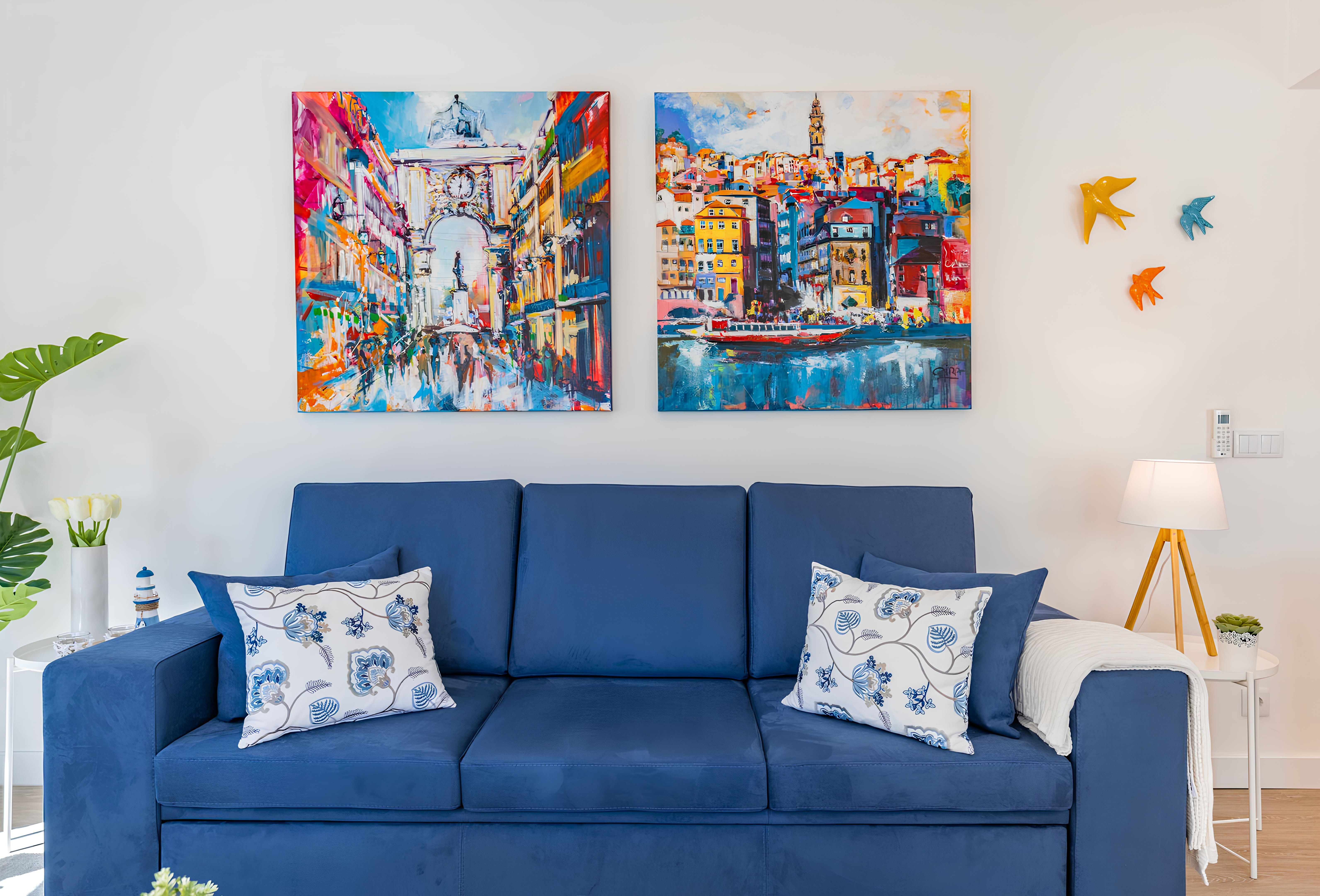 So, this home has the best of both worlds with its location. It's situated in the picturesque town of Cascais with its charming streets and beaches, yet it's just a short stroll to the train station which connects to Lisbon. There's plenty of room for entertaining in the apartment, and there's a desk in one of the bedrooms if you need to catch up on work emails. If you want to accommodate six guests, though, two will be sleeping on a sofa in the open-plan living room.