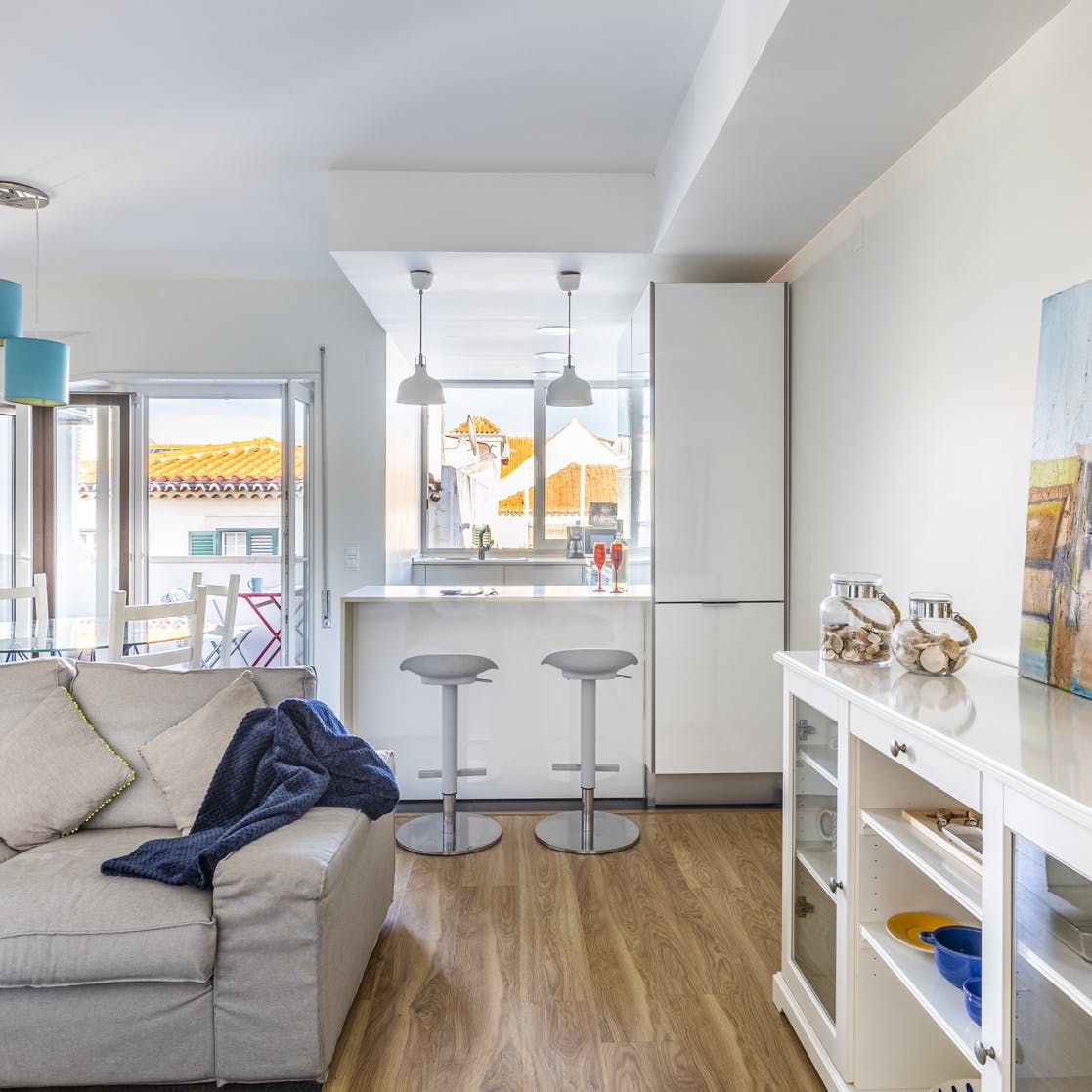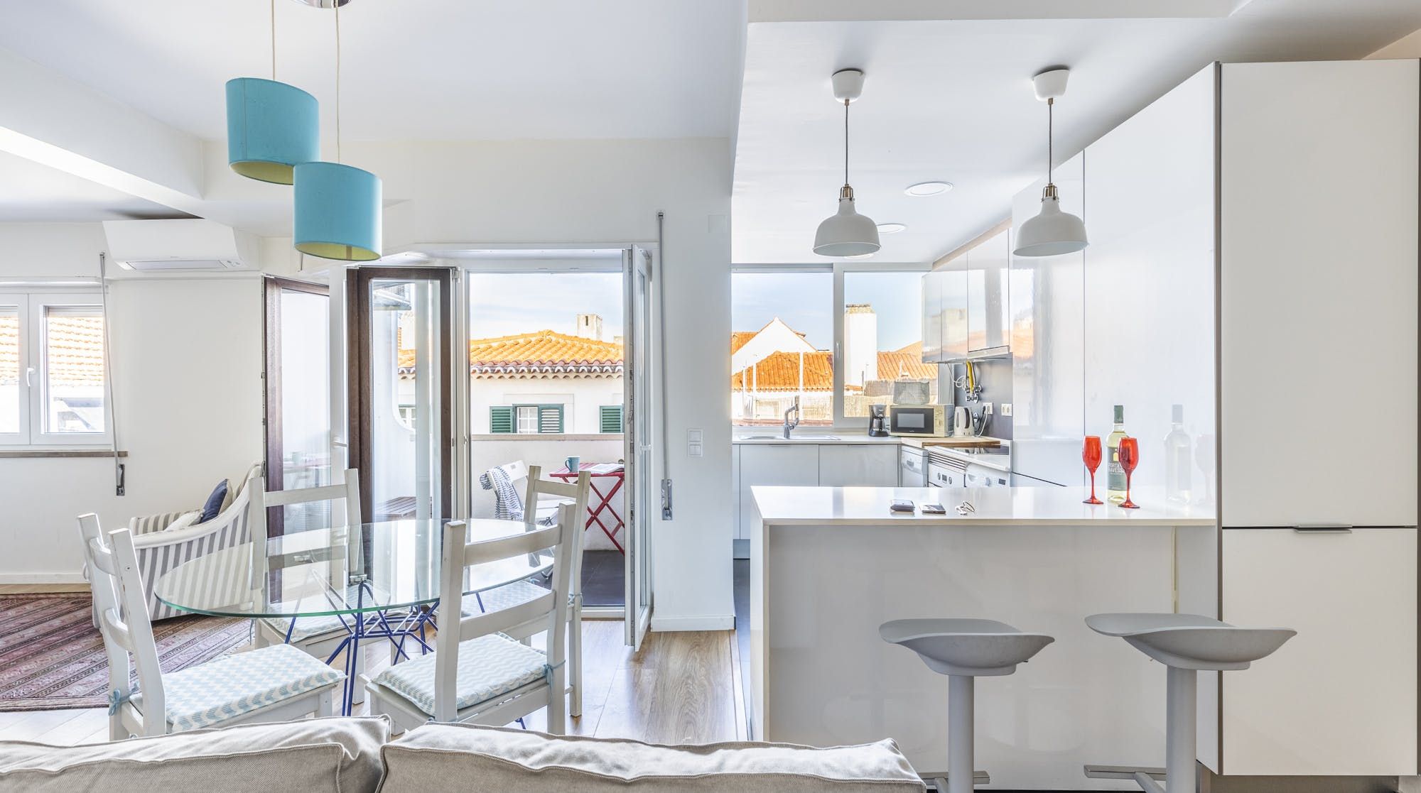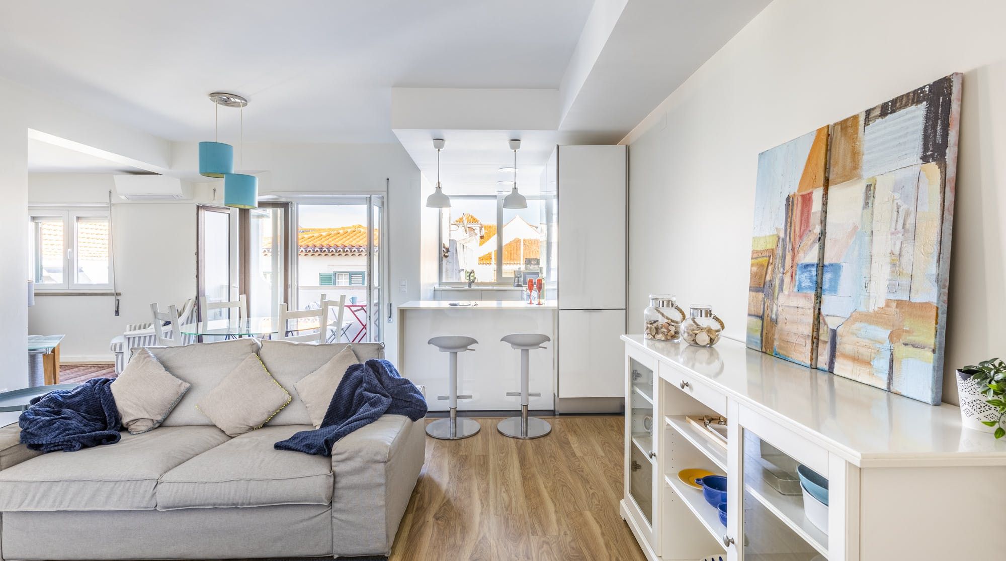 In the coastal resort town of Cascais, this bright and breezy apartment puts you within easy walking distance of the buzzing marina and soft-sanded beaches. It’s 200 meters (a two-minute walk) to the beach and Praça de Camões nightlife hub, and you’ll find fresh seafood restaurants and trendy bars overlooking the boats in the marina too. The apartment is in the charming old centre of town and is the ideal bolthole. Bright white walls lighten each room and boho touches – elephant throws, modern artworks, trinkets and Moroccan-style rugs –add a little charm. The real highlight is the shaded terrace, overlooking the orange roofs of Old Cascais. Out here you’ll find a dining set for four and a trellis adorned with flowering pot plants. It's a perfect spot for that welcome local bottle of wine that awaits your arrival.