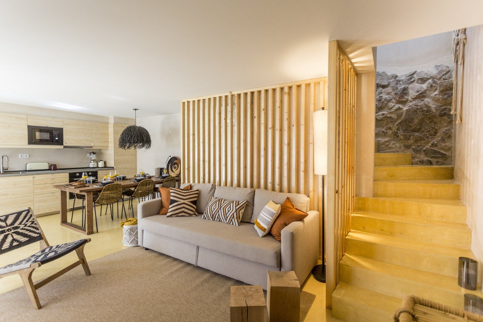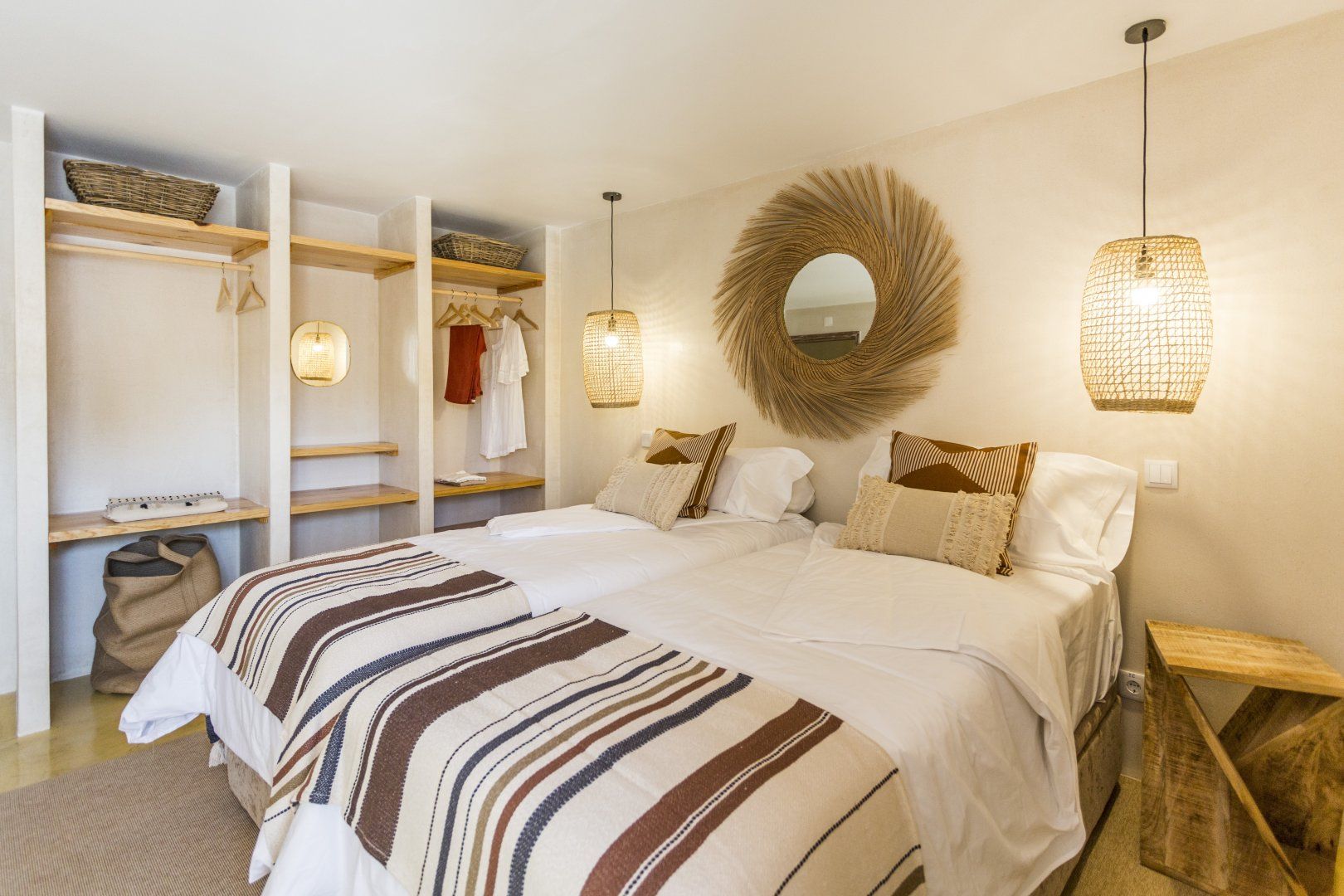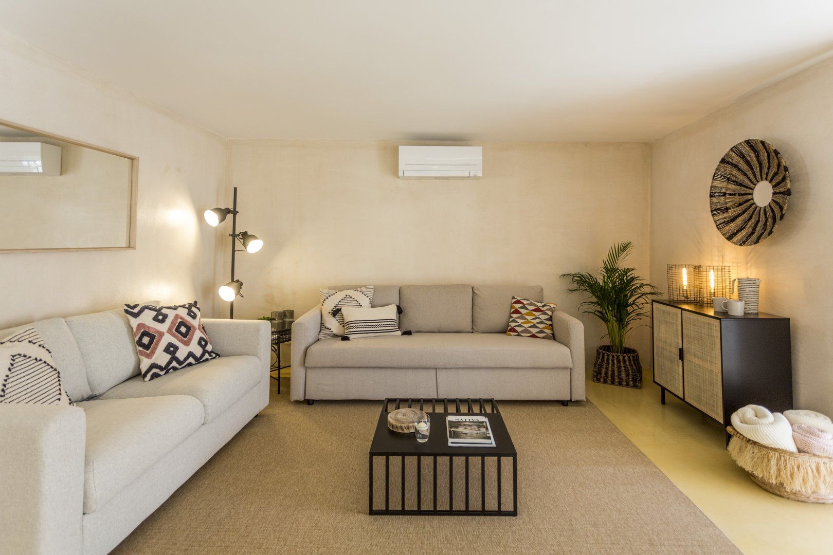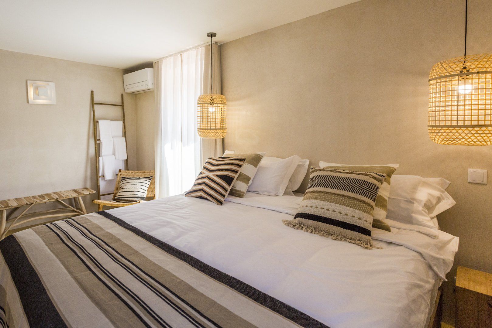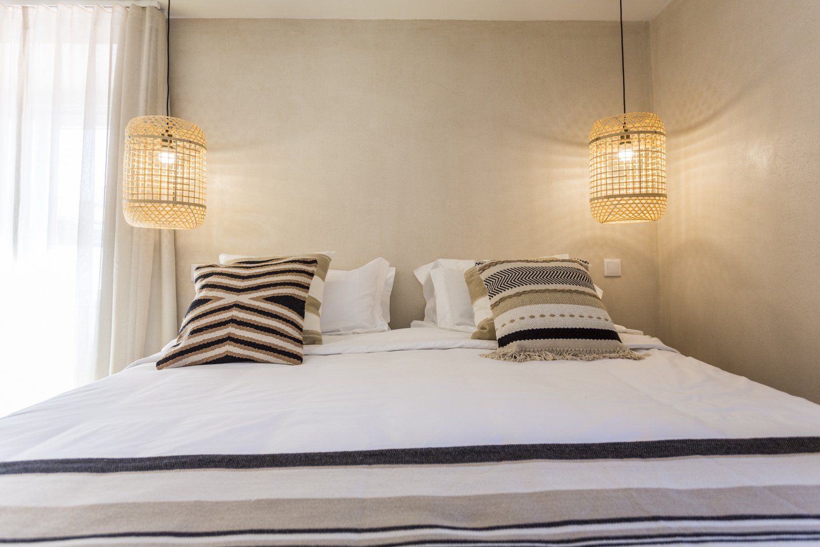 Beautiful beaches, crashing surf, and dramatic nature all await you at this newly refurbished home in Cascais. Tucked away in a picturesque village, this south-facing home comprises three separate villas on a private compound, making it ideal for a large family holiday or getaway with friends. Named after local beaches, Villa Guincho and Villa Cresmina have two bedrooms, with the former benefitting from a second bathroom. Villa Abano is the smallest with one bedroom. All villas boast beautiful sun-soaked terraces with space for alfresco dining and barbecues. Indoors, the design employs sandy neutrals, warm pops of colour and organic materials such as wicker and bamboo to create tranquil sanctuaries with a distinctly coastal feel. From surfing and beach lounging to hiking and cycling through verdant Sintra-Cascais Natural Park, there's something to satisfy everyone's wanderlust. Thrilling Guincho Beach is just a ten-minute walk away, while the calmer sands of Costa da Estoril are also close by. A meander through the Cascais' historical town centre is definitely a must, and if the mood takes you, Lisbon is just half an hour away. After hours of exploring and adventure, you'll love relaxing in the outdoor seating areas, playing board games and catching up well into the evening.