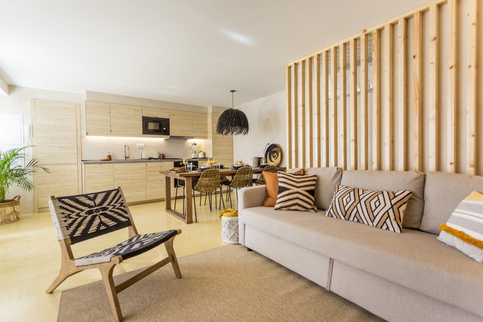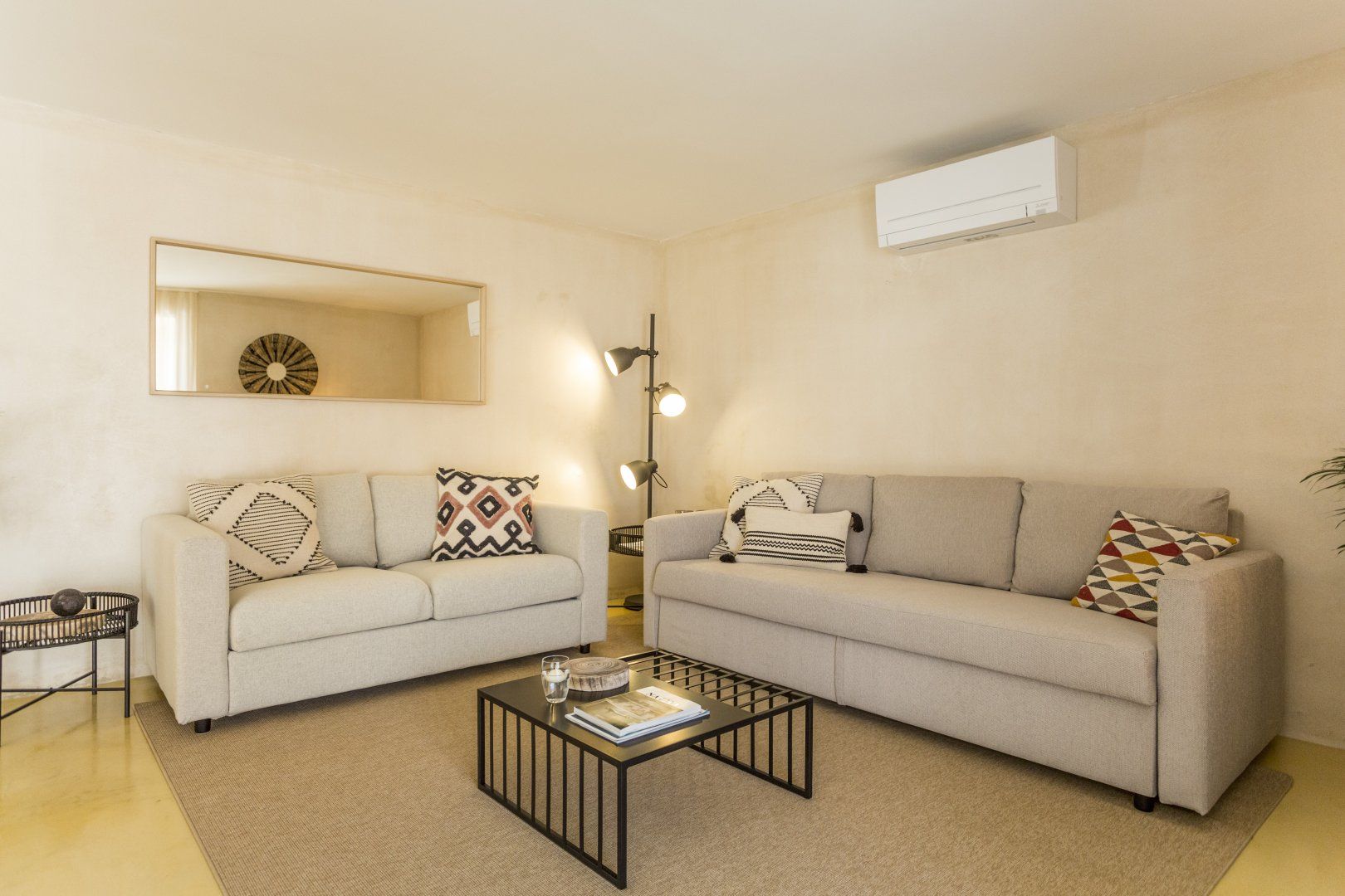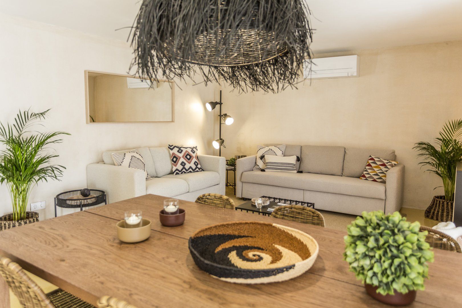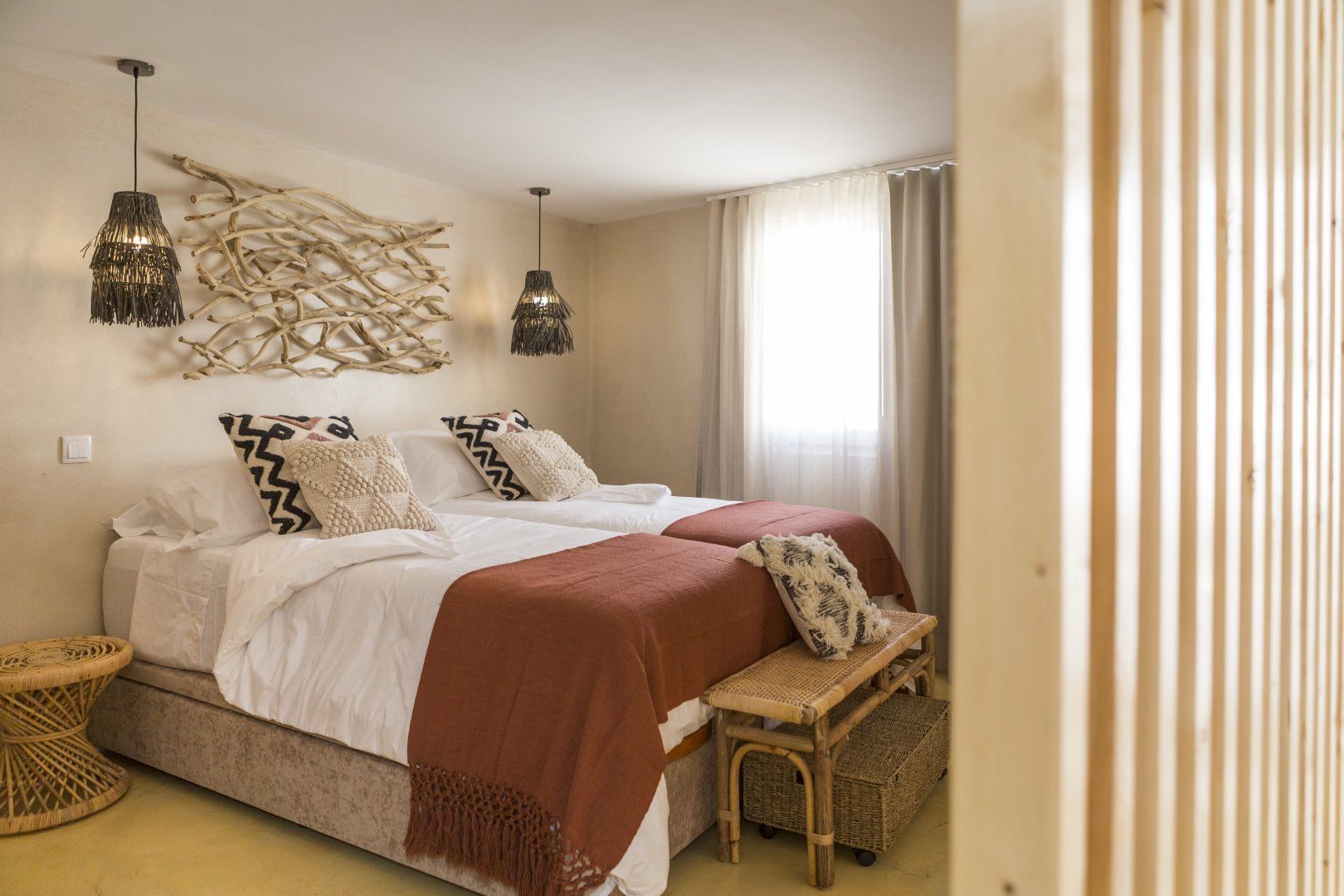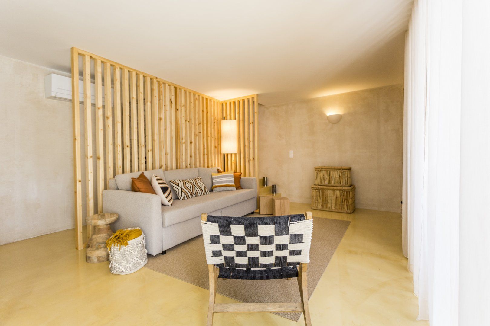 Beautiful beaches, crashing surf, and dramatic nature all await you at this newly refurbished home in Cascais. Tucked away in a picturesque village, this south-facing home comprises three separate villas on a private compound, making it ideal for a large family holiday or getaway with friends. Named after local beaches, Villa Guincho and Villa Cresmina have two bedrooms, with the former benefitting from a second bathroom. Villa Abano is the smallest with one bedroom. All villas boast beautiful sun-soaked terraces with space for alfresco dining and barbecues. Indoors, the design employs sandy neutrals, warm pops of colour and organic materials such as wicker and bamboo to create tranquil sanctuaries with a distinctly coastal feel. From surfing and beach lounging to hiking and cycling through verdant Sintra-Cascais Natural Park, there's something to satisfy everyone's wanderlust. Thrilling Guincho Beach is just a ten-minute walk away, while the calmer sands of Costa da Estoril are also close by. A meander through the Cascais' historical town centre is definitely a must, and if the mood takes you, Lisbon is just half an hour away. After hours of exploring and adventure, you'll love relaxing in the outdoor seating areas, playing board games and catching up well into the evening.