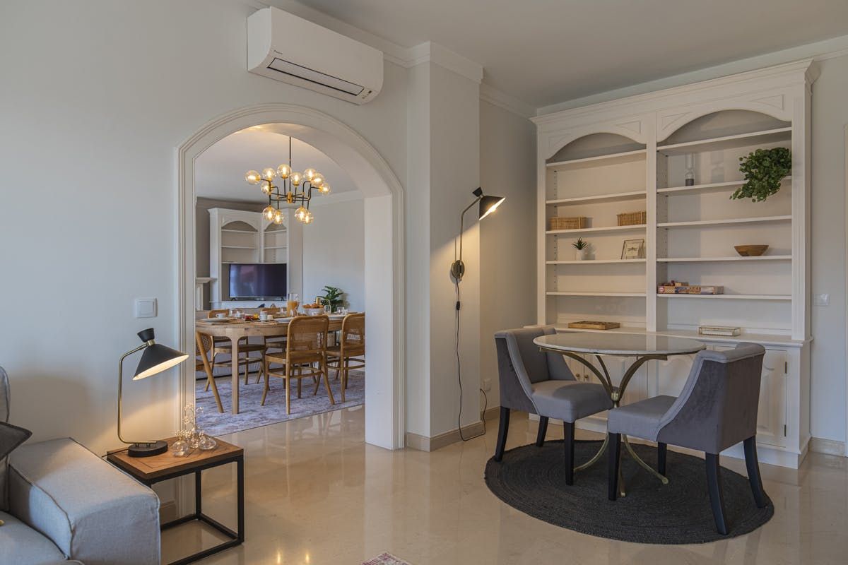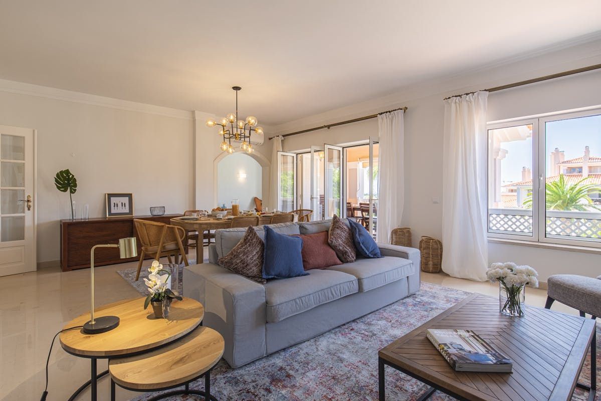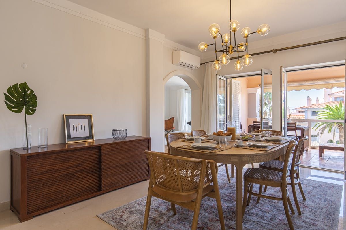 This fuss-free apartment is perfect for big gatherings and multigenerational escapes to the Lisbon coastline. A spacious dining area calls for catch-ups over supper, while the cosy balcony is ideal for quiet moments in the morning – especially when accompanied with a strong espresso and flaky pastry. There are two sitting rooms to loll about in between excursions, and comfy bedrooms that demand midday catnaps. After settling in, throw on your swimsuit and make a beeline for the communal pool – or loungers, if sun worshipping is more your thing. The surrounding gardens are tranquil and inviting; spot wildlife as you stroll beside the stream. Take the fifteen-minute walk into Cascais for restaurants, cafes and of course, the beach. Praia da Ribeira hums during the daytime, but visit in the late afternoon for lighter crowds, warmer waters and a knockout sunset.