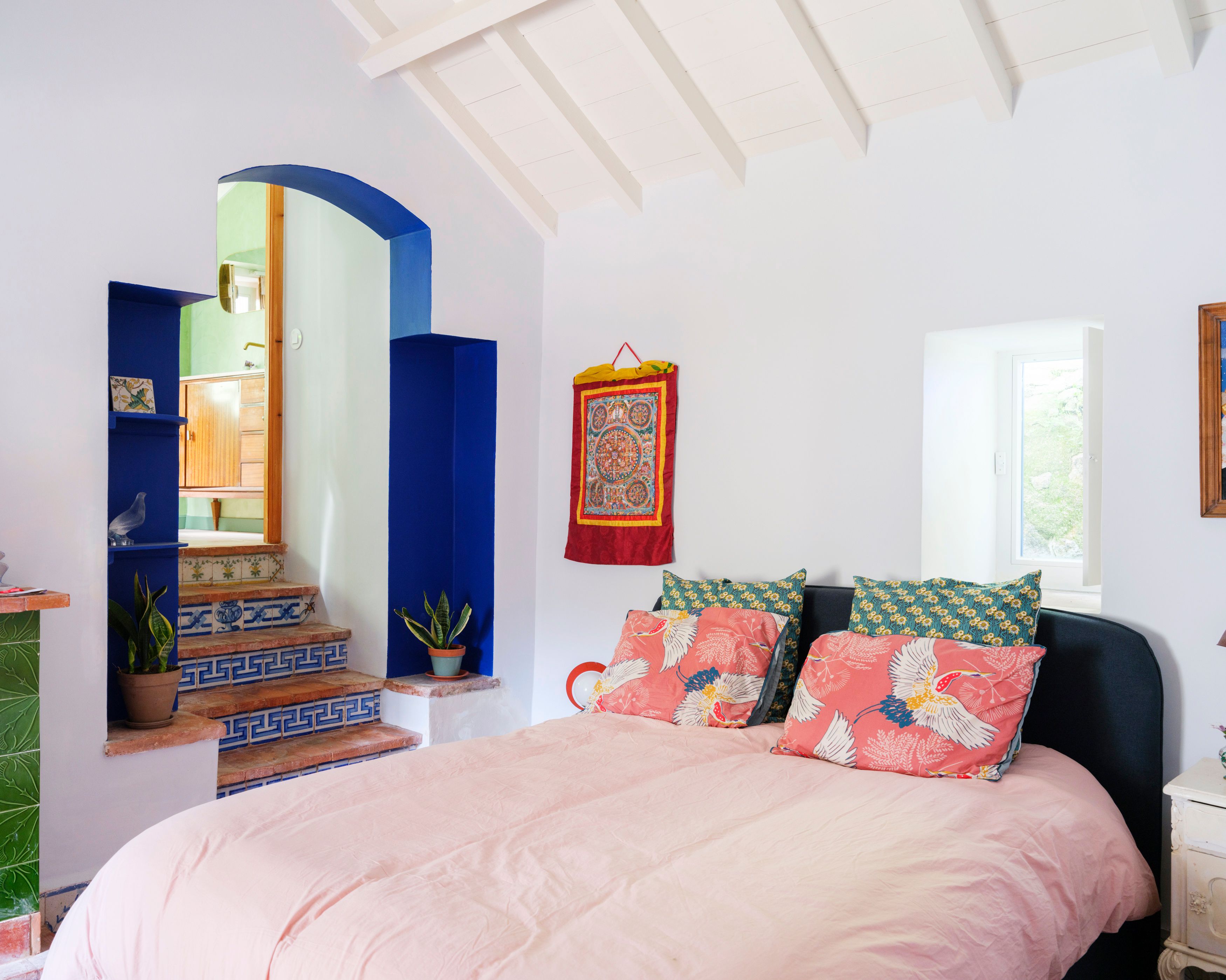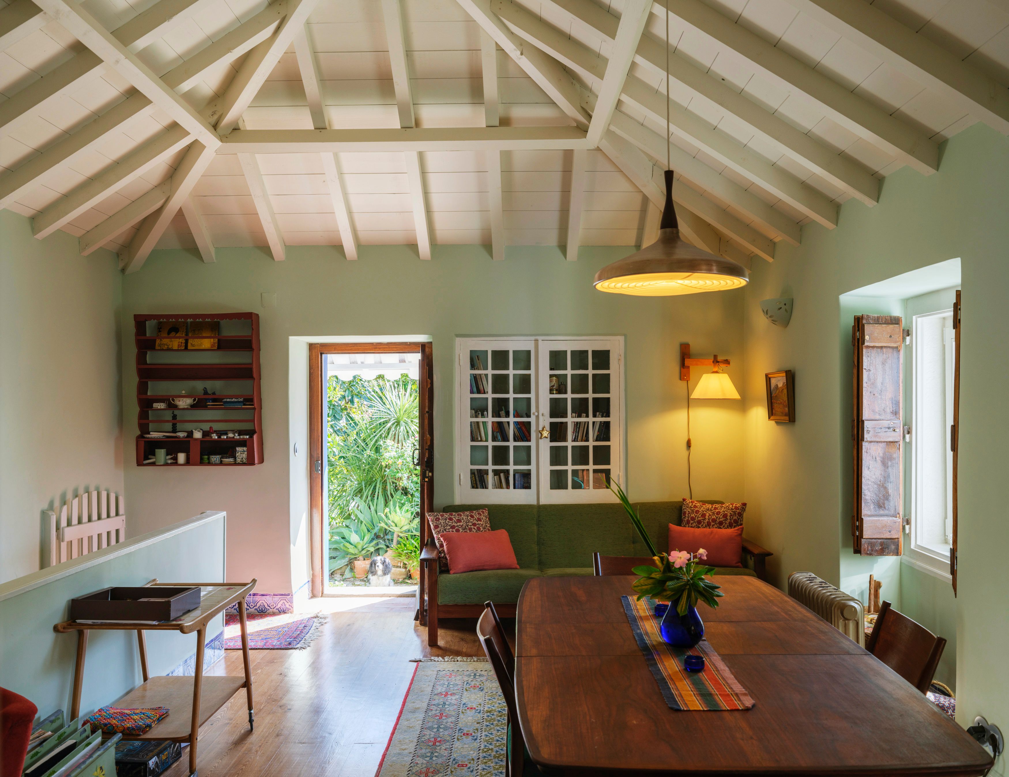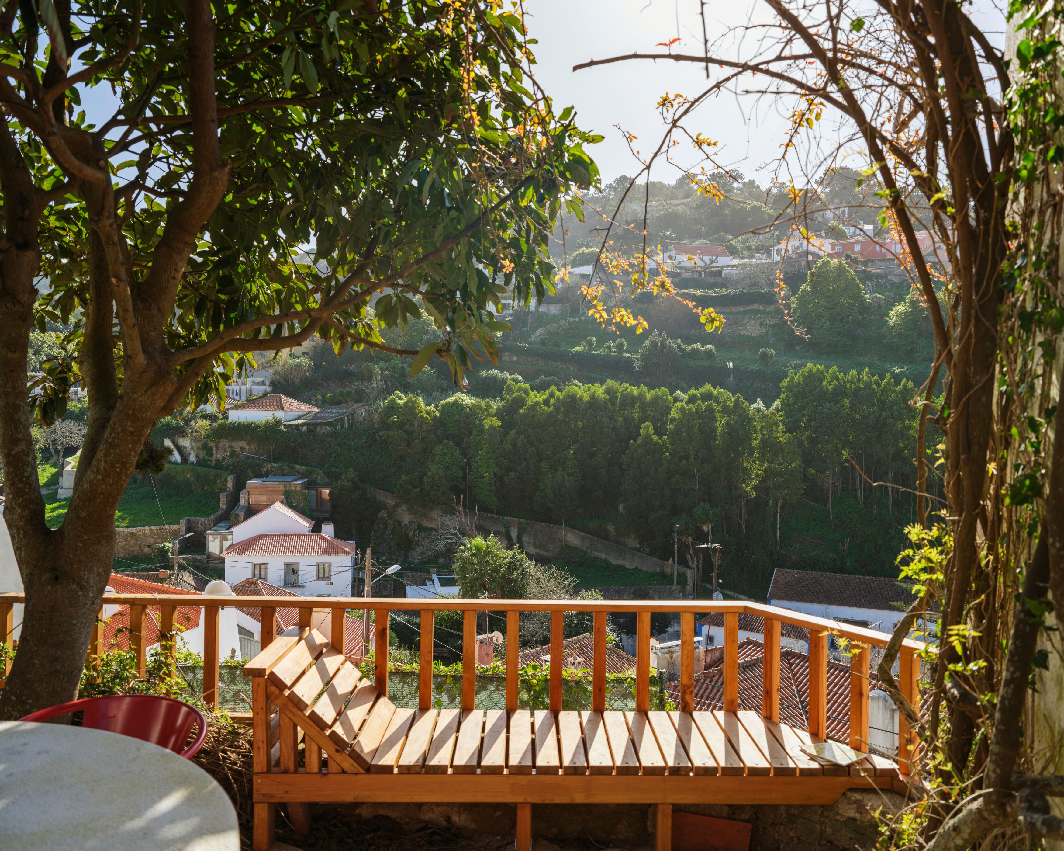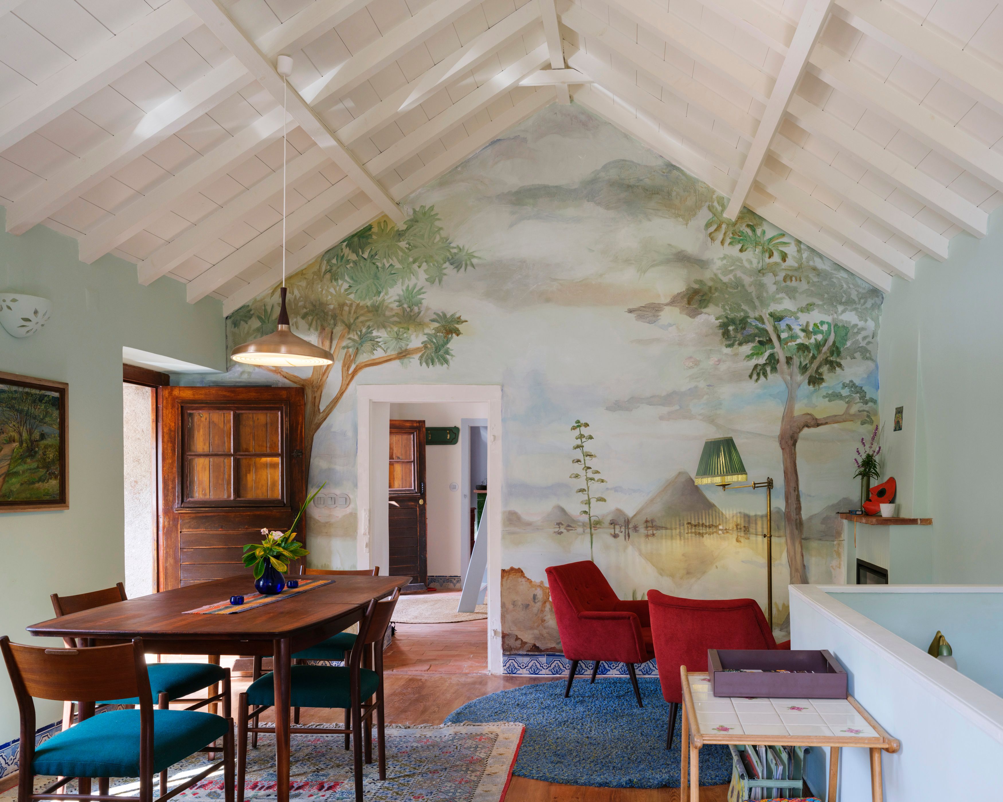 The sweeping views from this home have to be seen to be believed. It sits amid lush countryside in Colares in a spectacularly scenic spot. The views can be admired from the beautiful garden, which has countless cosy corners to sit in, as well as a stone table for alfresco dining, and sun loungers – sun-seekers will be content here. The house is full of charm, decorated in pretty hues and with stunning Portuguese tiles throughout. You’ll be close to the coast, with Praia da Adraga a few minutes away by car.