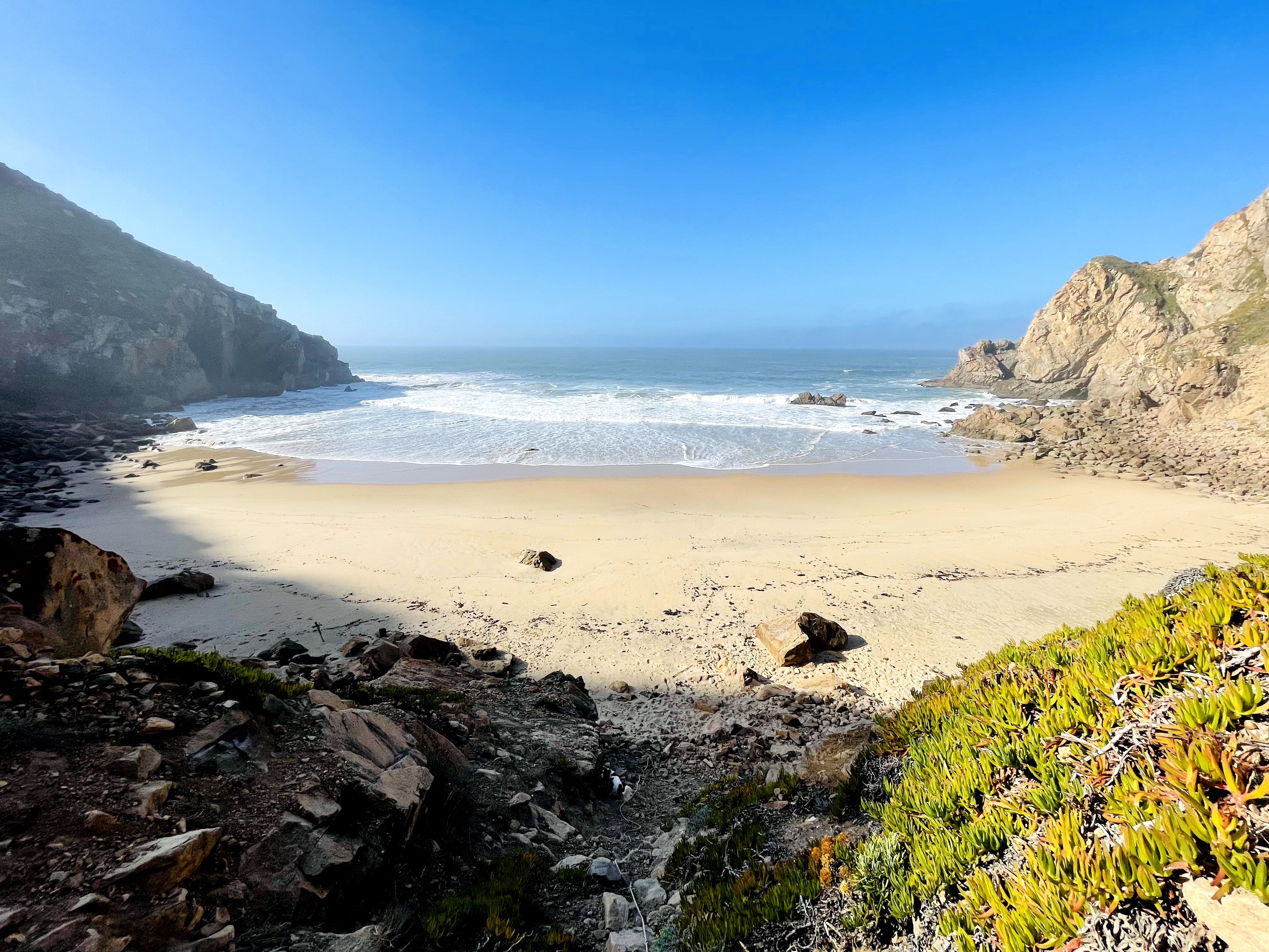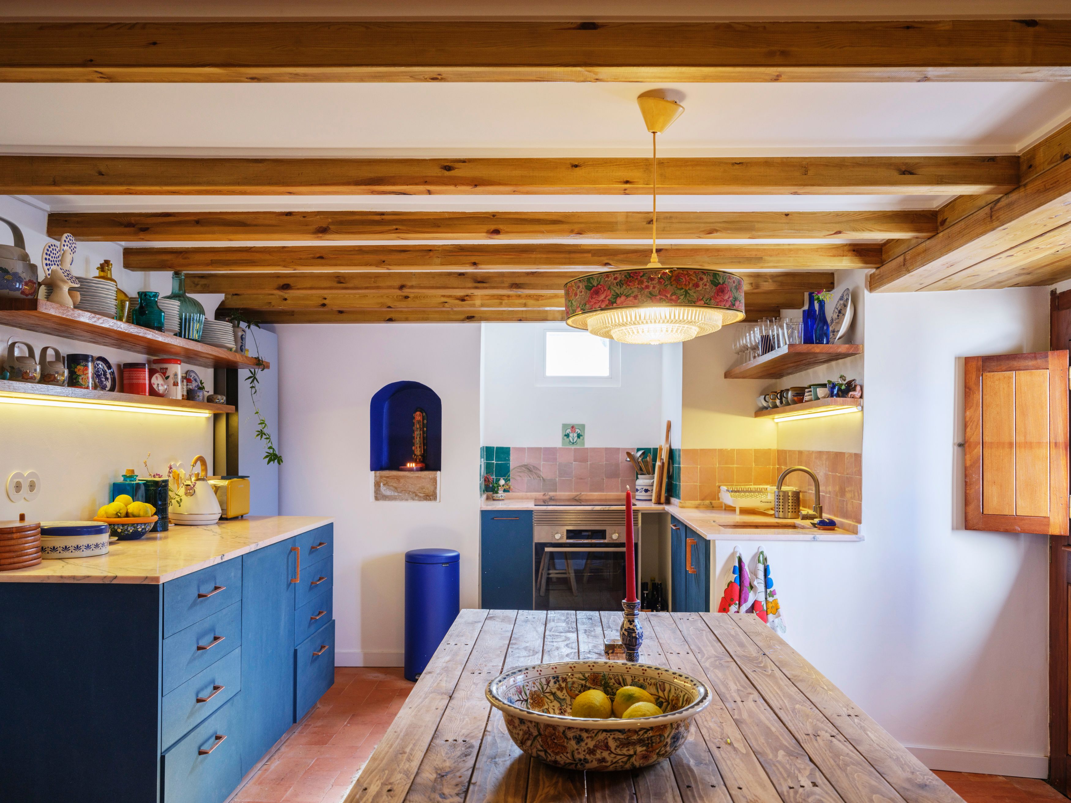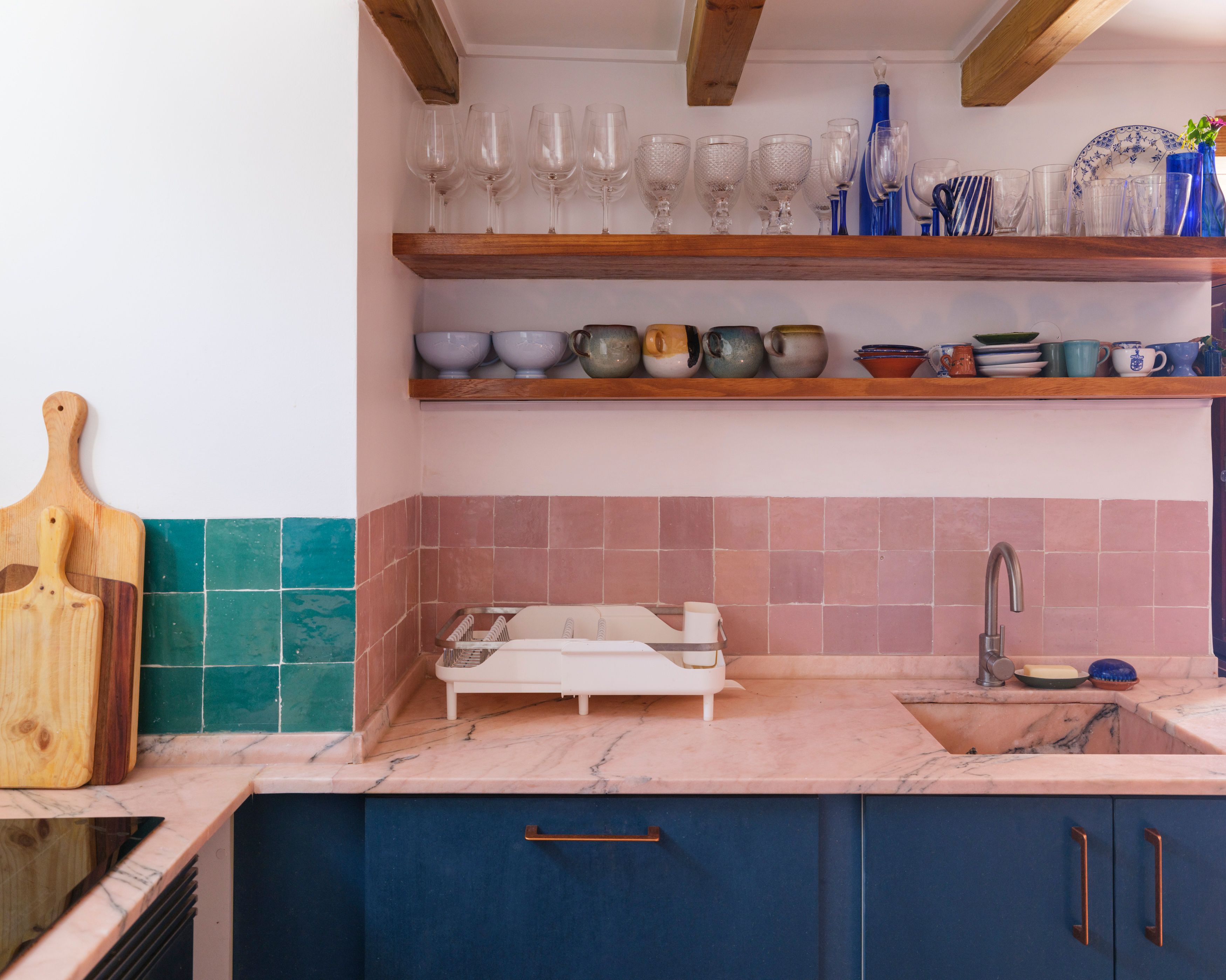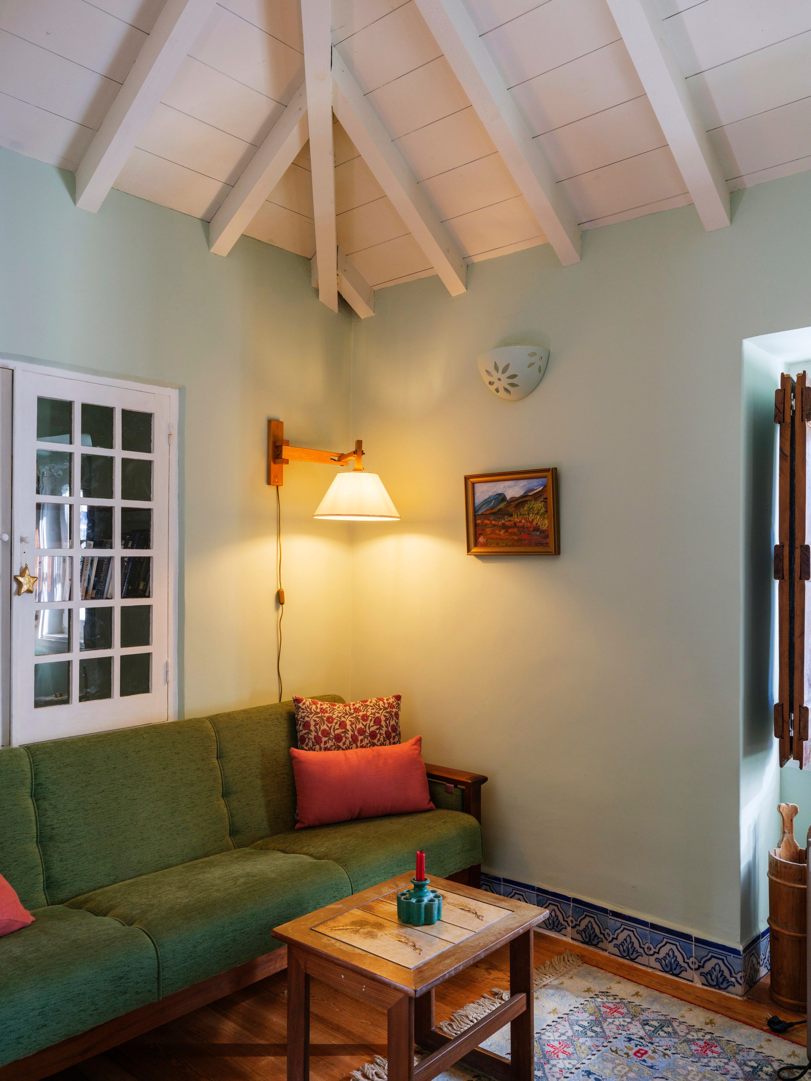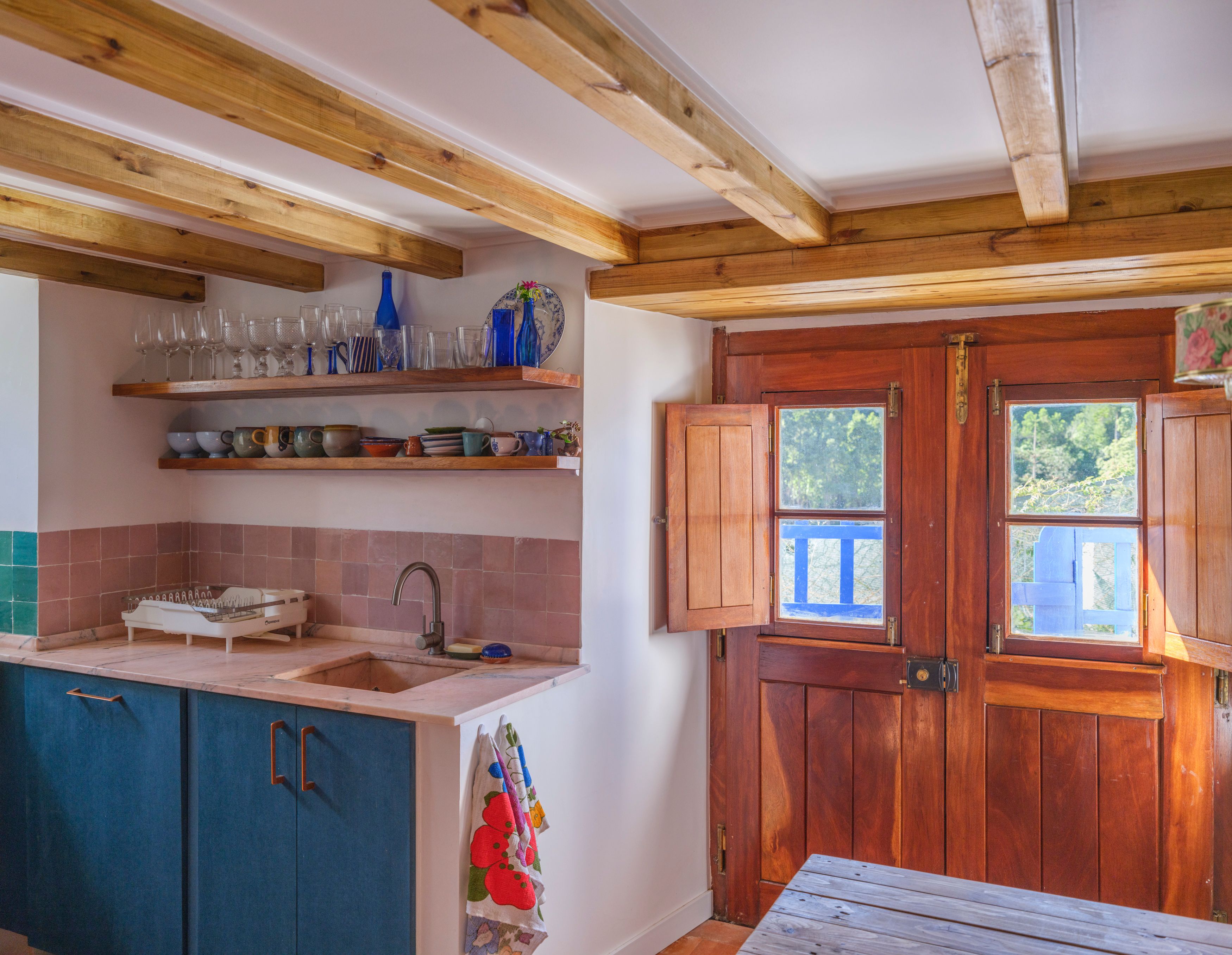 The sweeping views from this home have to be seen to be believed. It sits amid lush countryside in Colares in a spectacularly scenic spot. The views can be admired from the beautiful garden, which has countless cosy corners to sit in, as well as a stone table for alfresco dining, and sun loungers – sun-seekers will be content here. The house is full of charm, decorated in pretty hues and with stunning Portuguese tiles throughout. You’ll be close to the coast, with Praia da Adraga a few minutes away by car.