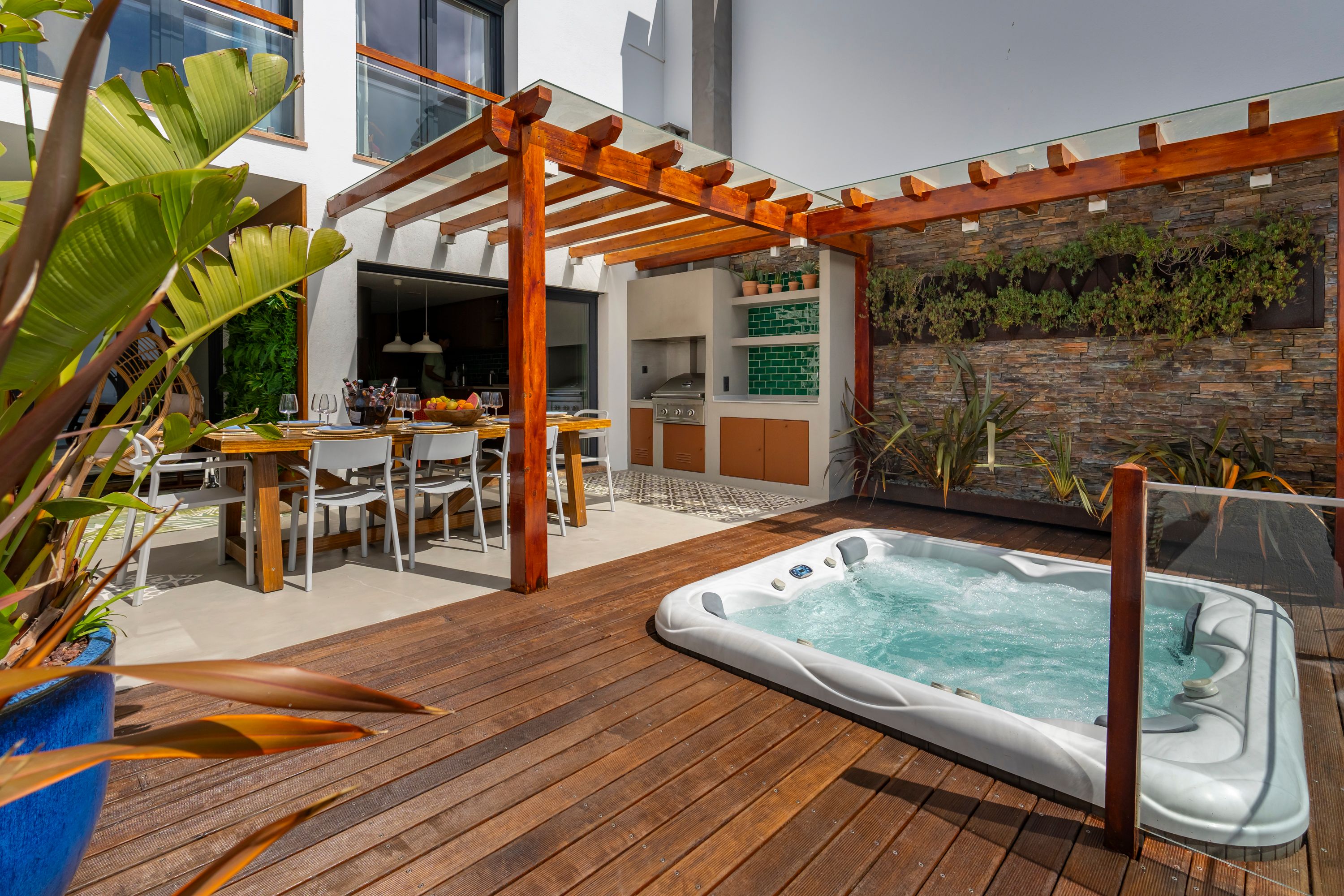 On the outskirts of charming Ericeira, this home puts you a five-minute walk from shops, restaurants, and beaches. It's a great spot for exploring on foot, though there's plenty to love here besides the location. For starters, the coastal views are hard to beat. Another favourite is the hot tub – ideal for a sunset soak – while the terrace has alfresco dining covered. The design inside is modern and bright, with a collection of comfortable bedrooms to choose from. As the fifth bedroom boasts a trundle bed, we think this pad is best for eight adults and two children.