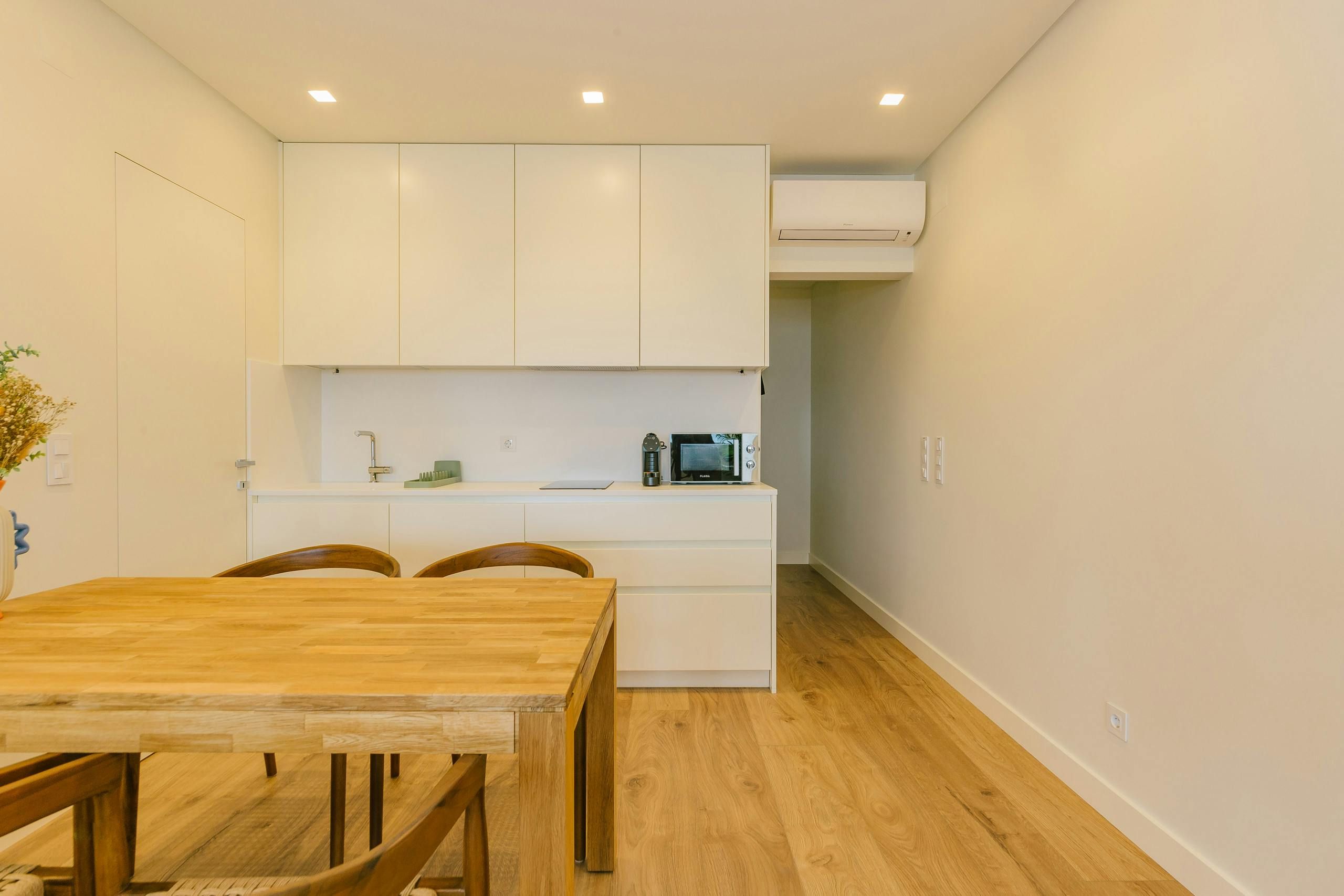 With stunning views of the Atlantic Ocean and one of Estoril’s wonderful sandy beaches, this apartment has a great location, but more of that shortly. The home itself has a light and bright open-plan living space, and while there’s no oven in the kitchen area, there are plenty of cafes and restaurants a short stroll away. Set in the heart of Estoril, the beach is just steps away, while Estoril Garden and the town’s famous casino are in walking distance.