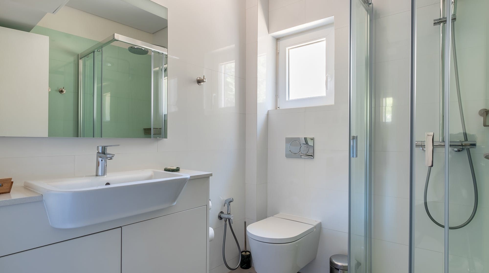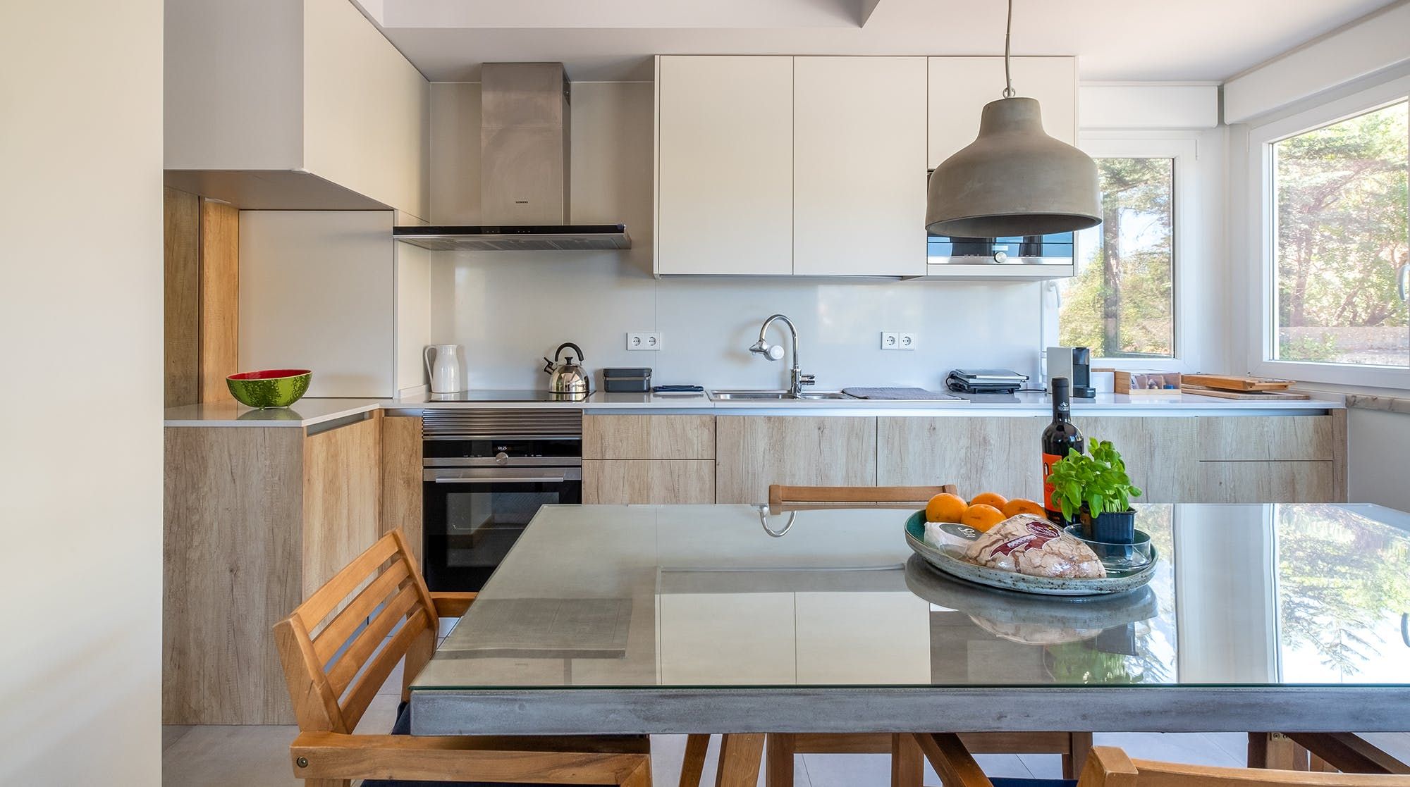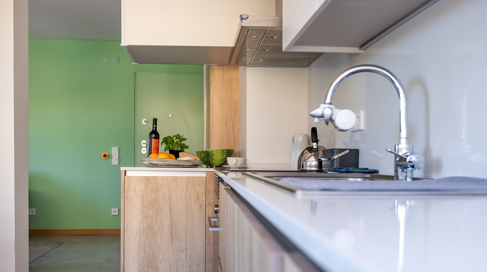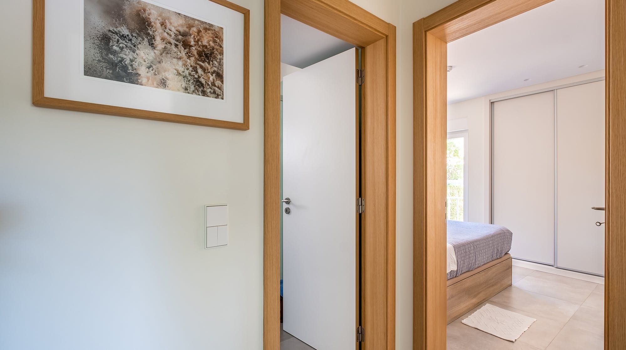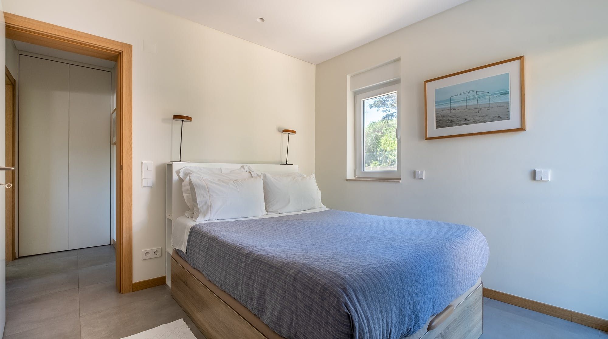 It’s the little details that set this home apart from the rest – the wine fridge in the kitchen to keep your vinho verde’s crisp and cool, the bespoke desk in the window for working remotely, and hand-picked utensils and crockery in the kitchen. True to Portuguese tradition, the kitchen is a bright spot, thanks to corner windows looking out over the tree-filled shared garden. Open-plan, the living room is equally as bright and sunny during the day.