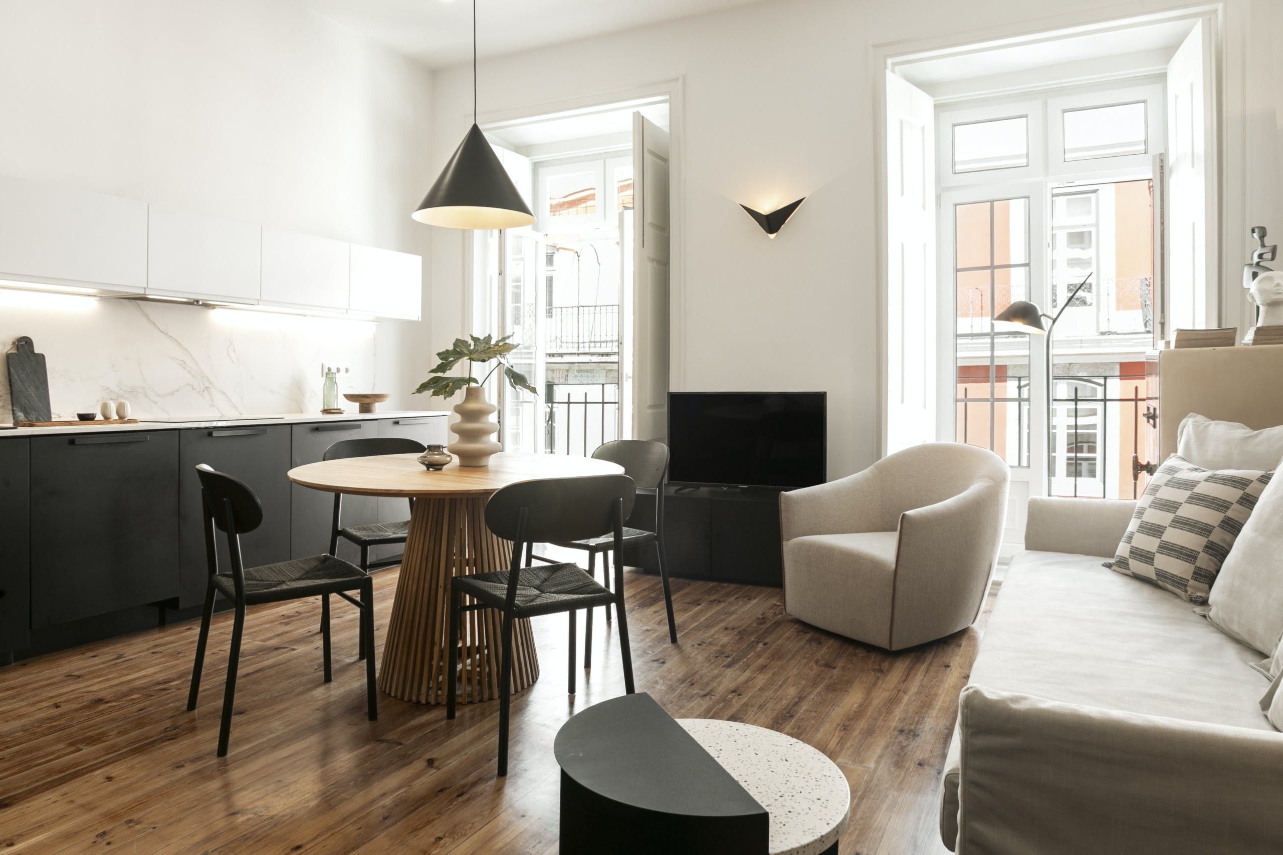 Just steps from Lisbon's Praça do Comércio, this apartment welcomes you to unwind and explore the ease. With its enviable location, some street noise should be expected here, however, most of the major sights are a short walk away. Spend the afternoon sunbathing on the banks of the Tagus River, pay a visit to the Lisbon Cathedral, or sample the eateries at the Timeout Food Market nearby. When you return home, there's a fully-equipped kitchen for preparing laidback meals, a handy desk space, and a charming balcony, which may be a Juliet, but we still think it's a pleasant spot for enjoying an evening drink. Also note that at full capacity, two people will be sleeping on a sofa bed in the living area.