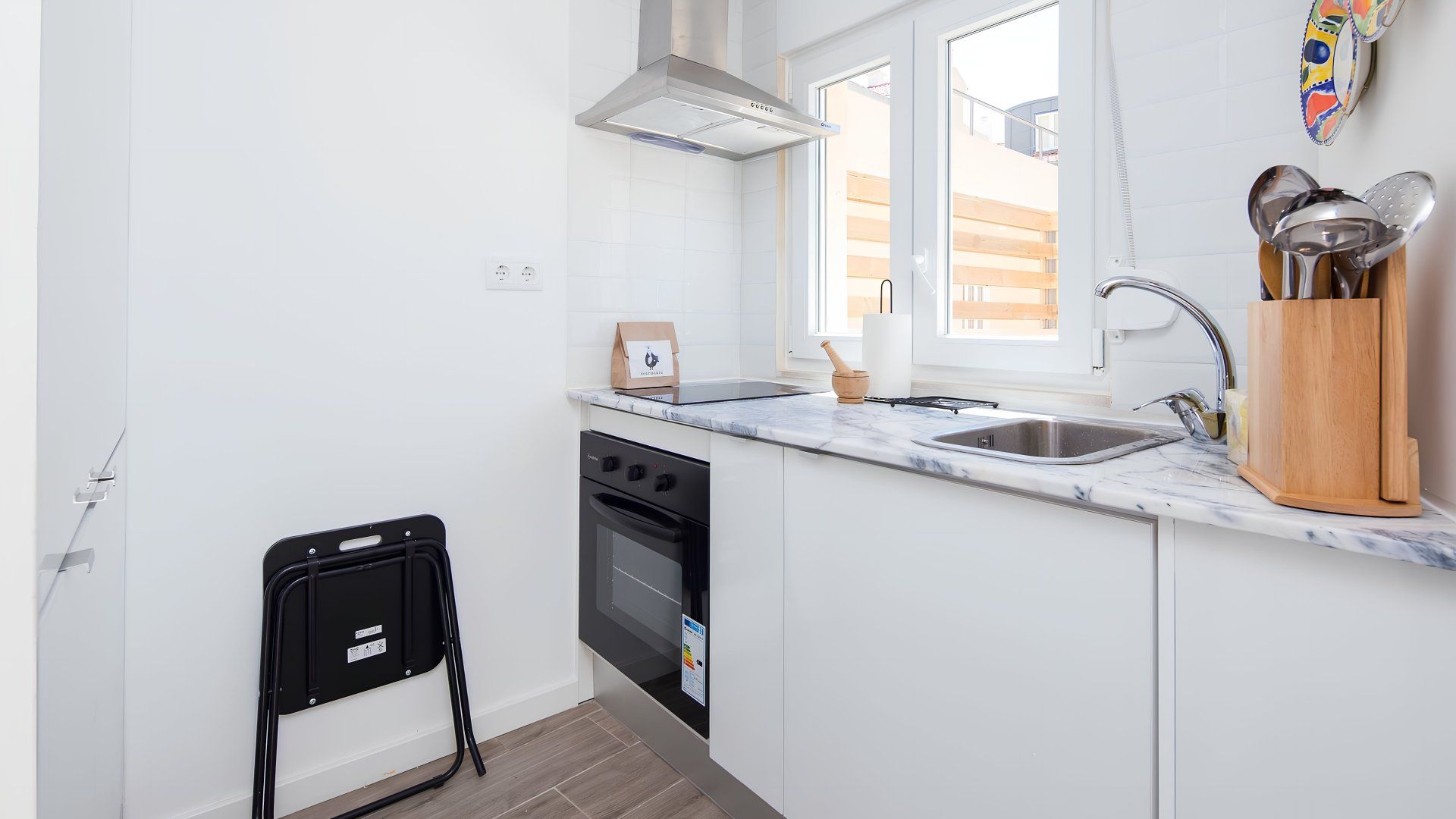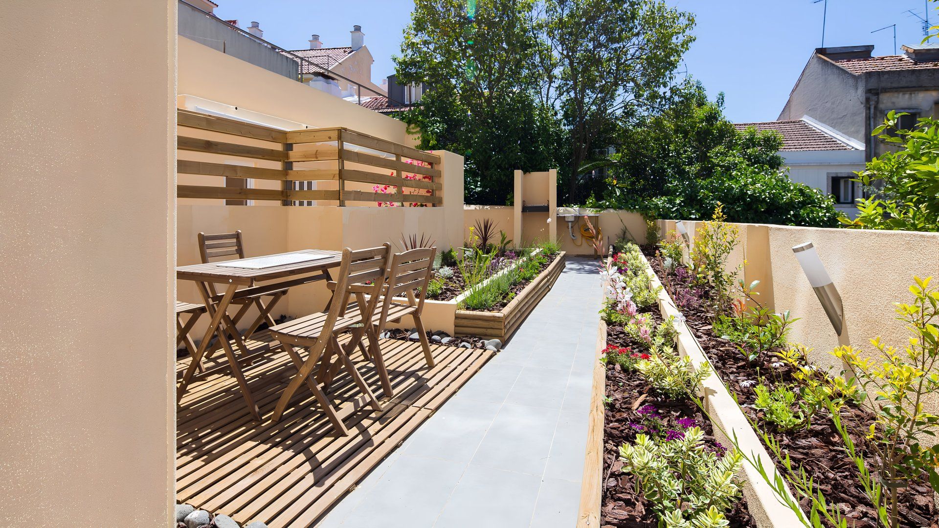 This fuss-free apartment in Lisbon’s Estrela neighbourhood will suit those looking to explore the city away from the tourist crowds. Sitting on a calm street and boasting a sunny patio garden complete with outdoor seating and a barbecue, you’ll have plenty of opportunity to soak up the sun from your pad. The decor inside isn’t the most inspiring and at capacity, two guests will need to share the sofa bed in the living area. But for a practical base with decent transport links to the city’s main sights, this home hits the mark.