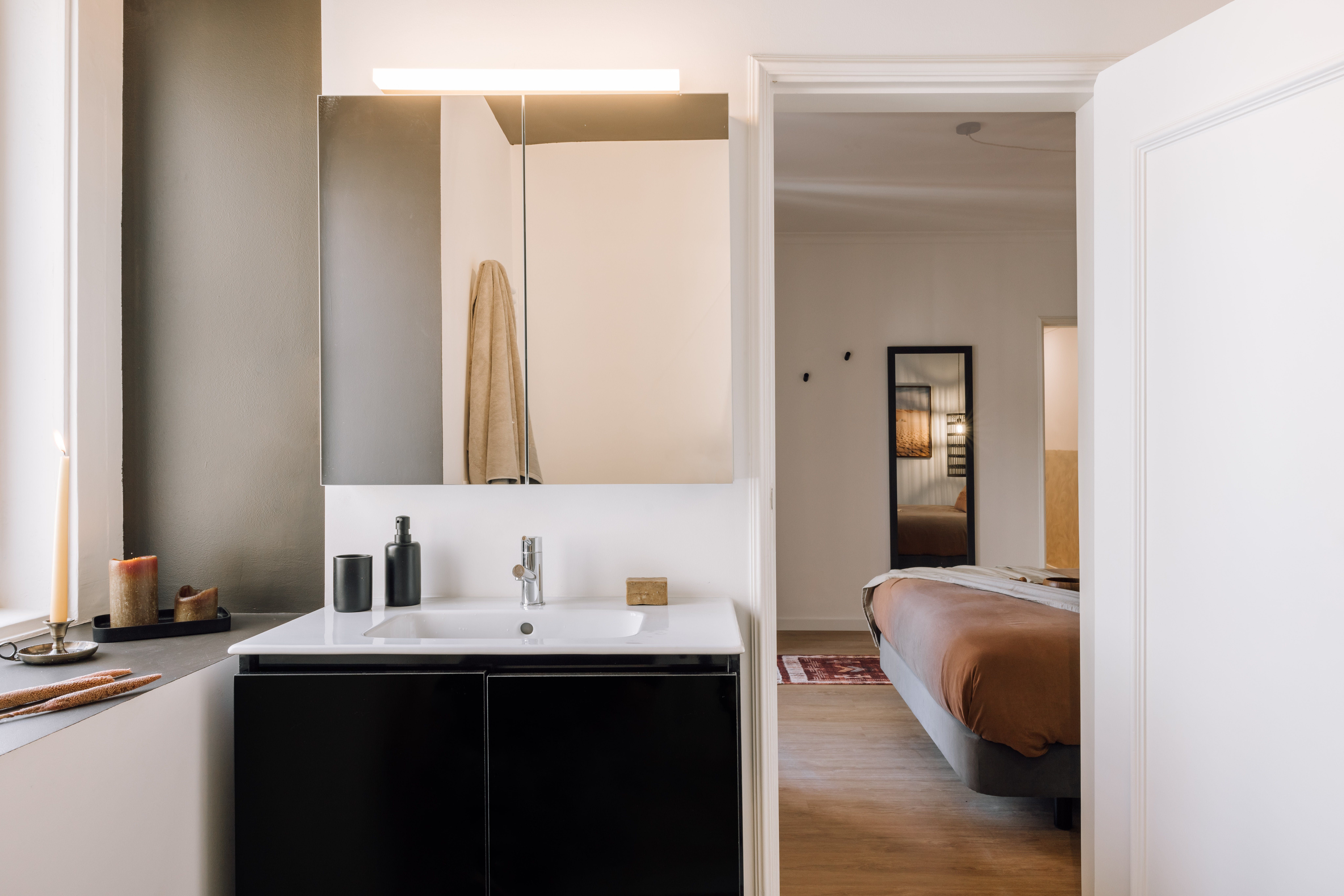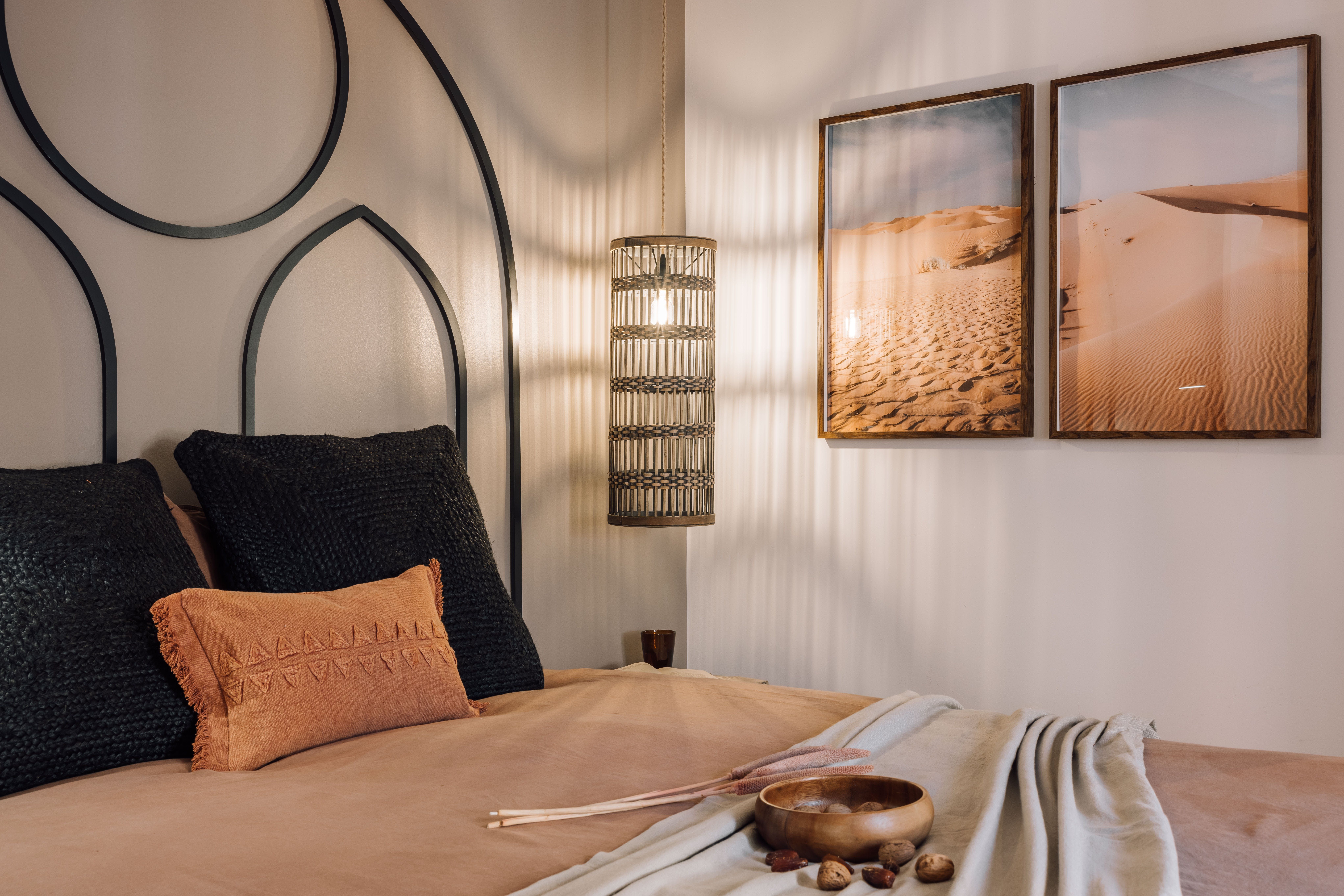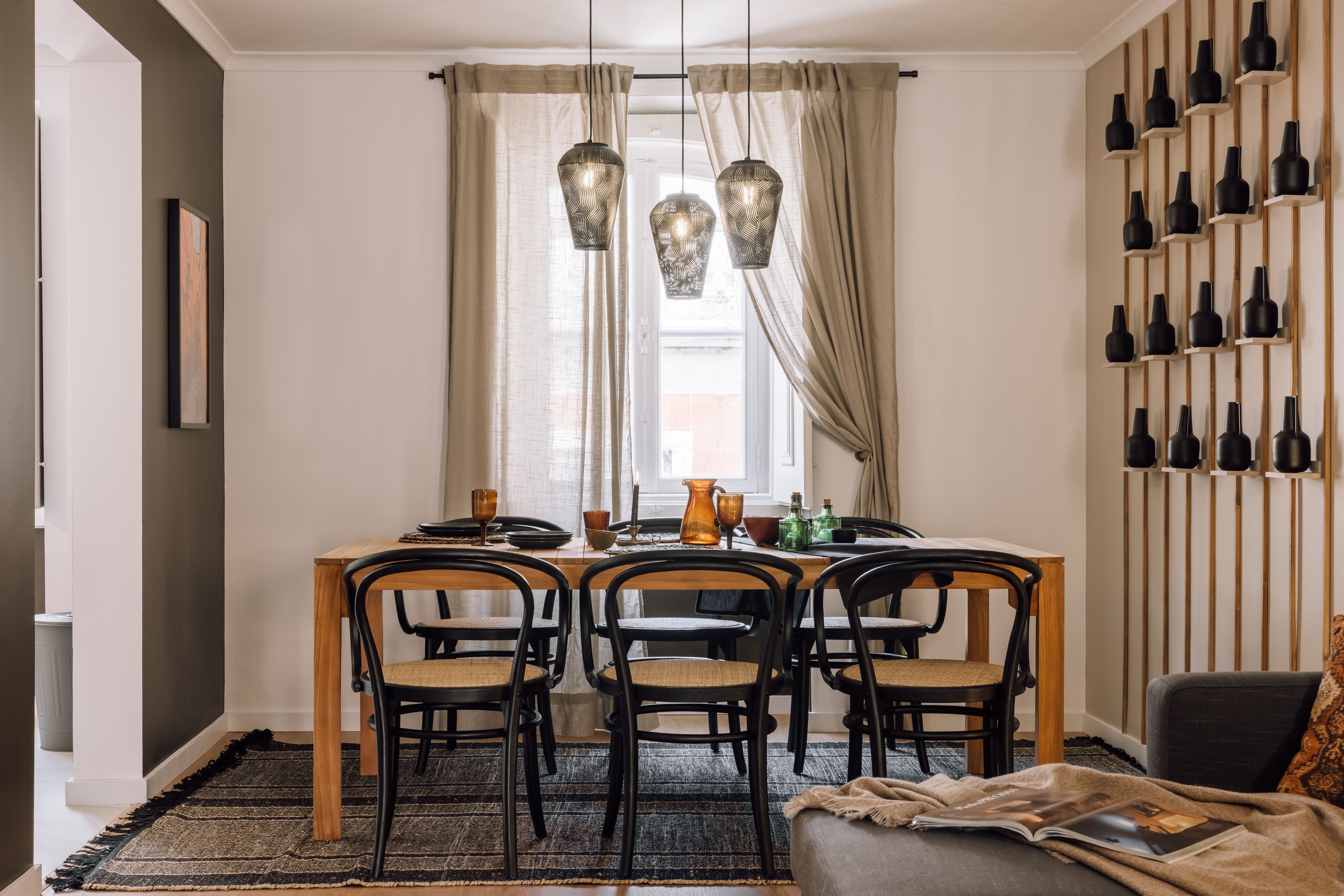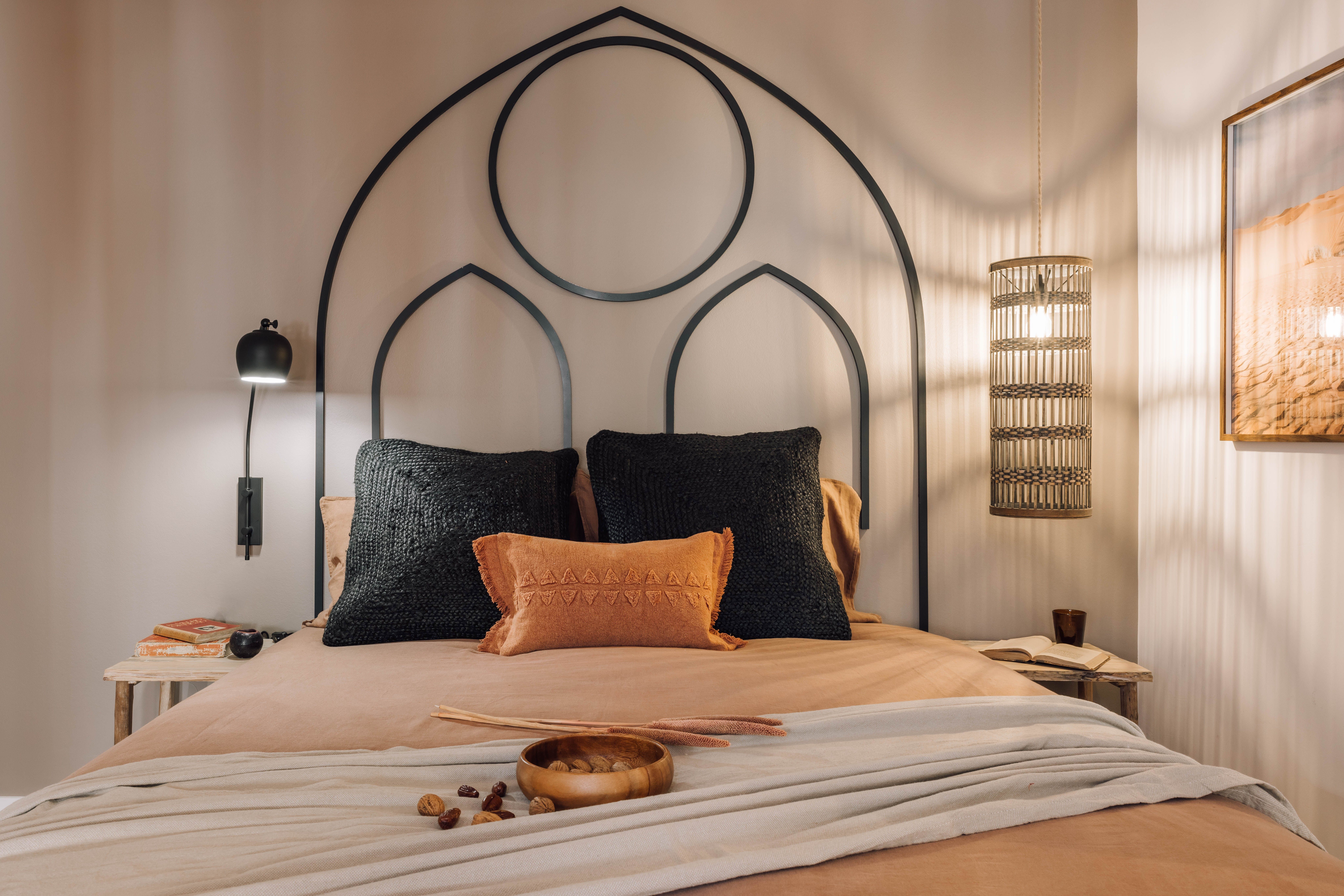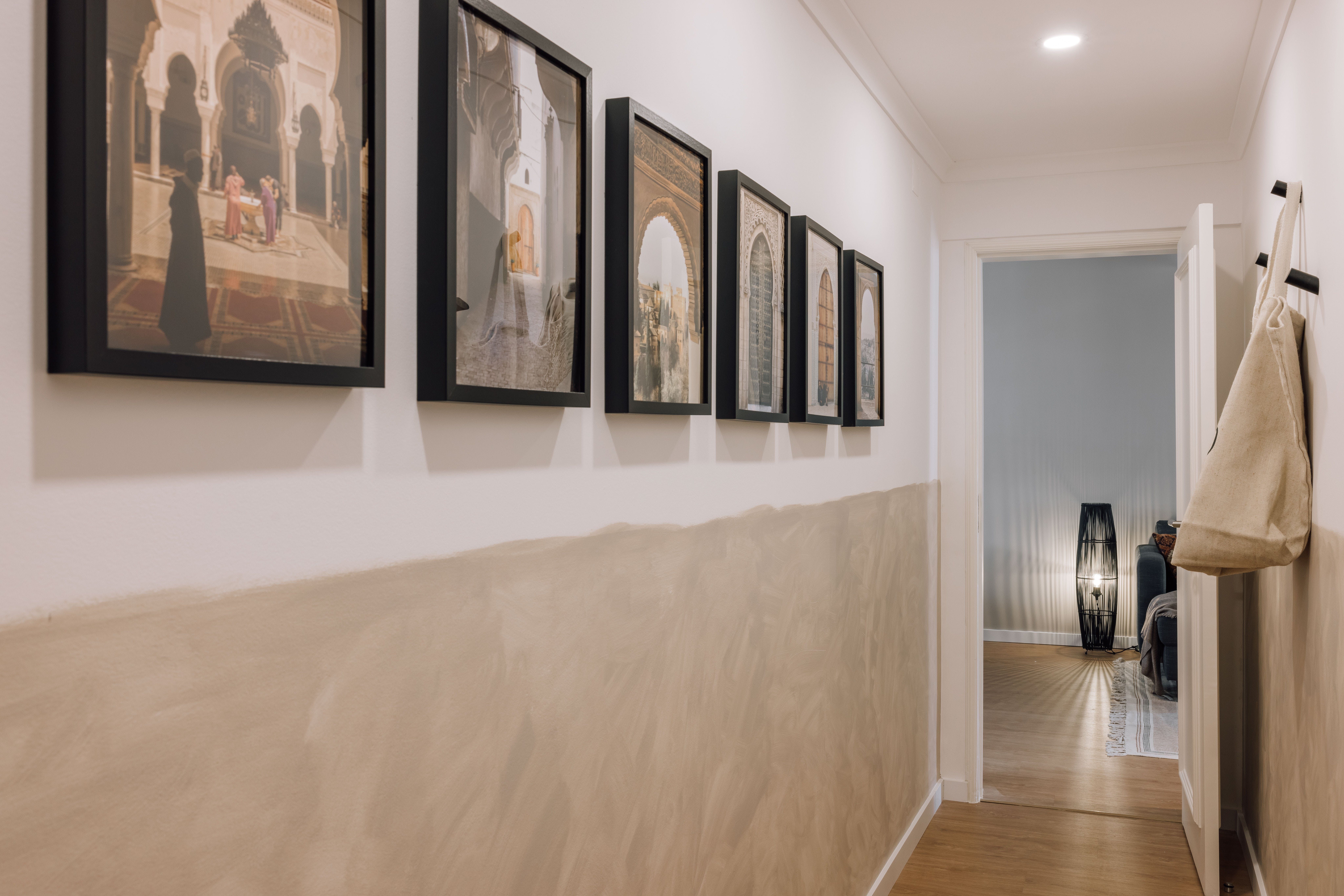 Although this apartment sits in the middle of Lisbon, you'll note that there are a lot of influences from the continent just across the Mediterranean Sea, be it the Arabian arches, the hieroglyphic scrolls or the potted cacti. At the same time, Scandi trends are also detectable in the wooden surfaces, mid-century furnishings and preference for clean lines.