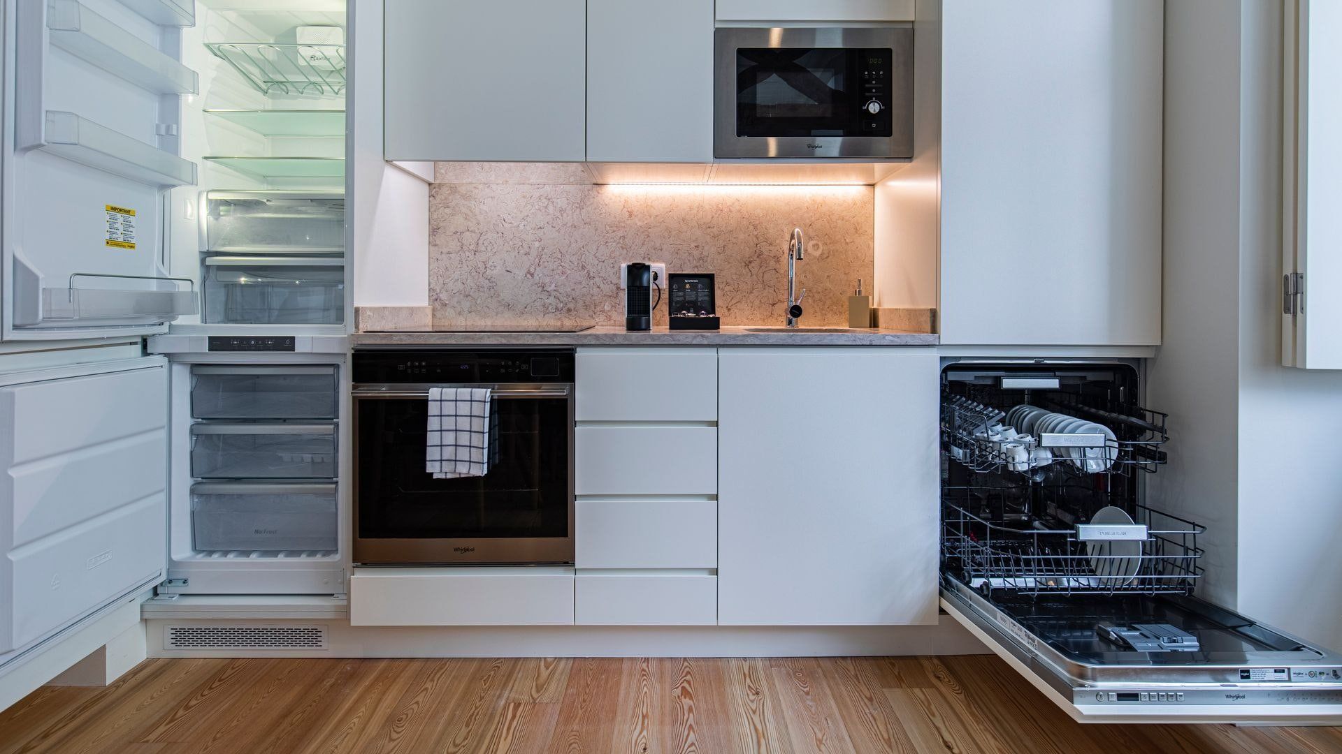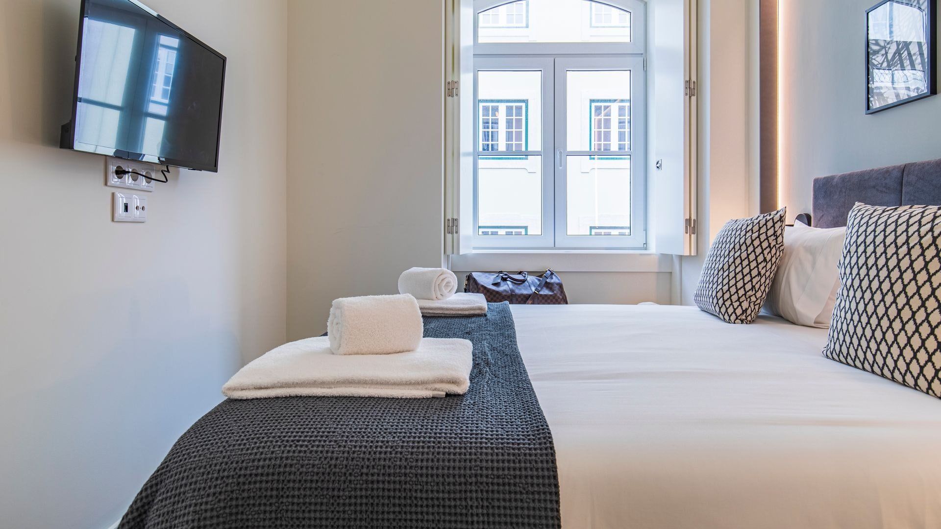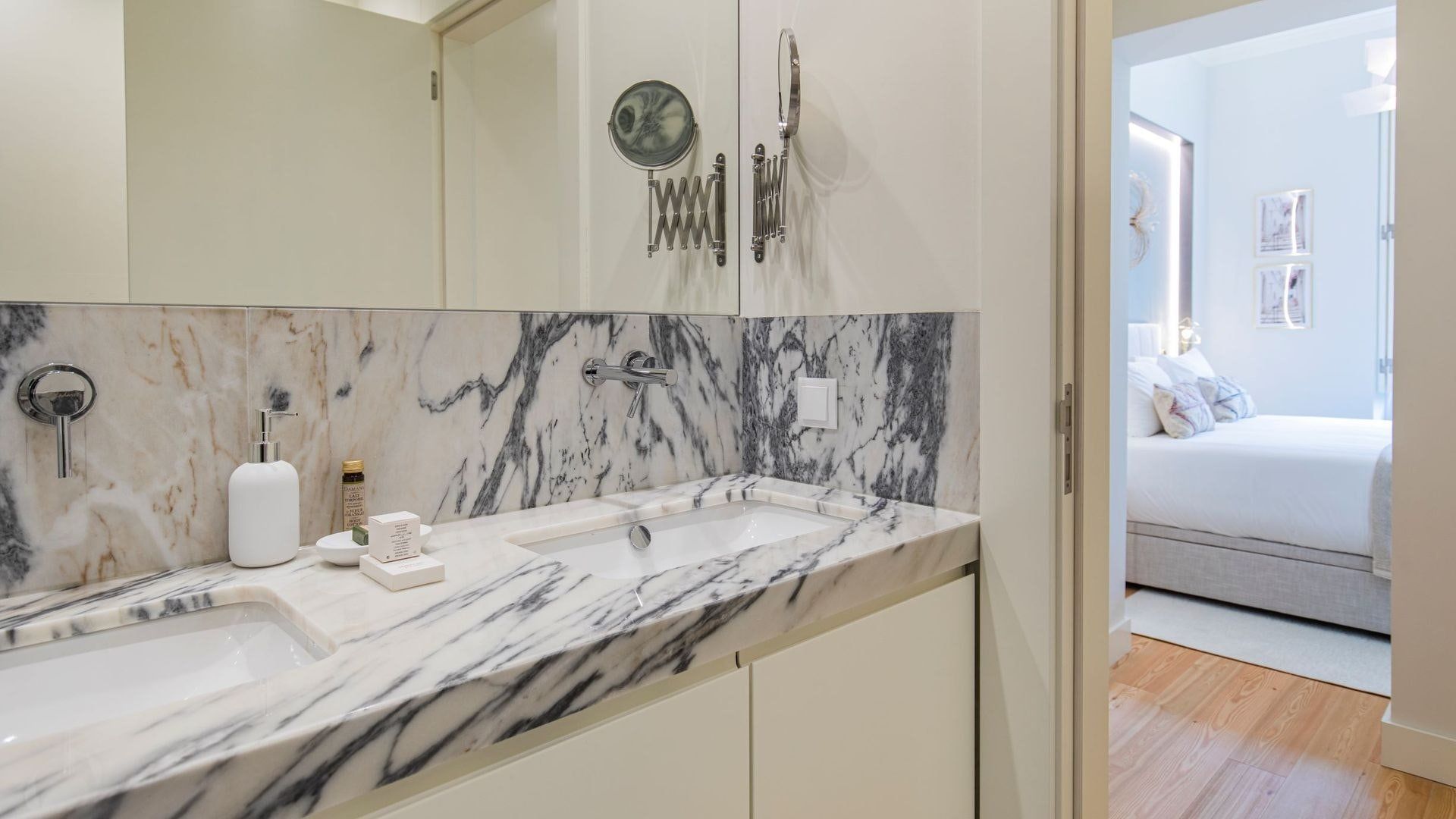 You'll find this home nestled in an elegant street of eighteenth-century Pombaline architecture. Inside, the apartment is newly renovated, despite its historic facade, and spread across one floor. Rooms are spacious and light-filled, flaunting stylish furniture and modern amenities. A palette of neutral tones cloaks both double bedrooms, made sweeter by their dreamy street views. There are three bathrooms, including a nifty powder room, and a washer and dryer.