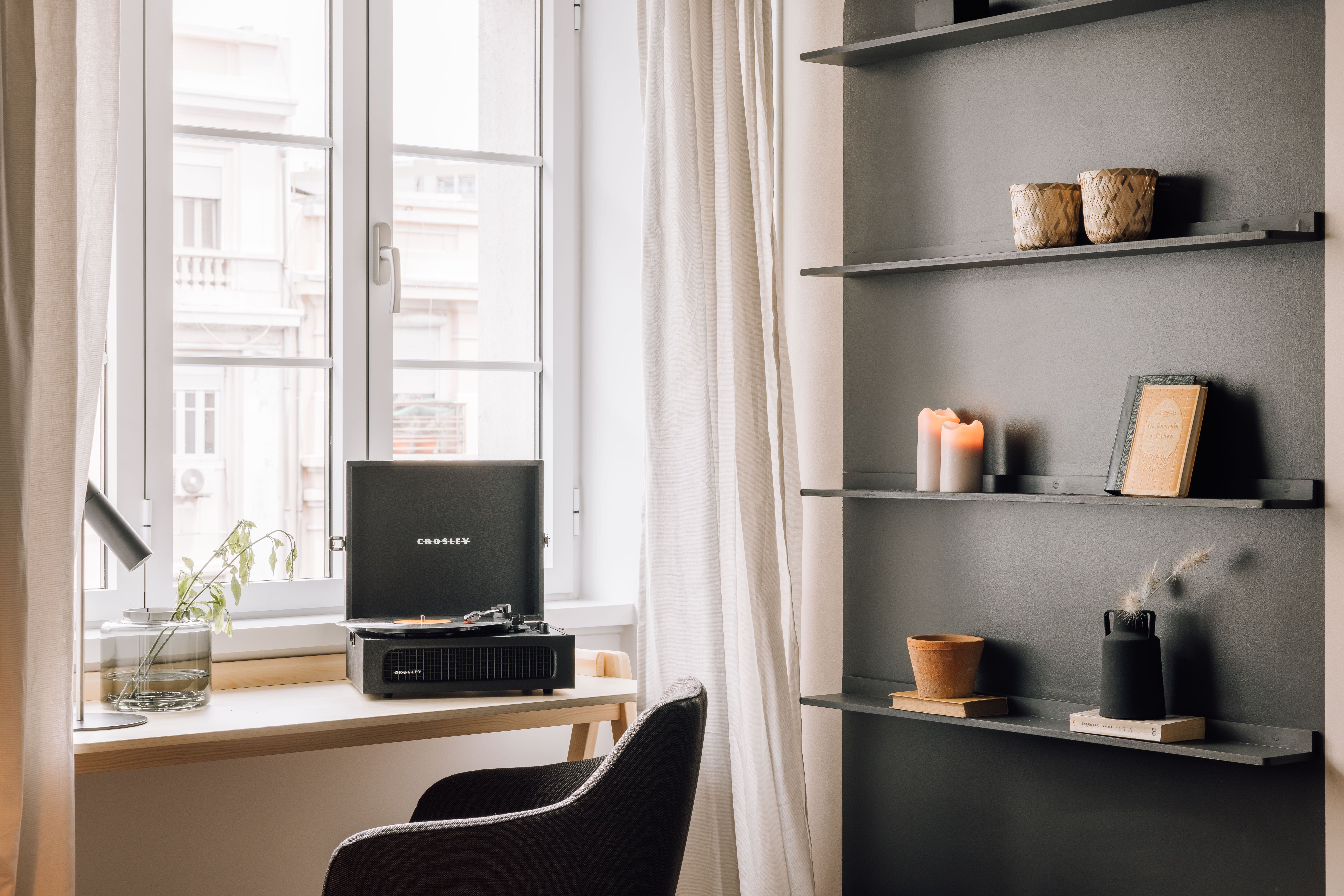 Step inside, and you'll find a serene space cloaked in soft, soothing tones. Pour a glass of wine, place a vinyl on the record player, and get comfortable on the sofa to enjoy this sanctuary. When you get hungry, you can whip up a feast in the kitchen – perhaps you'd like to try cooking a Portuguese favourite. And, if you need to catch up on some emails, brew a cup of coffee and head to the deskspace for a few hours of work.