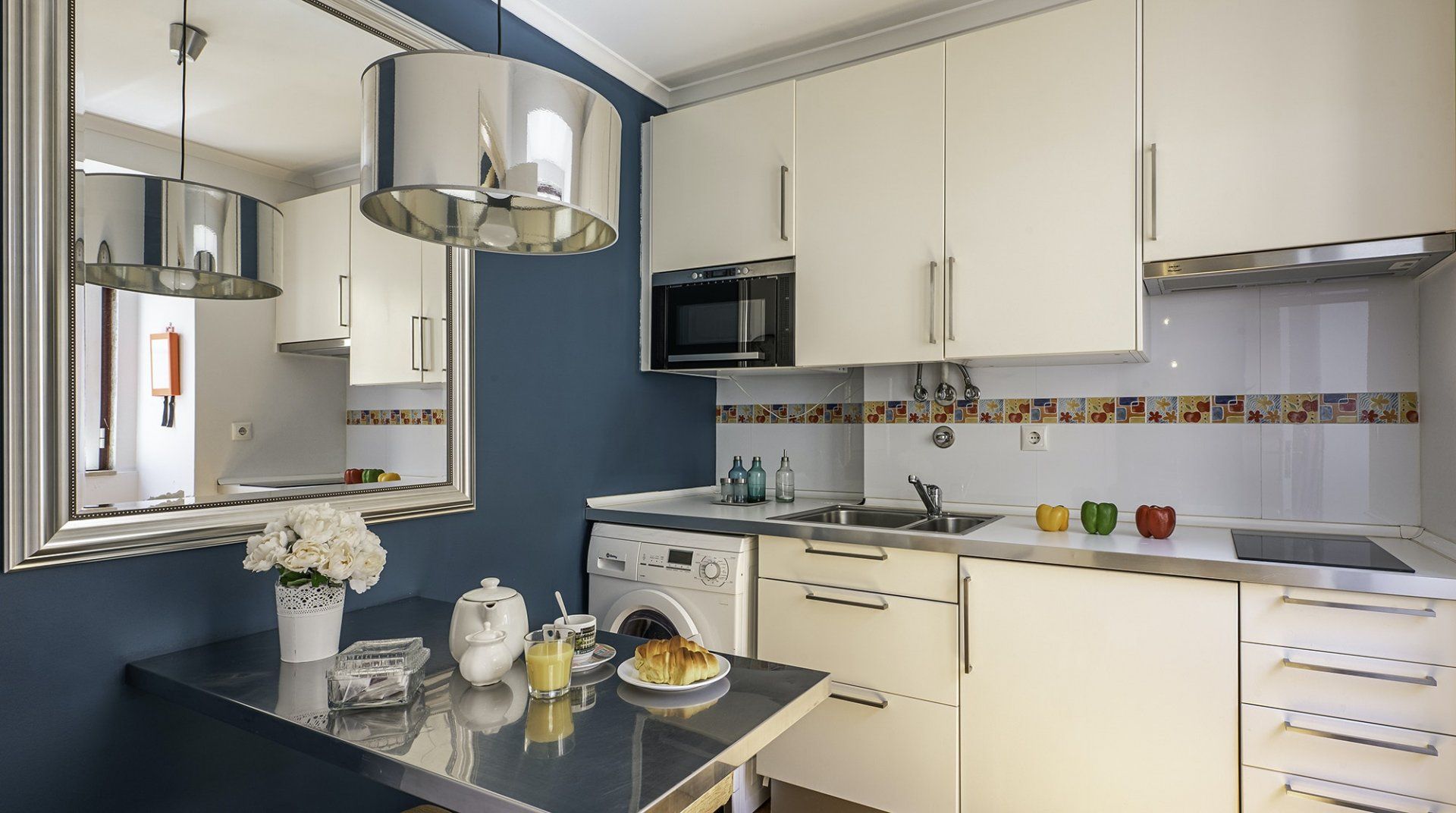 It might be small, but this home is filled with light and furnished with style. In between the teal walls and hardwood furniture, the hosts' love for baroque details is revealed in the form of vignettes that bring the living room to life. Located in the residential São Vicente, you'll only be a short walk away from the medieval Alfama and São Vicente de Fora Monastery.