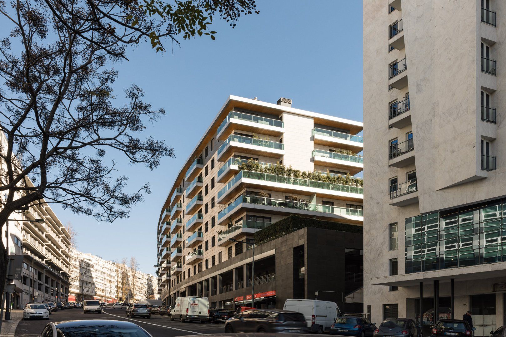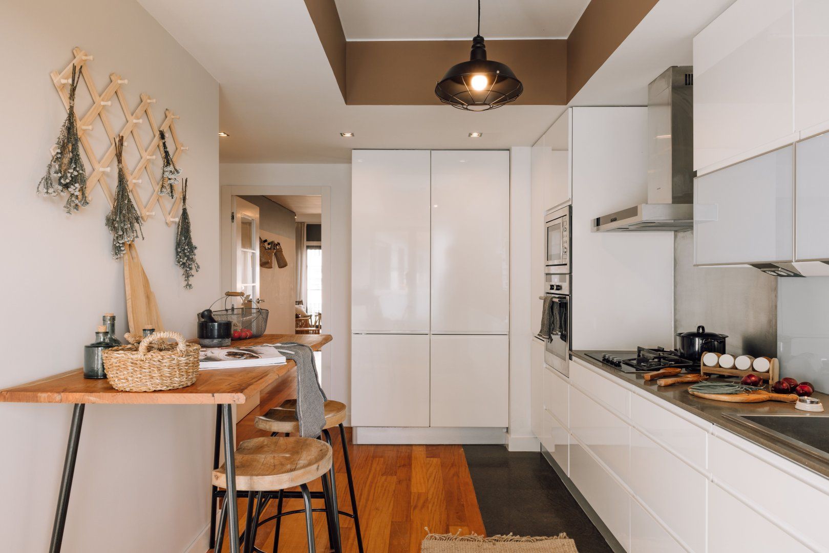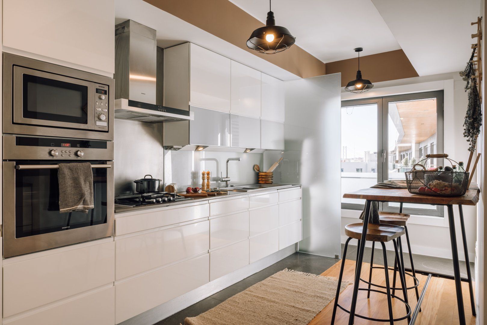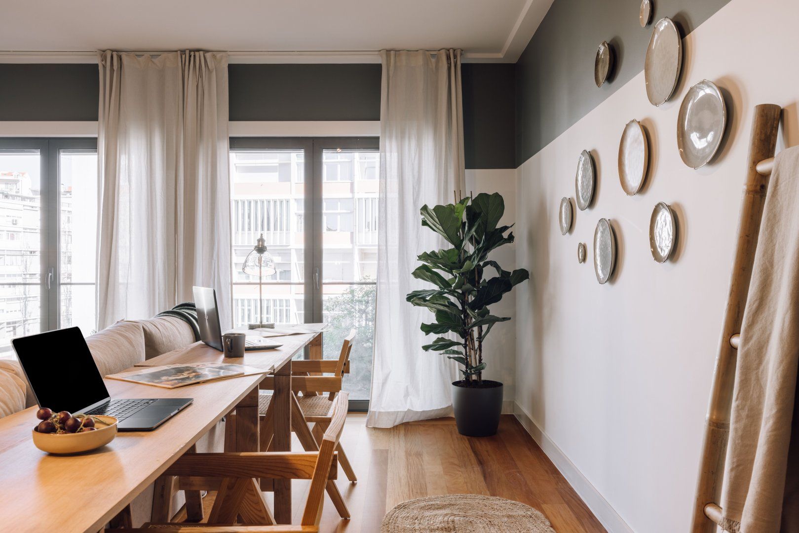 This attractive apartment is a dreamy base in Lisbon. It’s in the residential neighbourhood of Lapa, which is at the centre of lots of green spaces. The home itself is pretty and green, too, with lots of plants and woven grass decor. The apartment’s large glass doors open onto a Juliet balcony, making the space feel even more bright and welcoming. Best of all, you’ll have access to a communal swimming pool and gym.