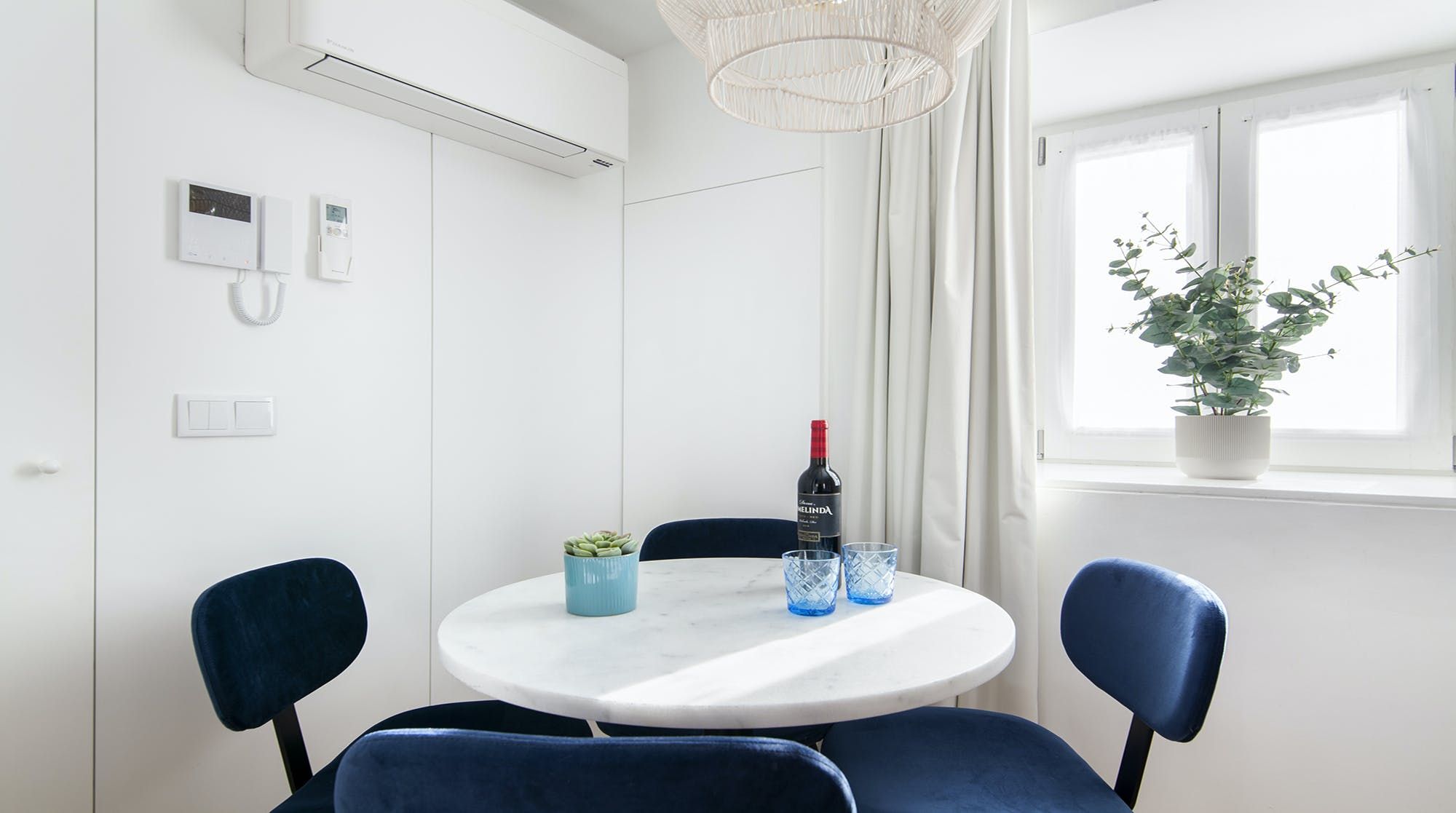 If you want to stay in the heart of Lisbon's charming old town, then this apartment is a great choice. It's a petite home located in a 200-year-old building that has been meticulously updated to please modern travellers. The ingenious use of space means that this studio has room for a dining table, kitchen, and a hangout spot by the window. There's even a tiny balcony offering incredible views across the orange rooftops of Alfama right over to the River Tagus. Outside, you can explore this neighbourhood's famously winding streets. It still feels very much like a village, and getting lost in the alleyways is part of the fun – that's how you find the best local restaurants and bars. The Sé Cathedral is only a ten-minute walk away, and three more minutes will bring you to Praça do Comércio. Don't forget to take a ride on one of the iconic streetcars too – there are several stops just a few minutes walk away.
