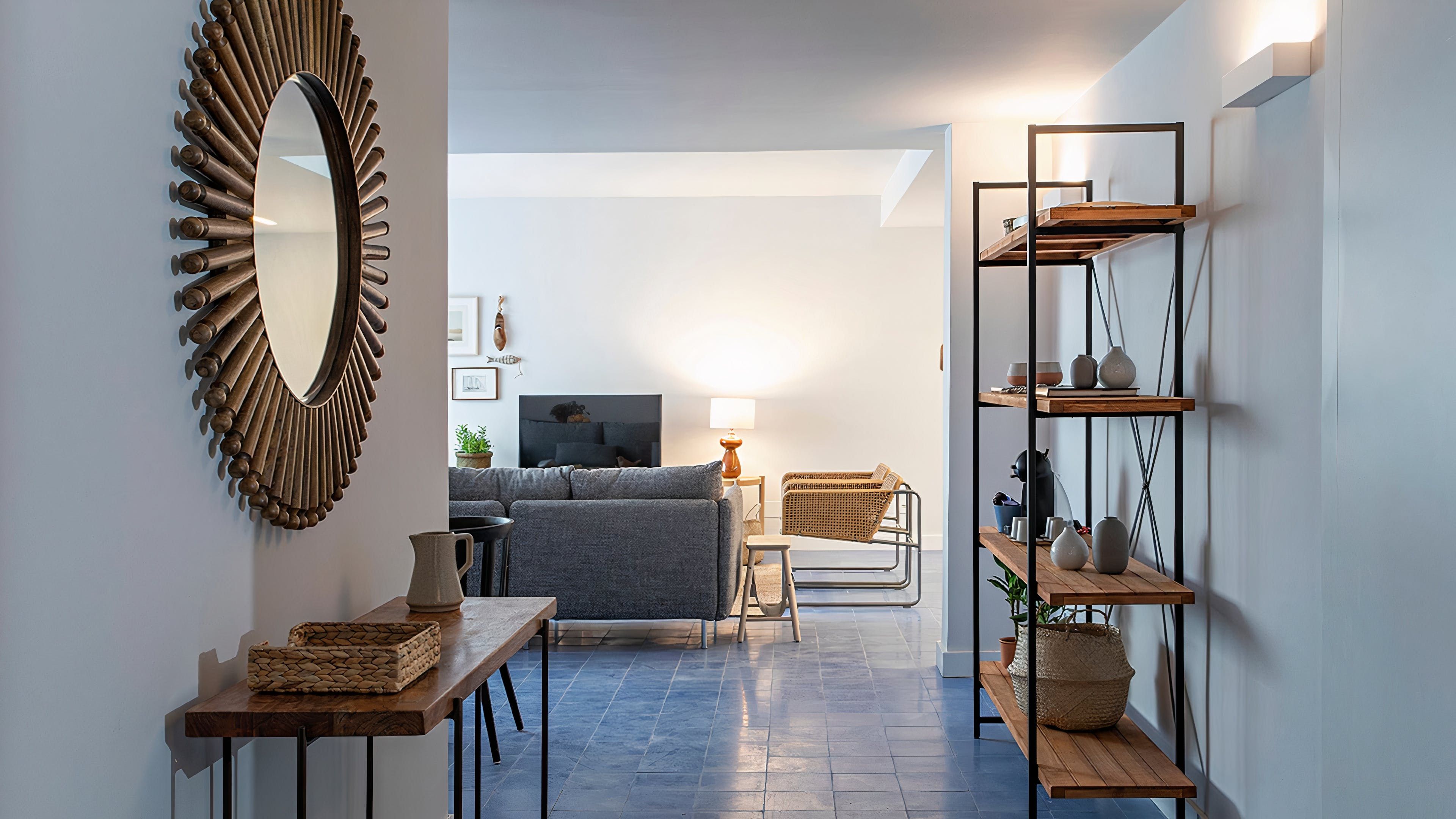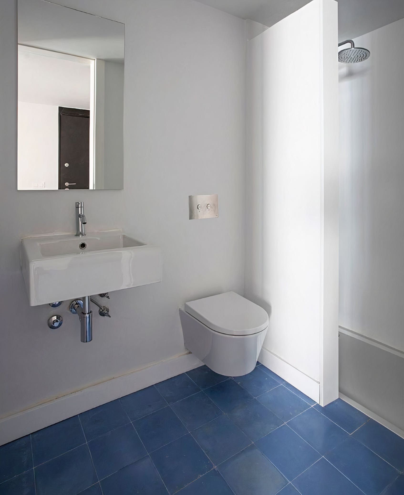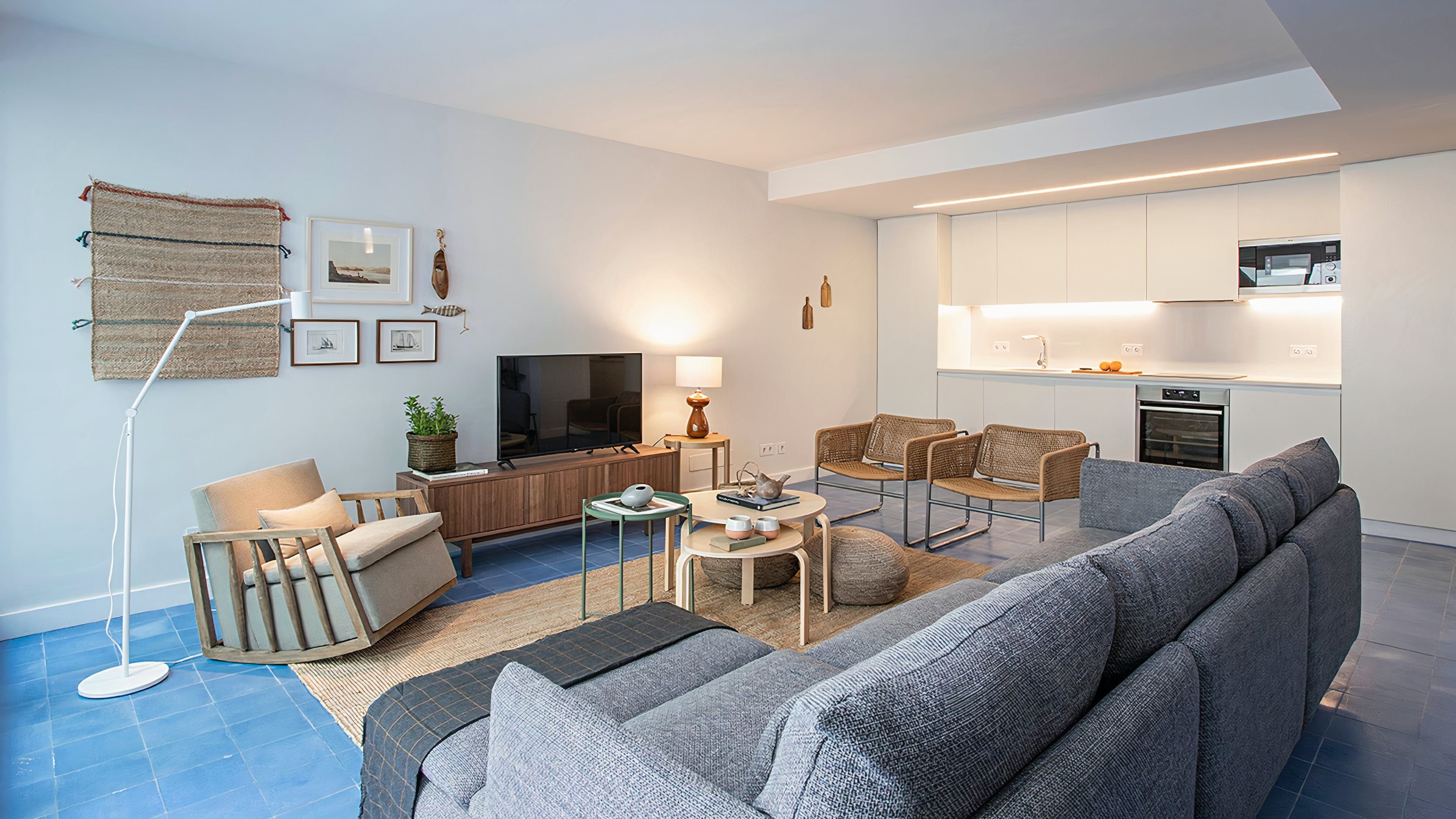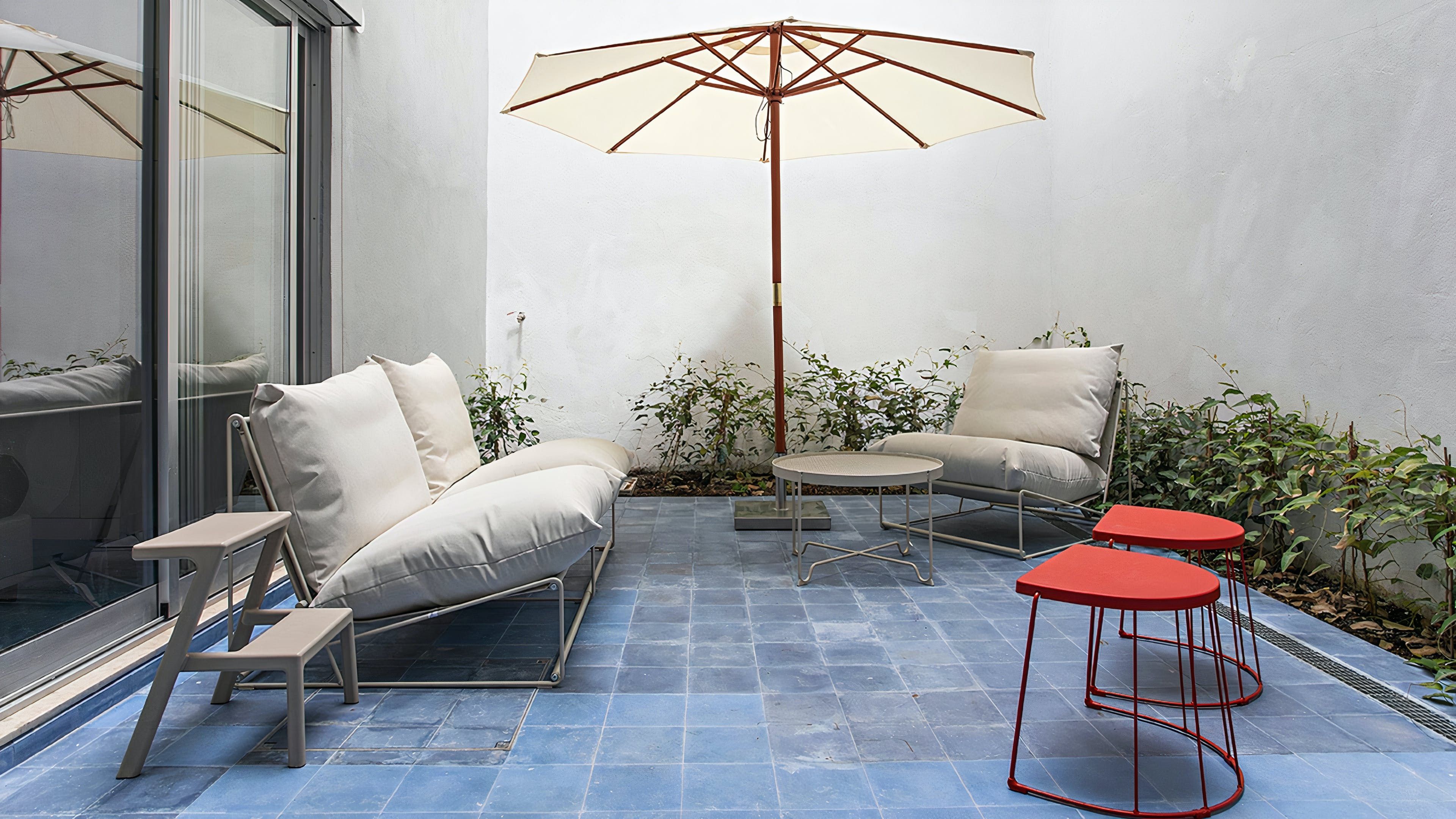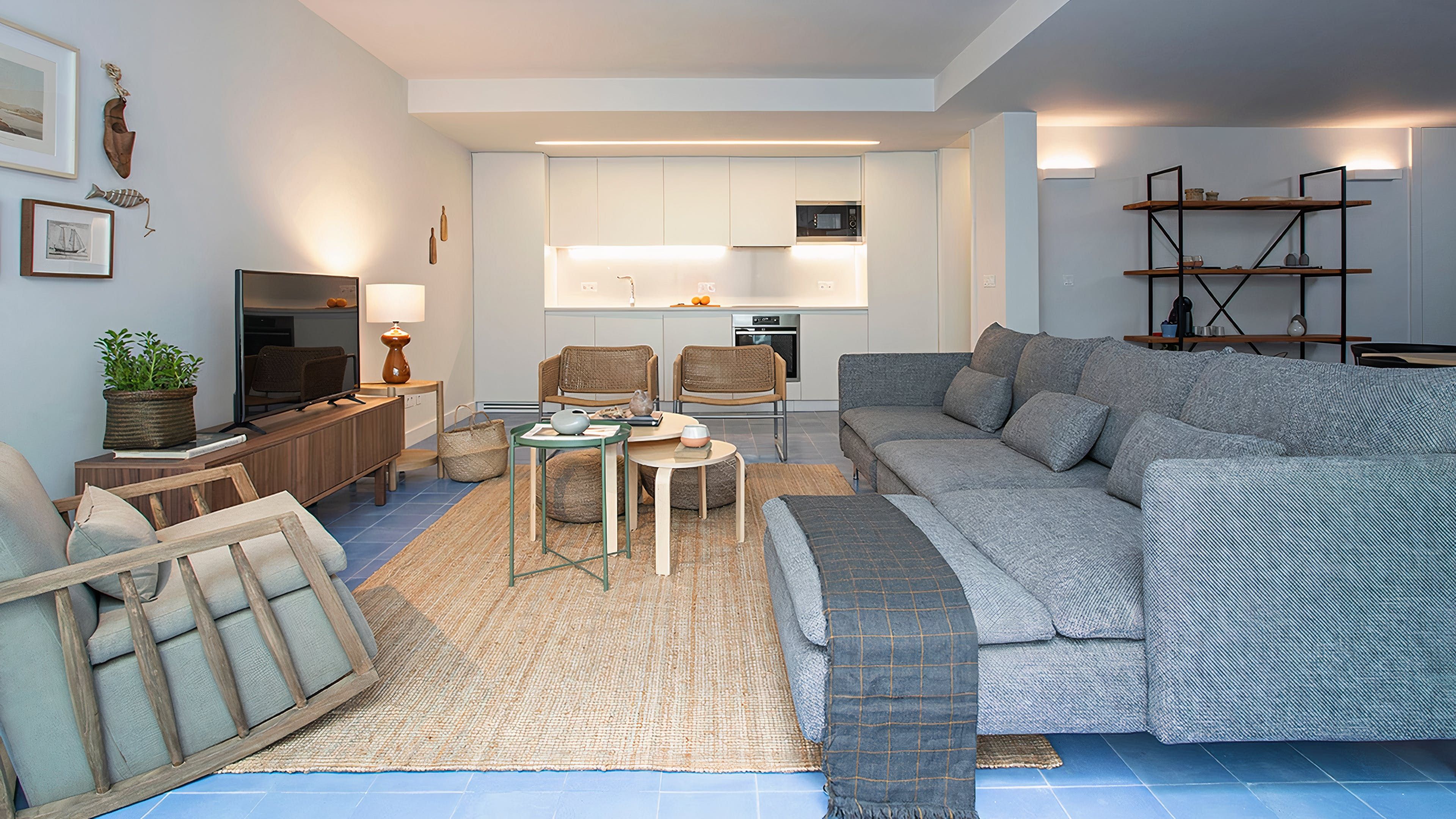 Over in the bedrooms, the designers have kept the spaces pared-back and contemporary – with just those Portuguese ceramic floor tiles adding a pop of colour and beautifully mirroring the blue skies outside. We'll let you decide who lucks out on that king-size bedroom with en-suite and direct access to the pretty courtyard.