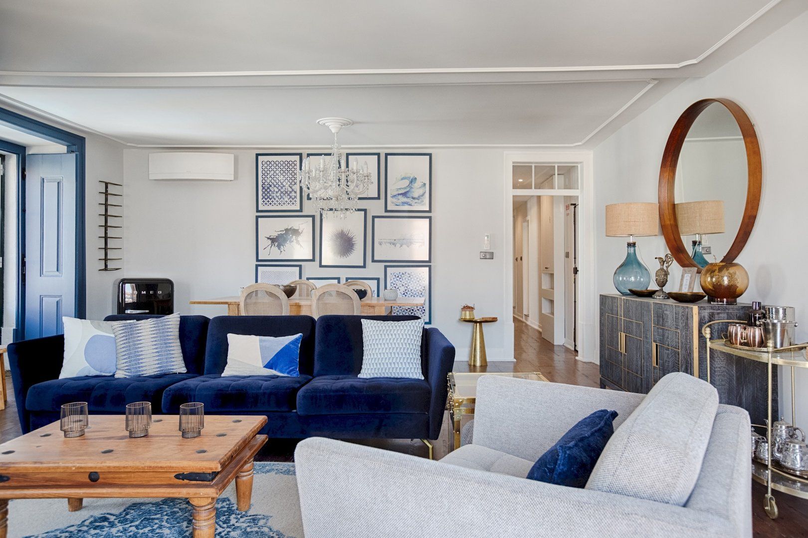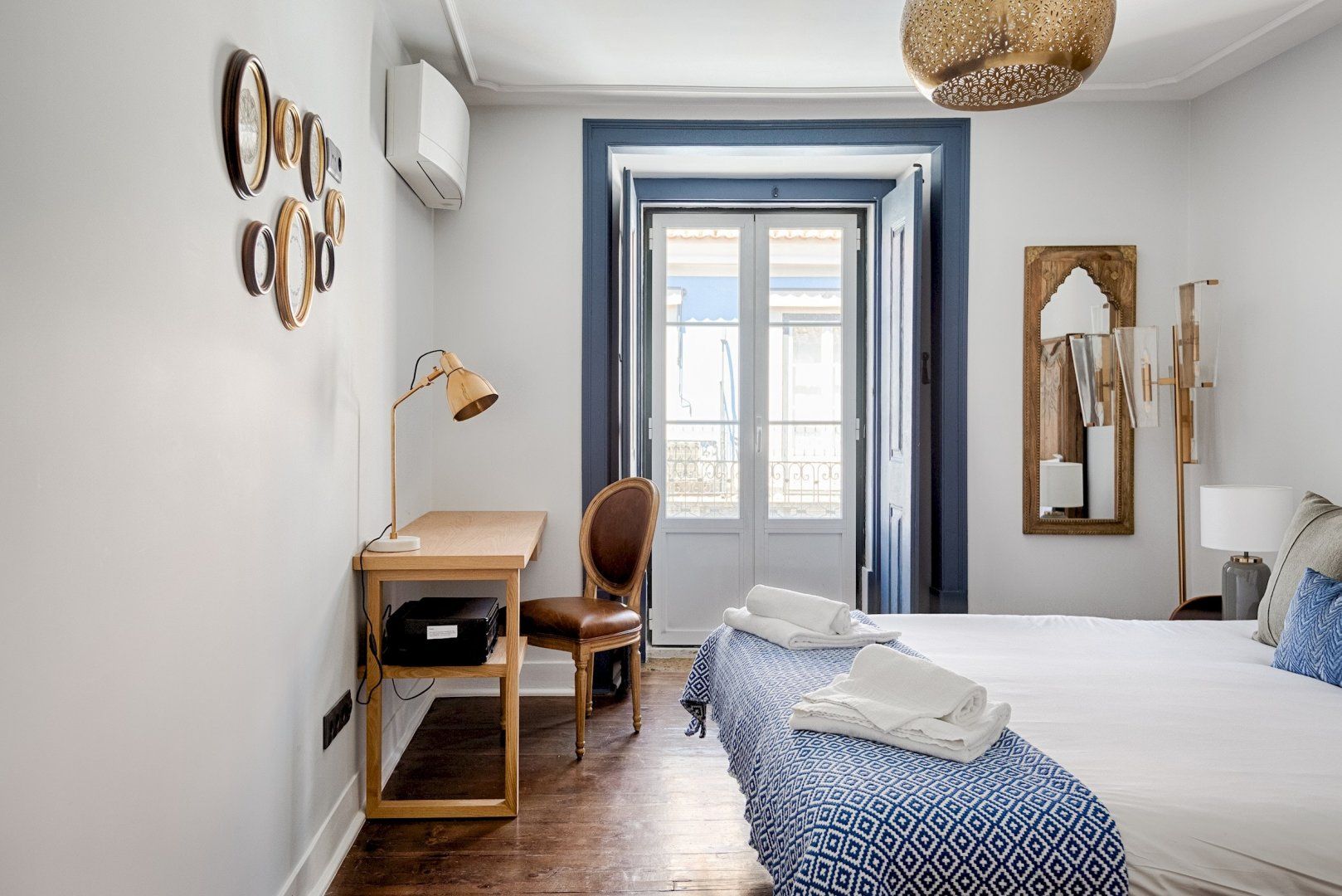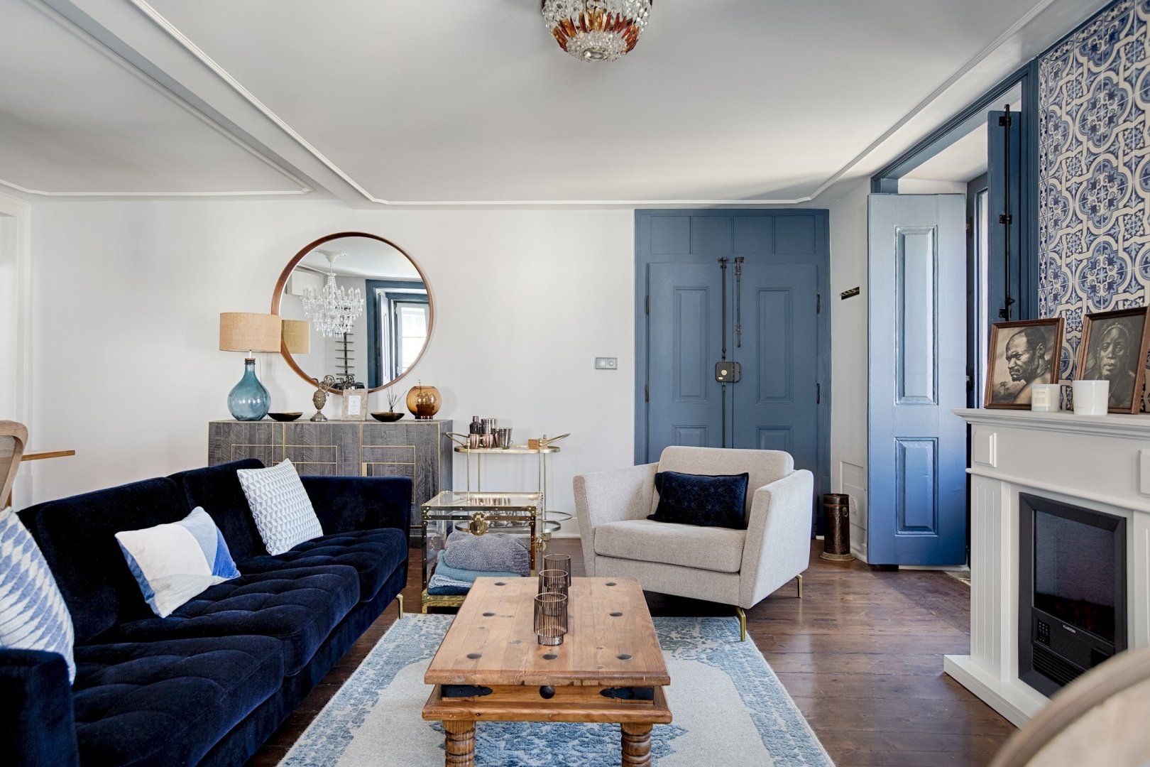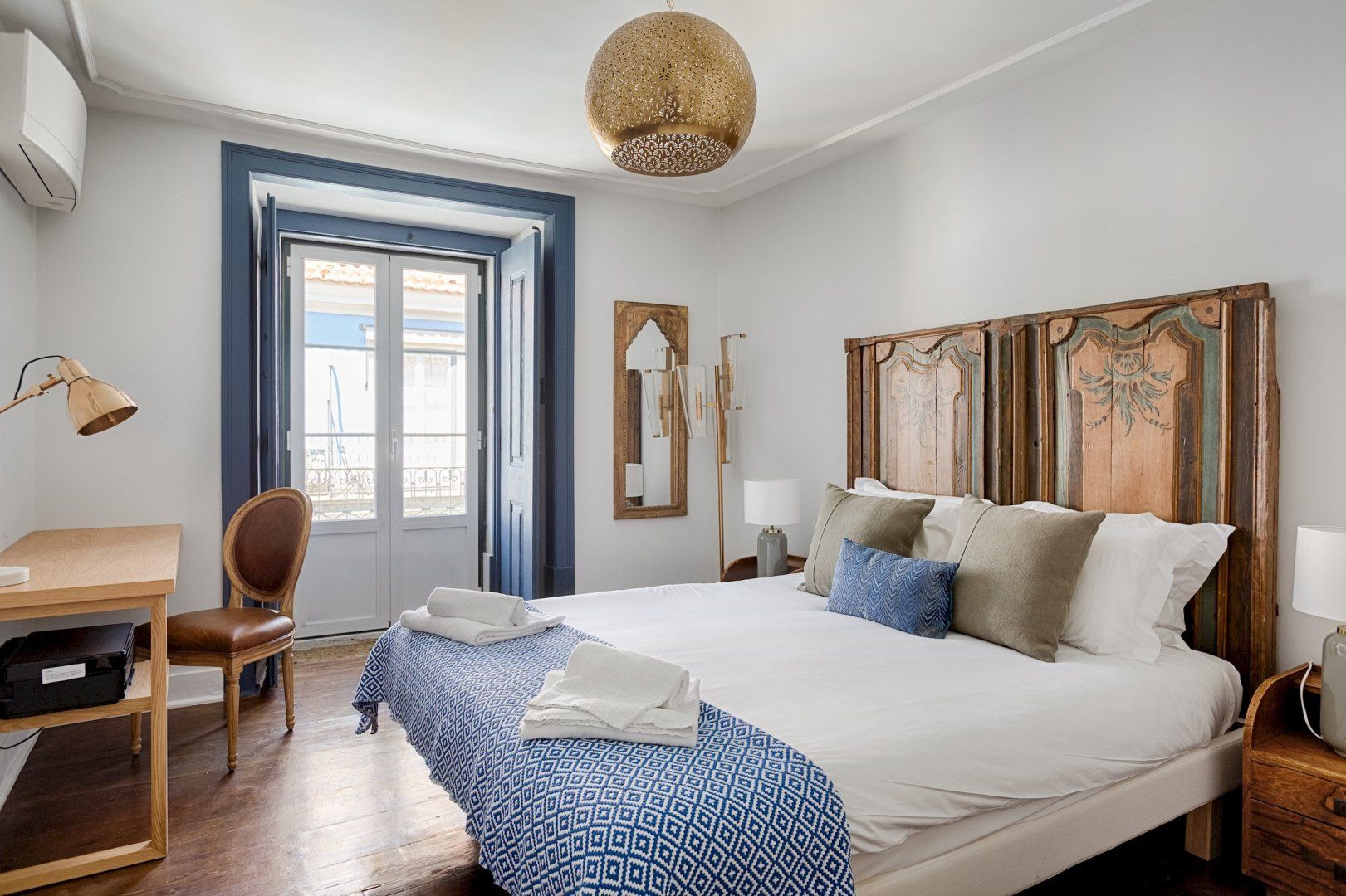 Perch by the living room’s Juliet balconies with your morning coffee as you watch the hustle and bustle of Baixa life below, or gather together at the elegant dining table for an evening banquet while the city lights twinkle just outside. We love the decorative details – from the intricate fireplace to the azulejo wallpaper, dazzling chandelier, and beautiful blue-coloured velvet sofa. The bedrooms are just as light, with dedicated desk spaces for those visiting on business, and there's even a swanky freestanding tub to soak in at the end of a long day spent sightseeing.