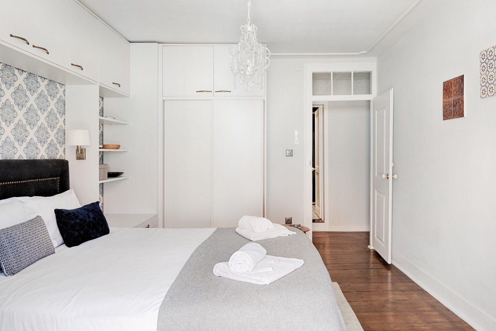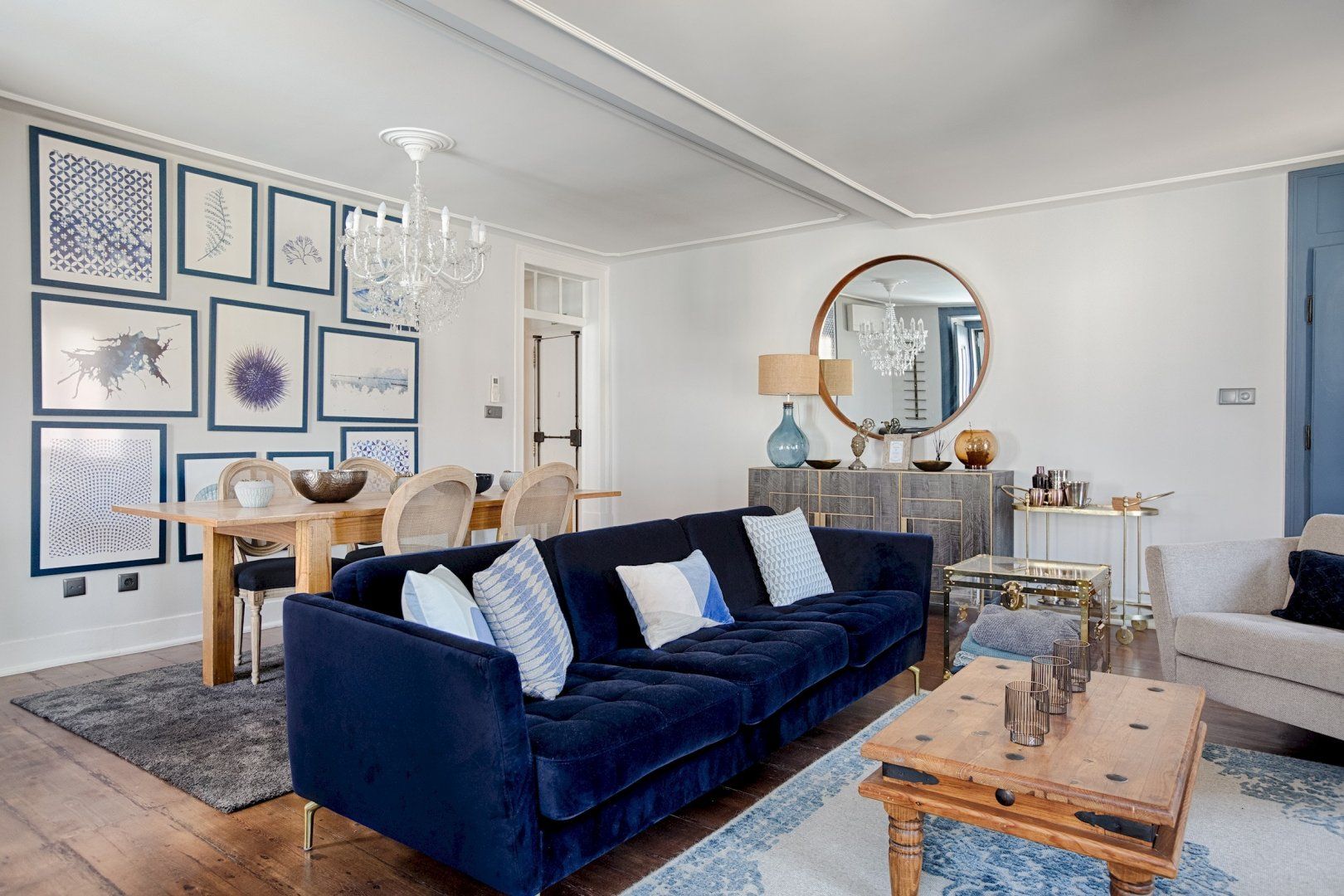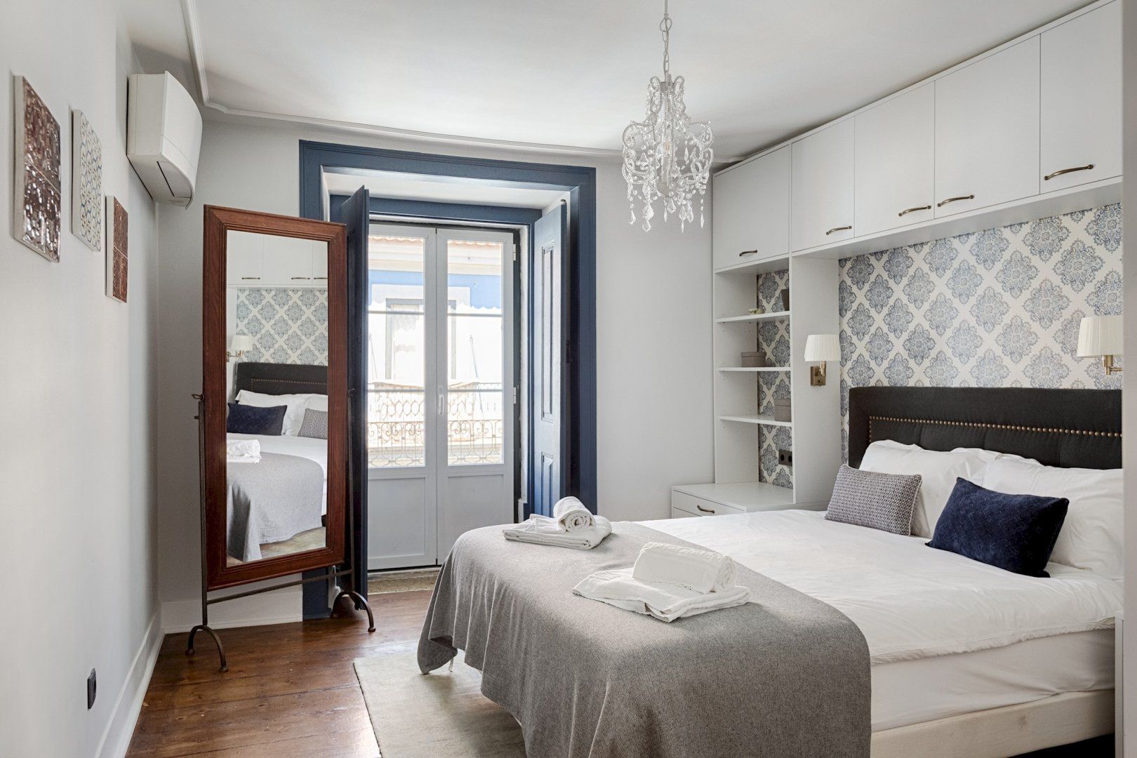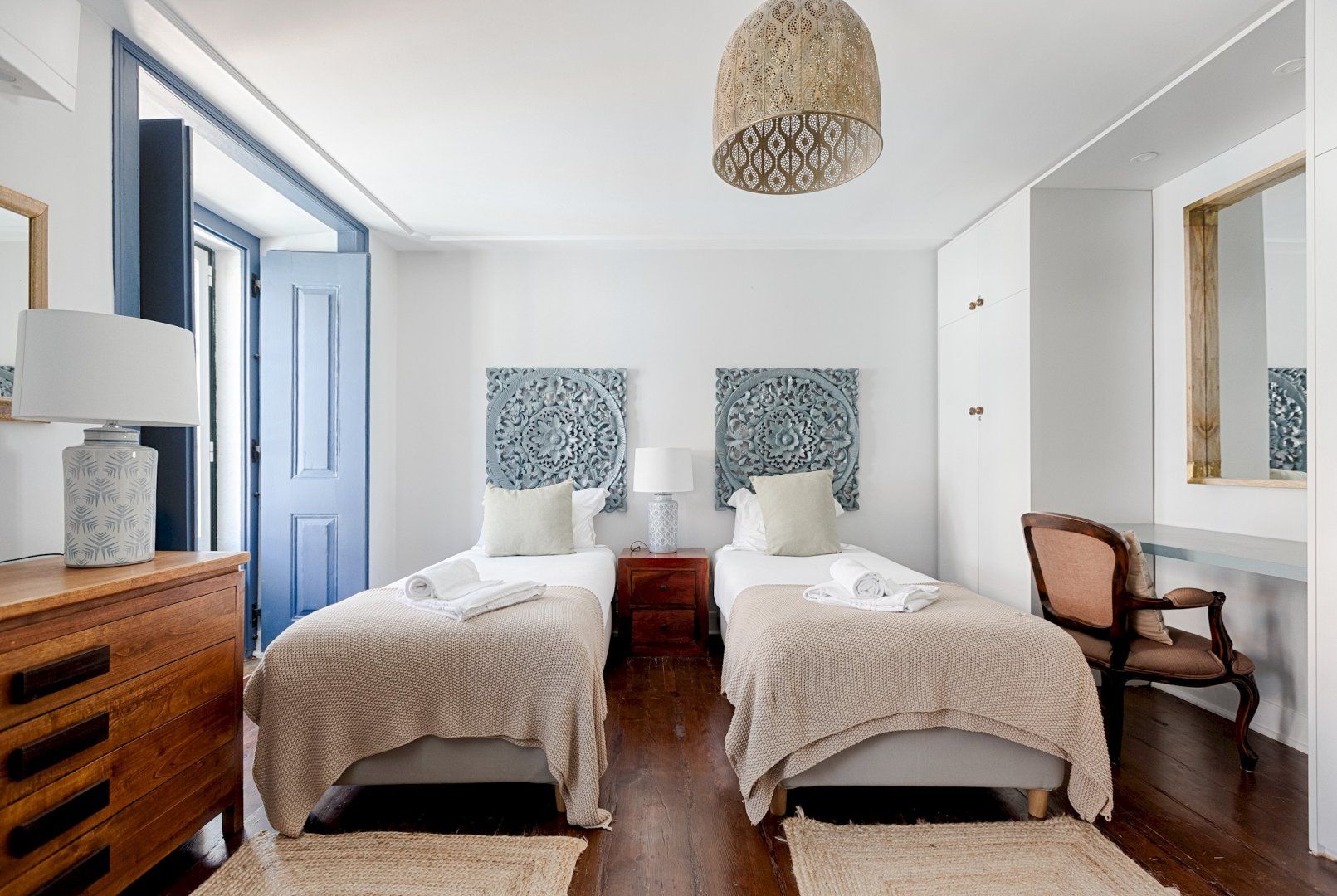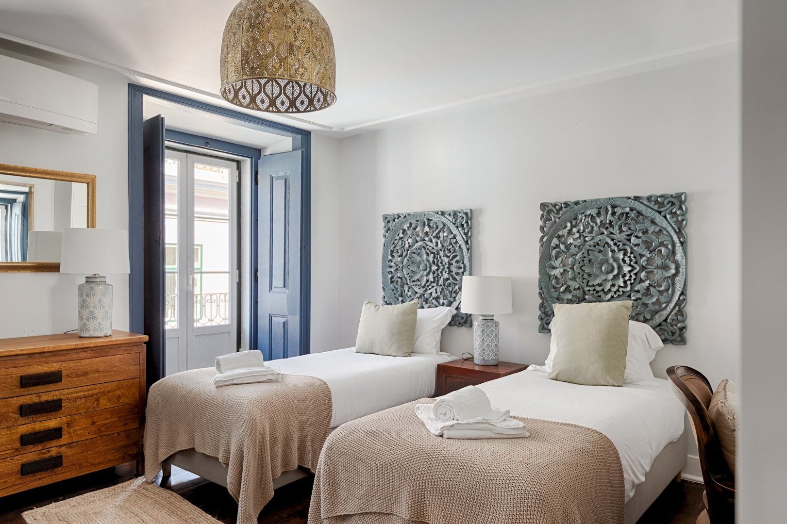Perch by the living room’s Juliet balconies with your morning coffee as you watch the hustle and bustle of Baixa life below, or gather together at the elegant dining table for an evening banquet while the city lights twinkle just outside. We love the decorative details – from the intricate fireplace to the azulejo wallpaper, dazzling chandelier, and beautiful blue-coloured velvet sofa. The bedrooms are just as light, with dedicated desk spaces for those visiting on business, and there's even a swanky freestanding tub to soak in at the end of a long day spent sightseeing.