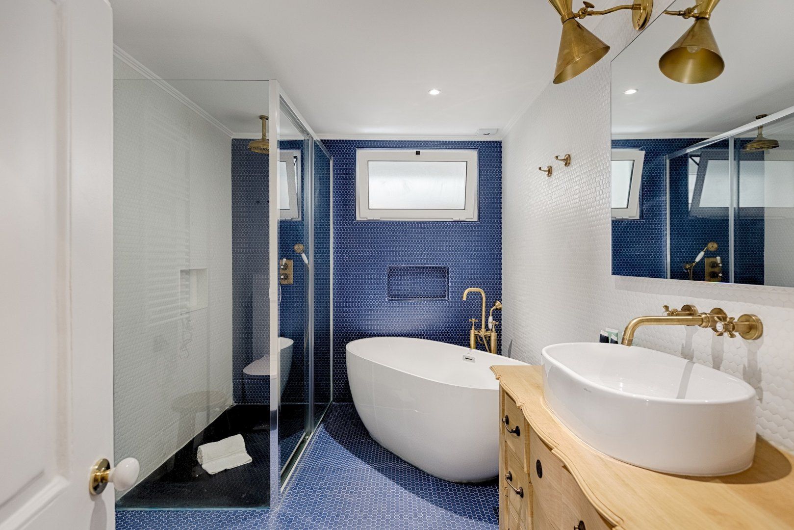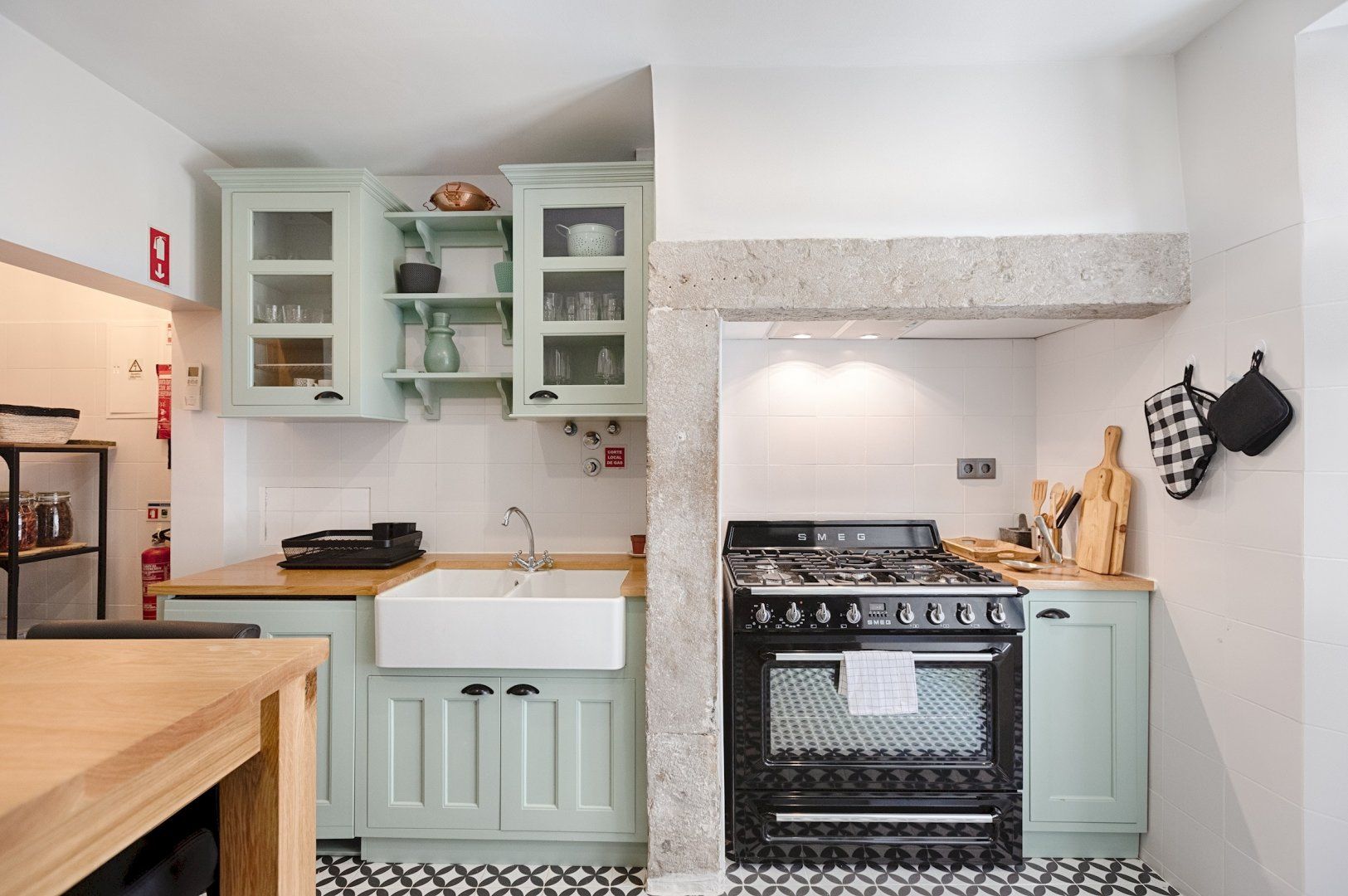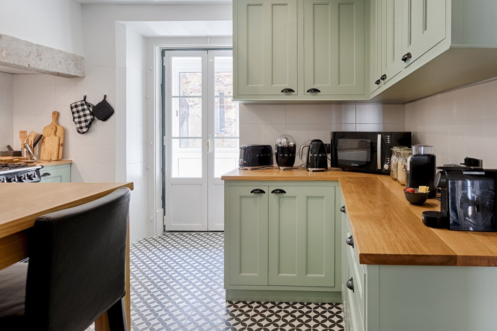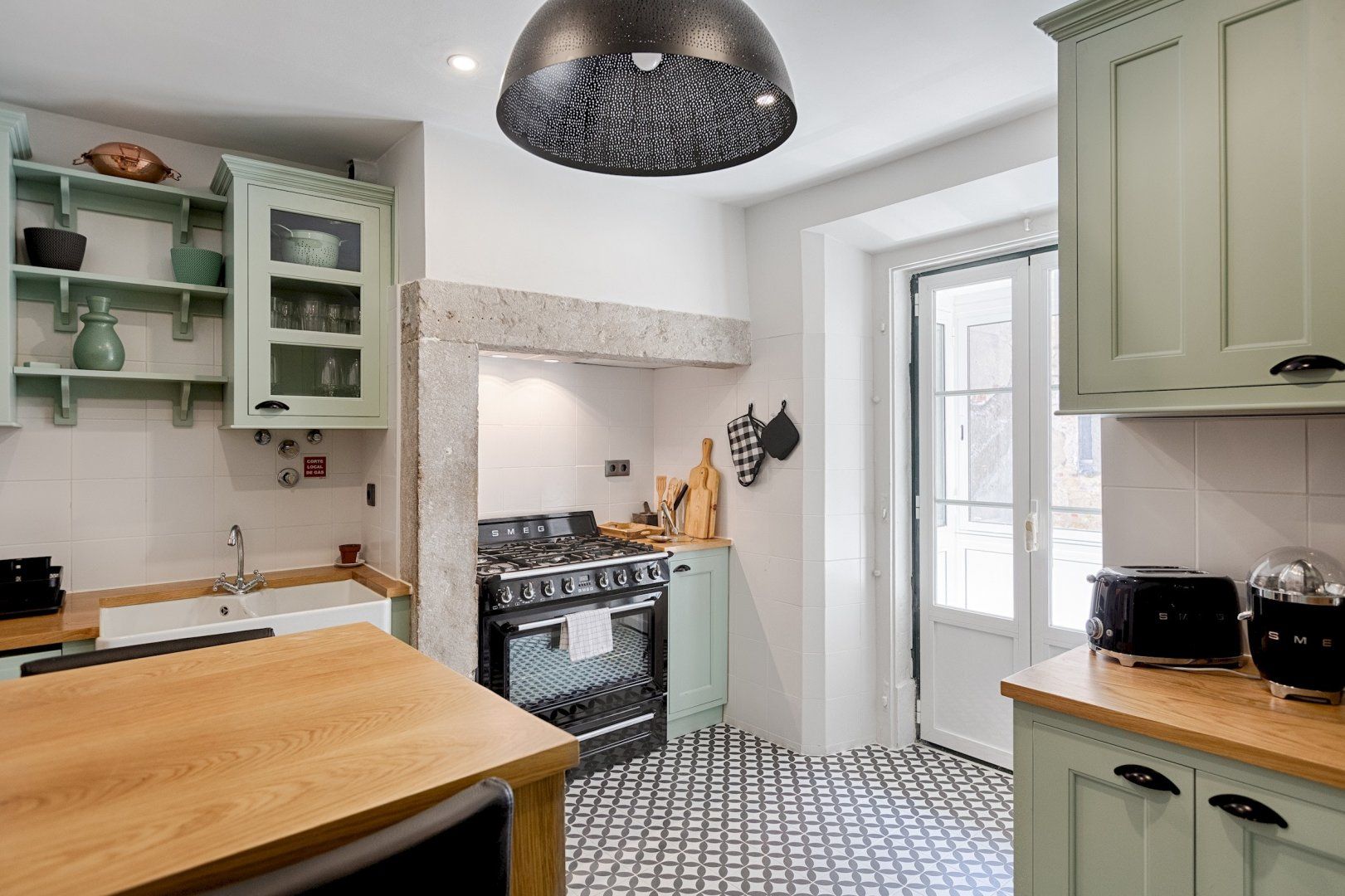 Perch by the living room’s Juliet balconies with your morning coffee as you watch the hustle and bustle of Baixa life below, or gather together at the elegant dining table for an evening banquet while the city lights twinkle just outside. We love the decorative details – from the intricate fireplace to the azulejo wallpaper, dazzling chandelier, and beautiful blue-coloured velvet sofa. The bedrooms are just as light, with dedicated desk spaces for those visiting on business, and there's even a swanky freestanding tub to soak in at the end of a long day spent sightseeing.