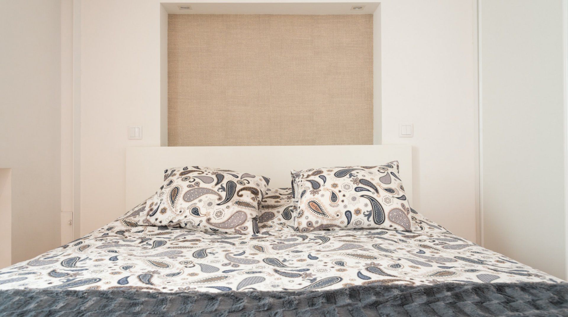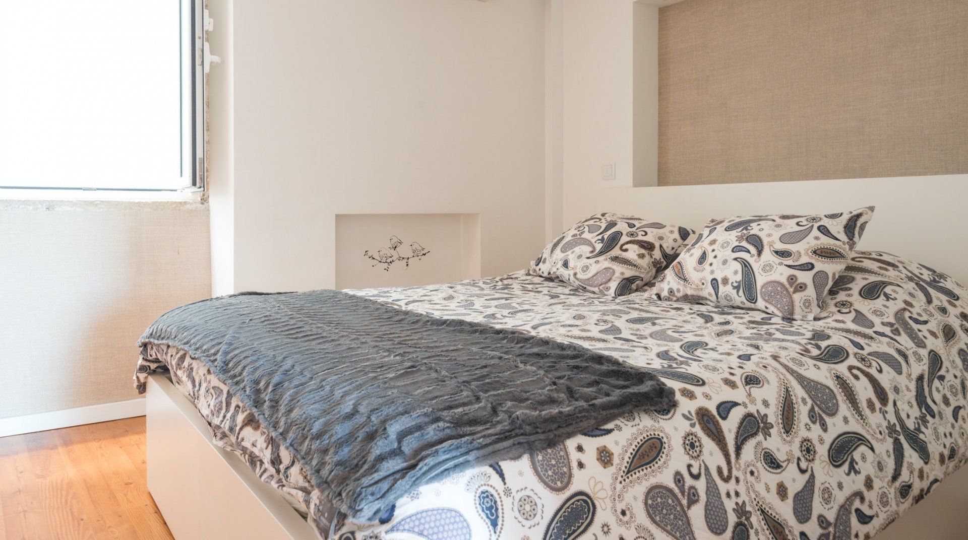 *The bedroom window overlooks a narrow space between buildings – there's not much light coming in and no view