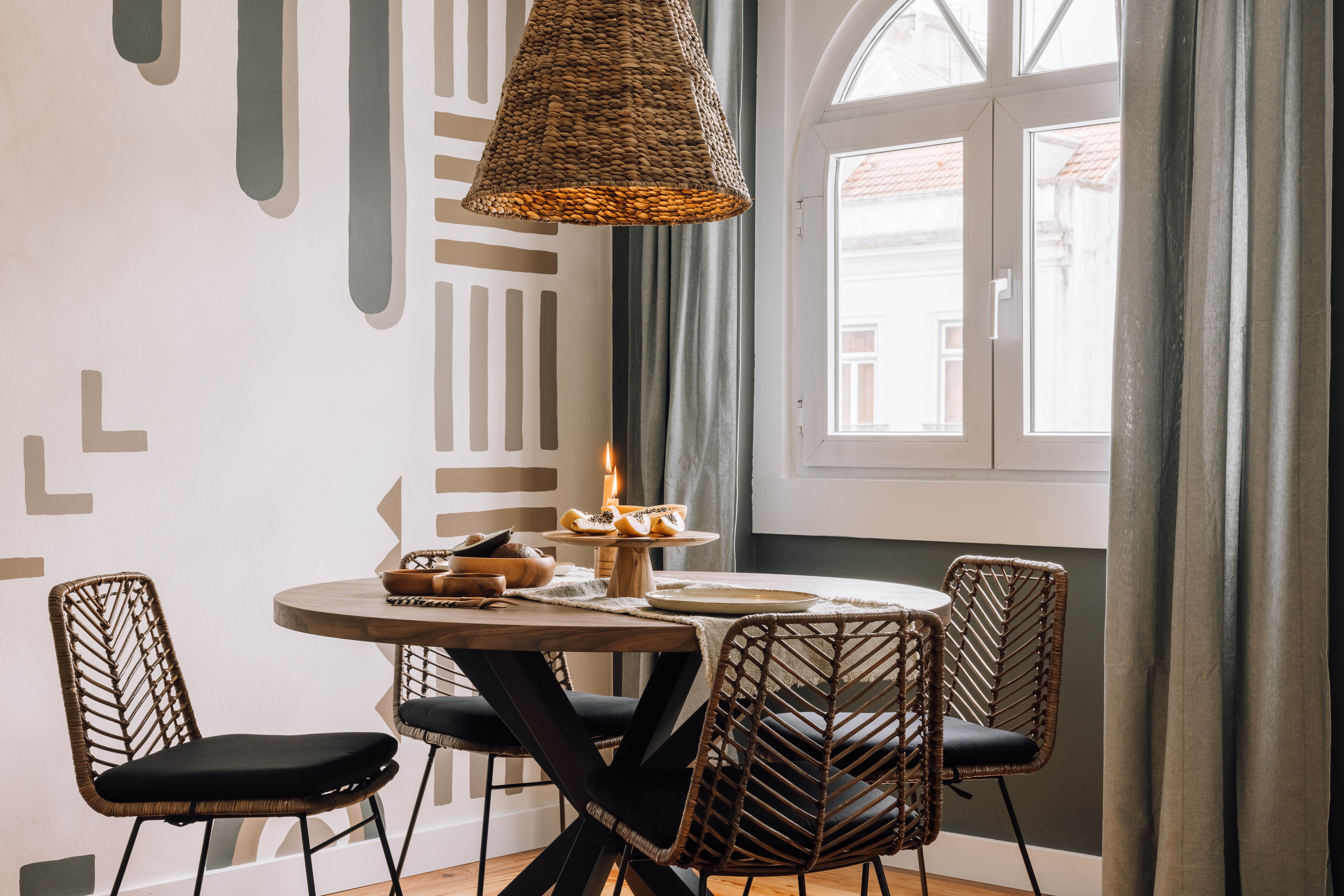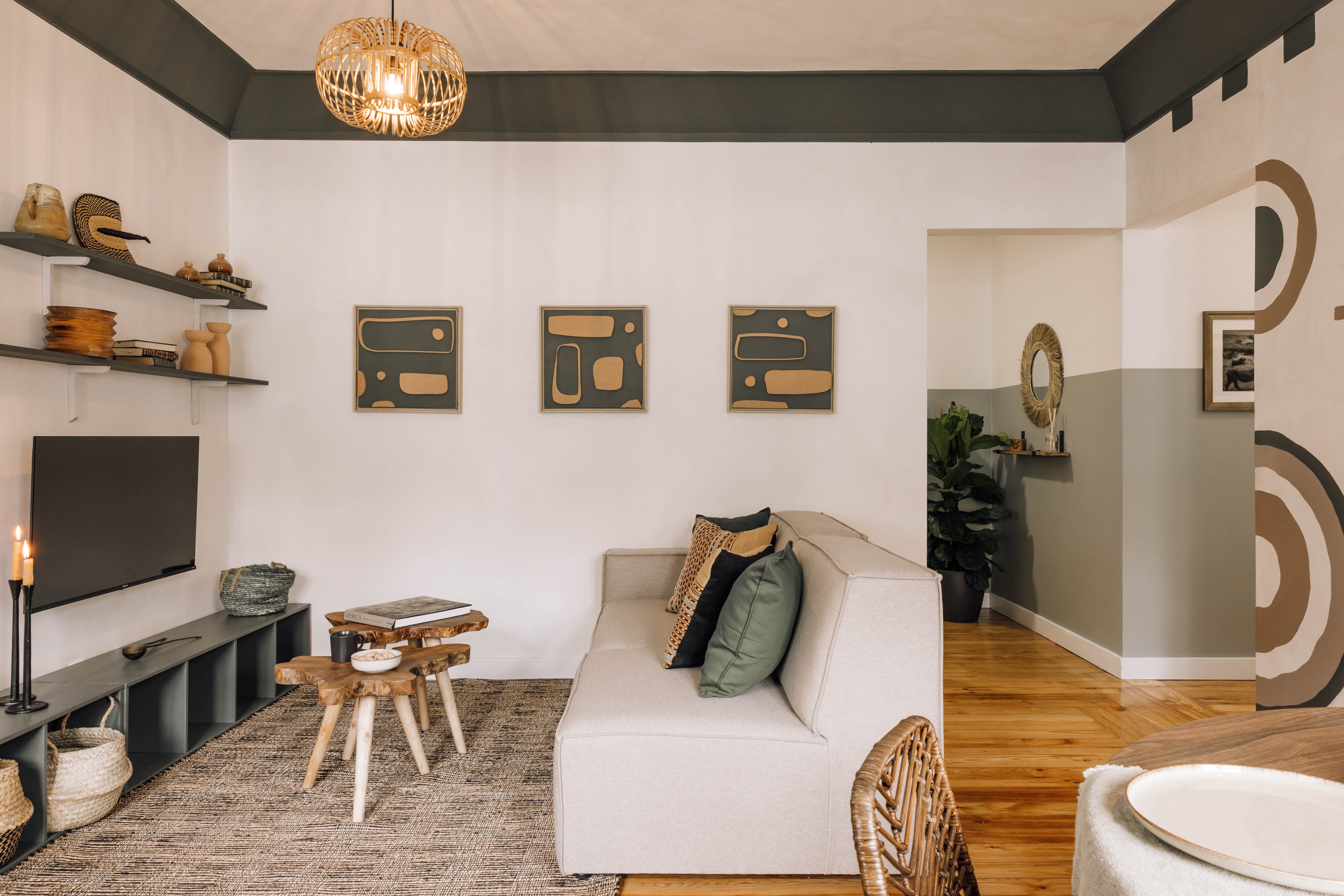 Situated in Lisbon’s upmarket Santo António neighbourhood, this jungle-inspired apartment is an oasis of calm in the midst of the city. Inside, carefully curated rooms are illuminated by large windows. The leafy houseplants add a fresh feel while the playful prints make an impact against moody grey accents. After waking up in the serene bedrooms, put together a traditional Portuguese breakfast in the sleek kitchen and dine all together in the open-concept living space.