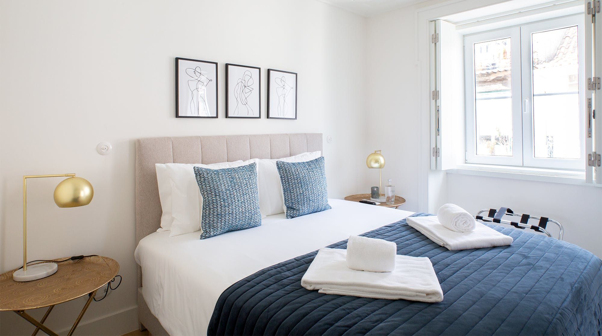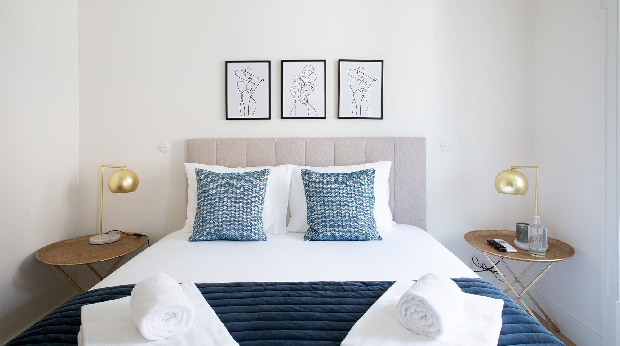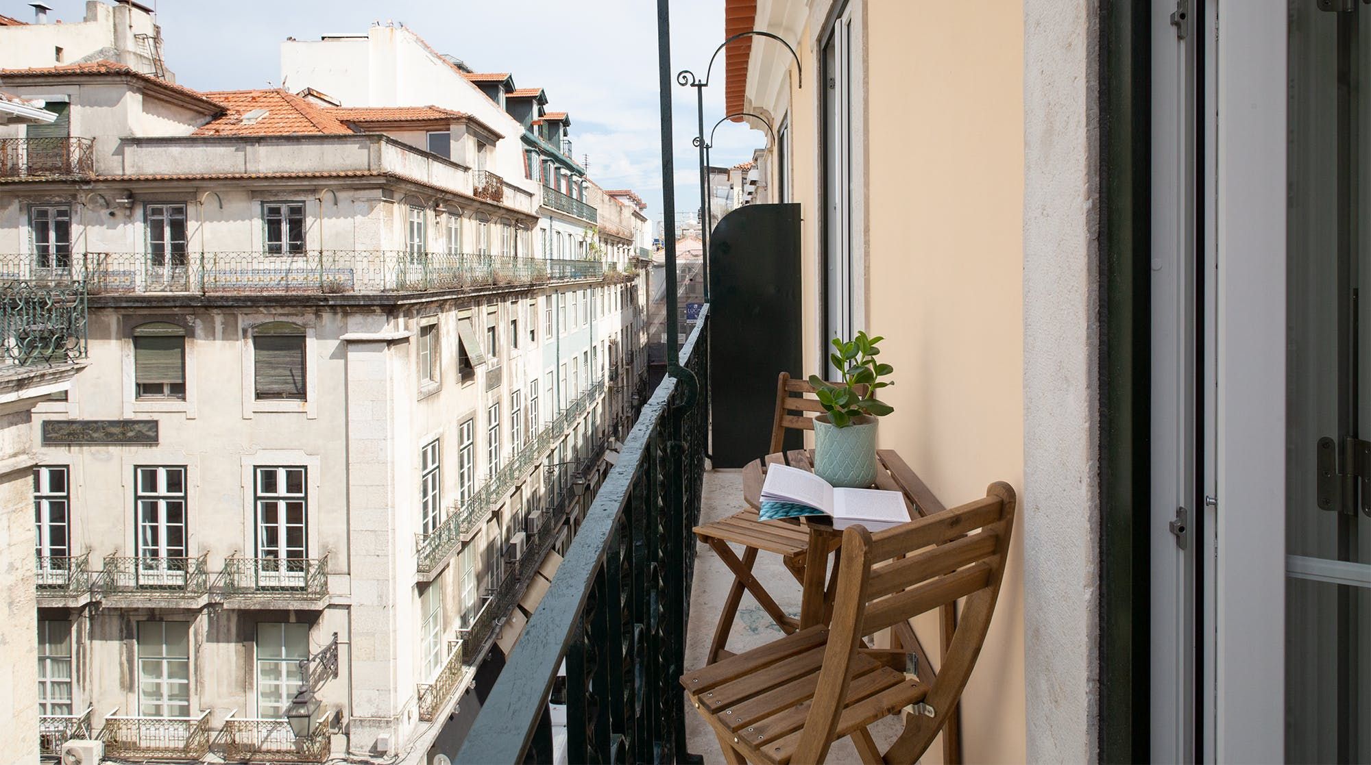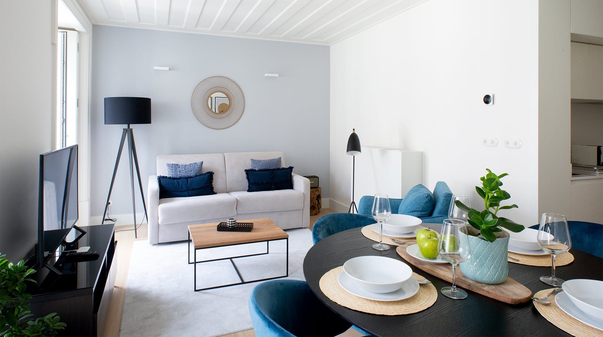 Located in the vibrant neighbourhood of Baixa, Bolo de Mirtilo is a simple home, drawing inspiration from Mid-Century aesthetic. You can tell a professional was involved in the decoration – all the tasteful furniture has been carefully selected to work with the gentle grey-blue colour palette. The long balcony on the side of the communal area overlooks the busy streets, which are only minutes away from the Santa Justa lift, Sāo Jorge Castle, or the Tejo riverfront.