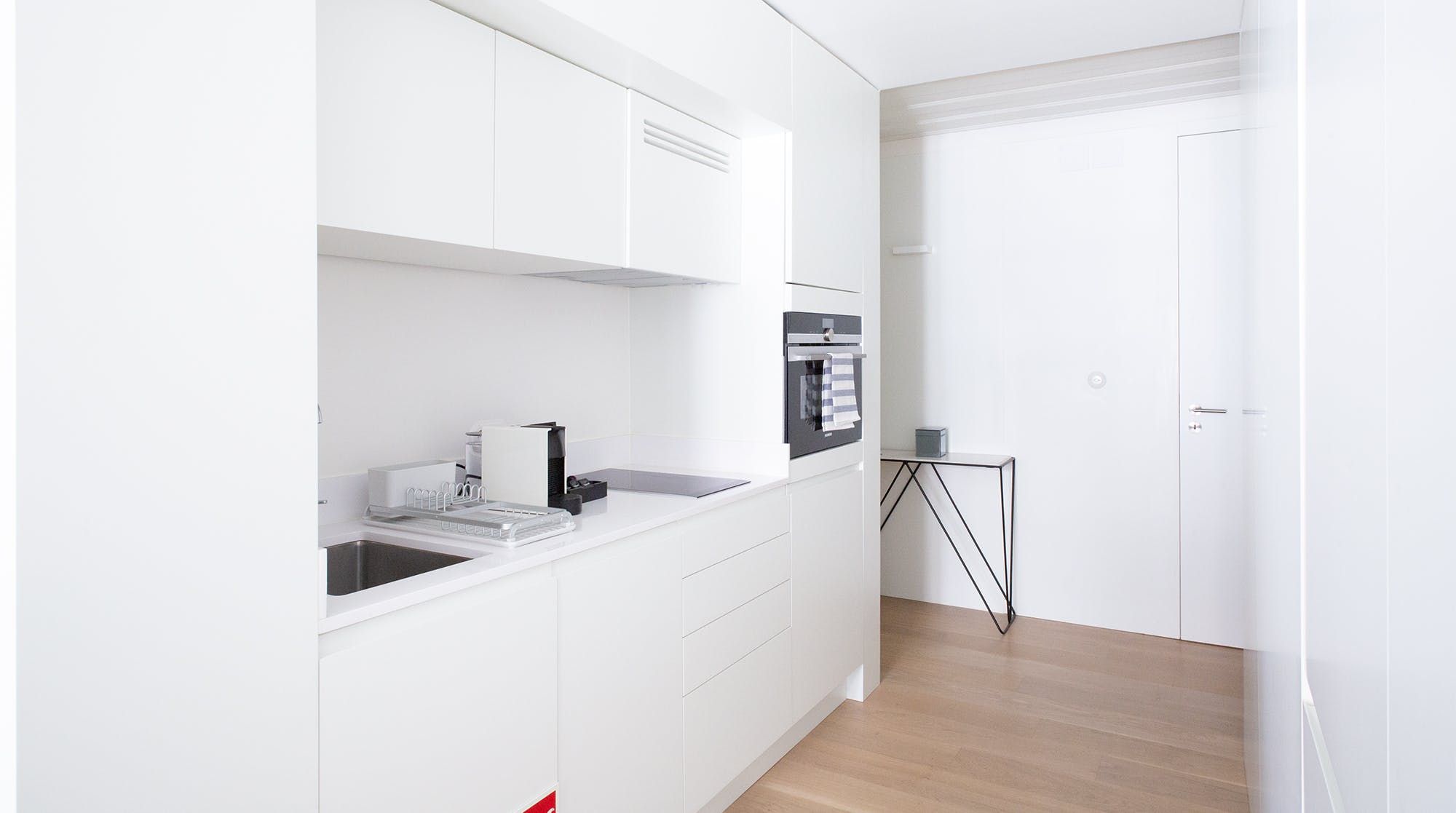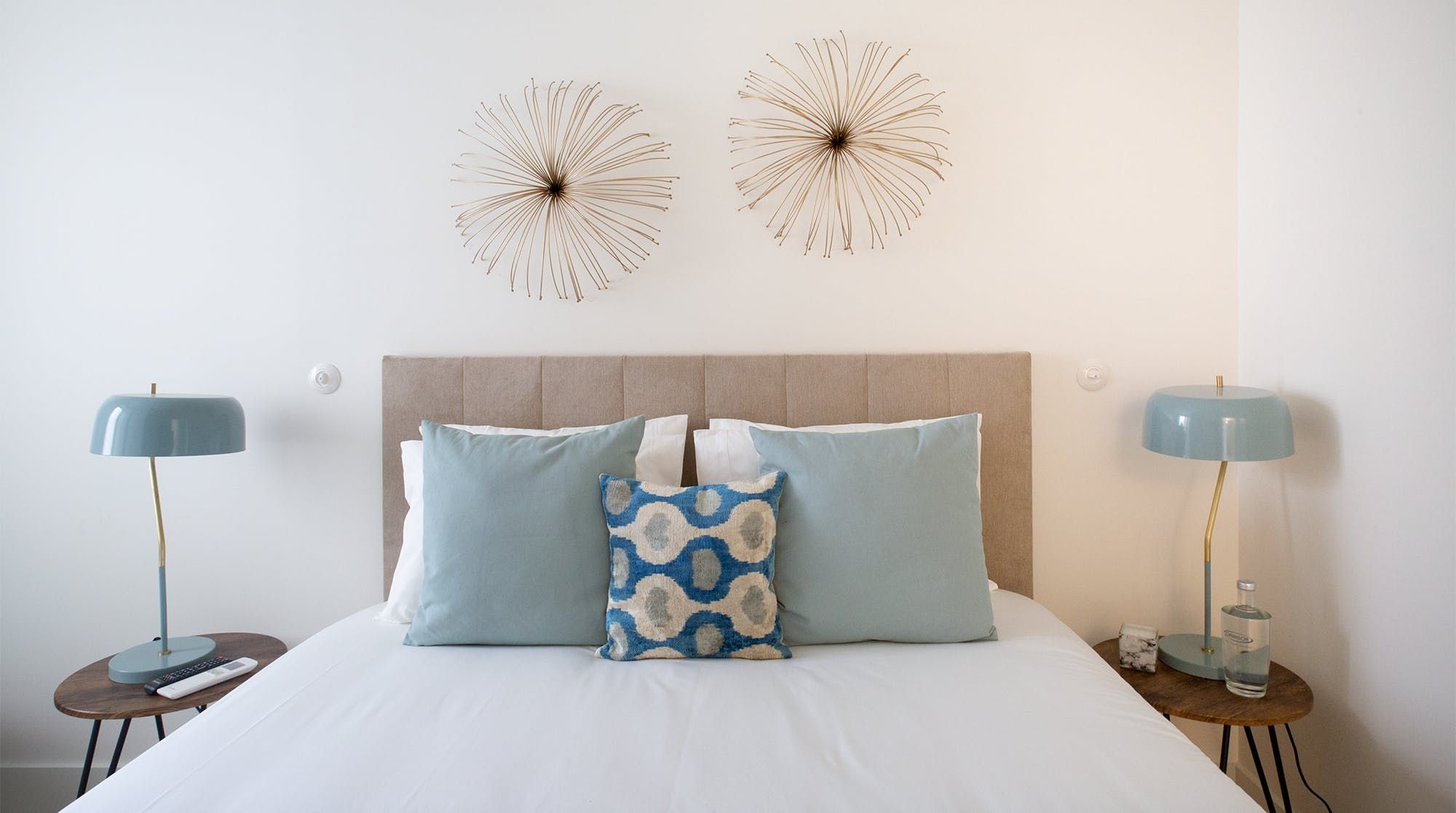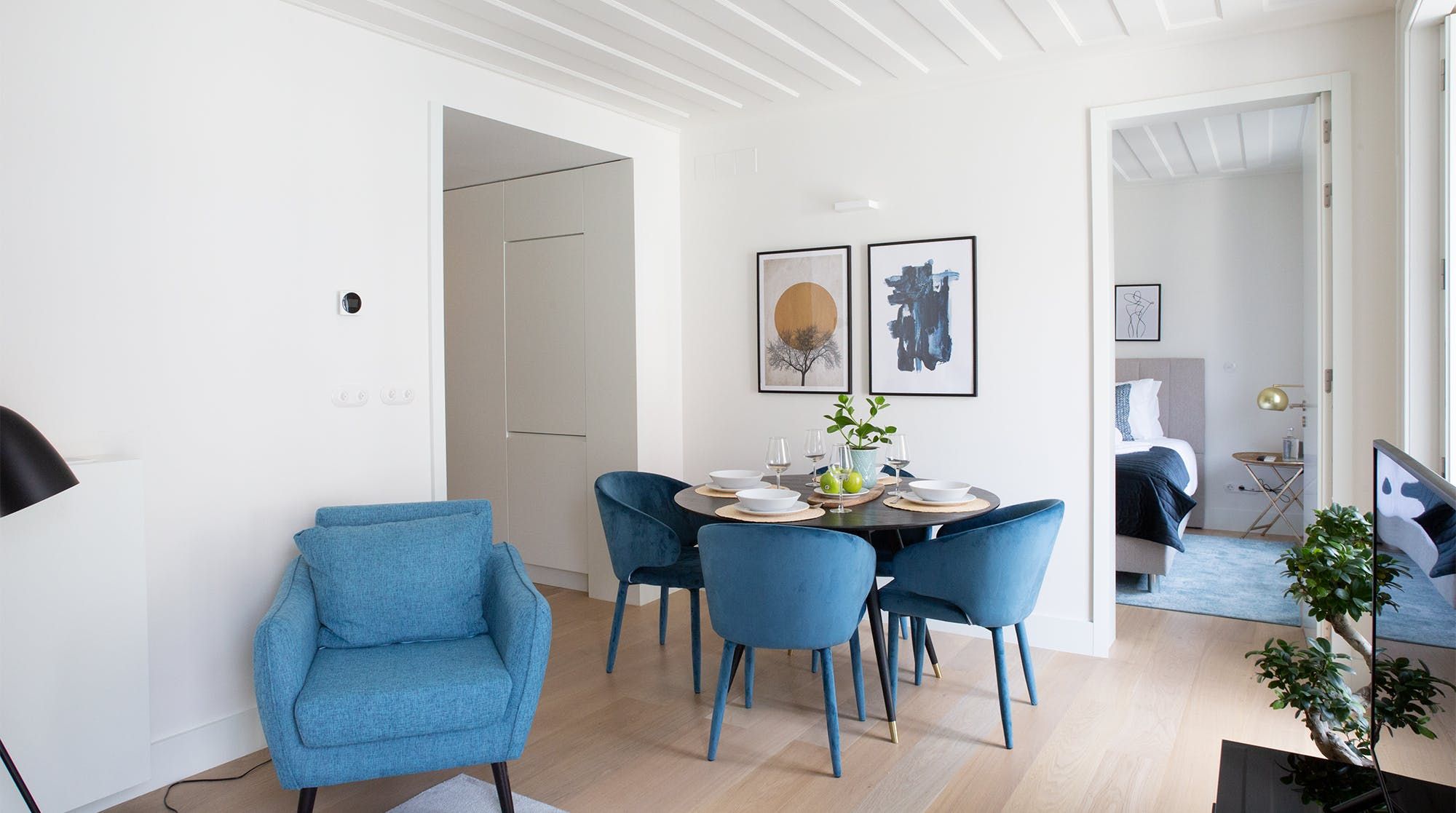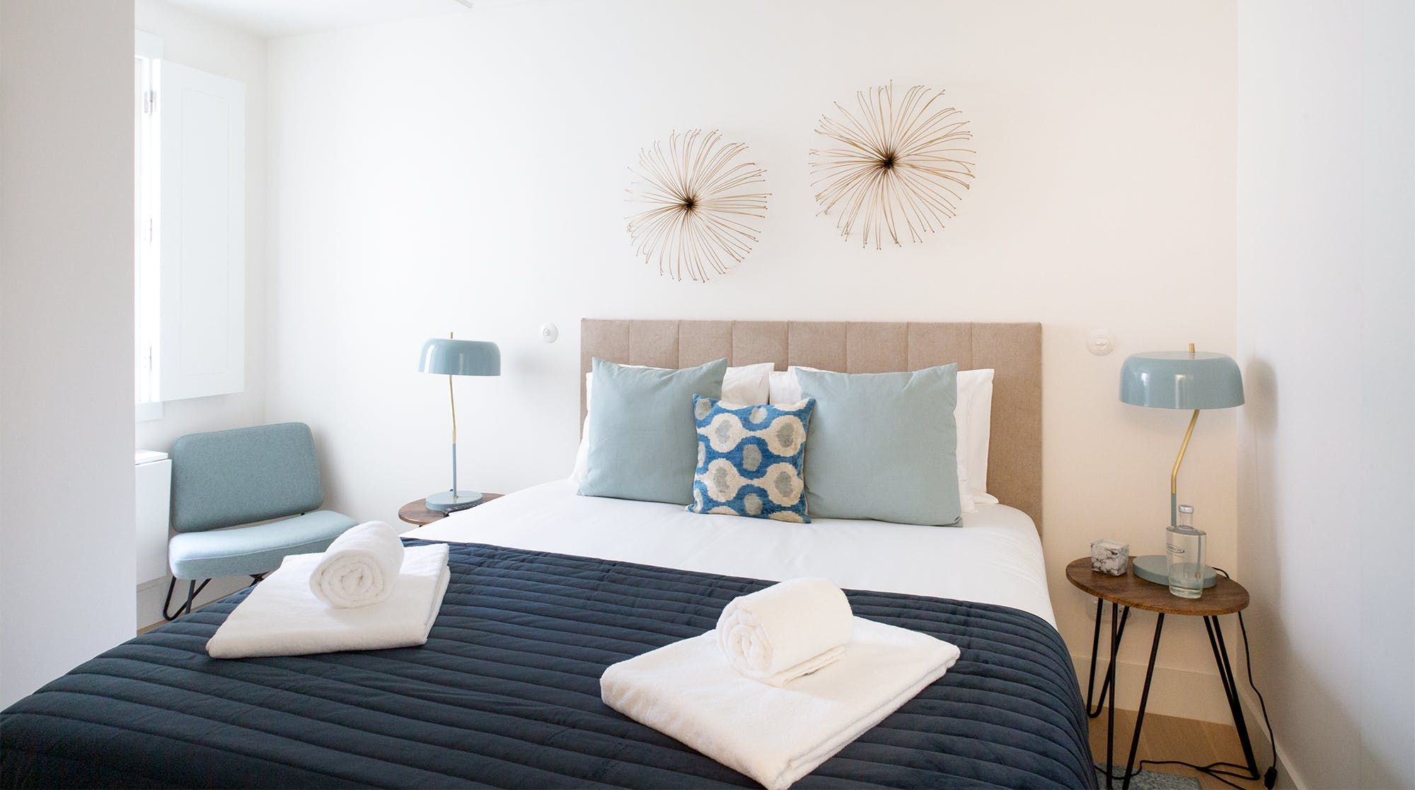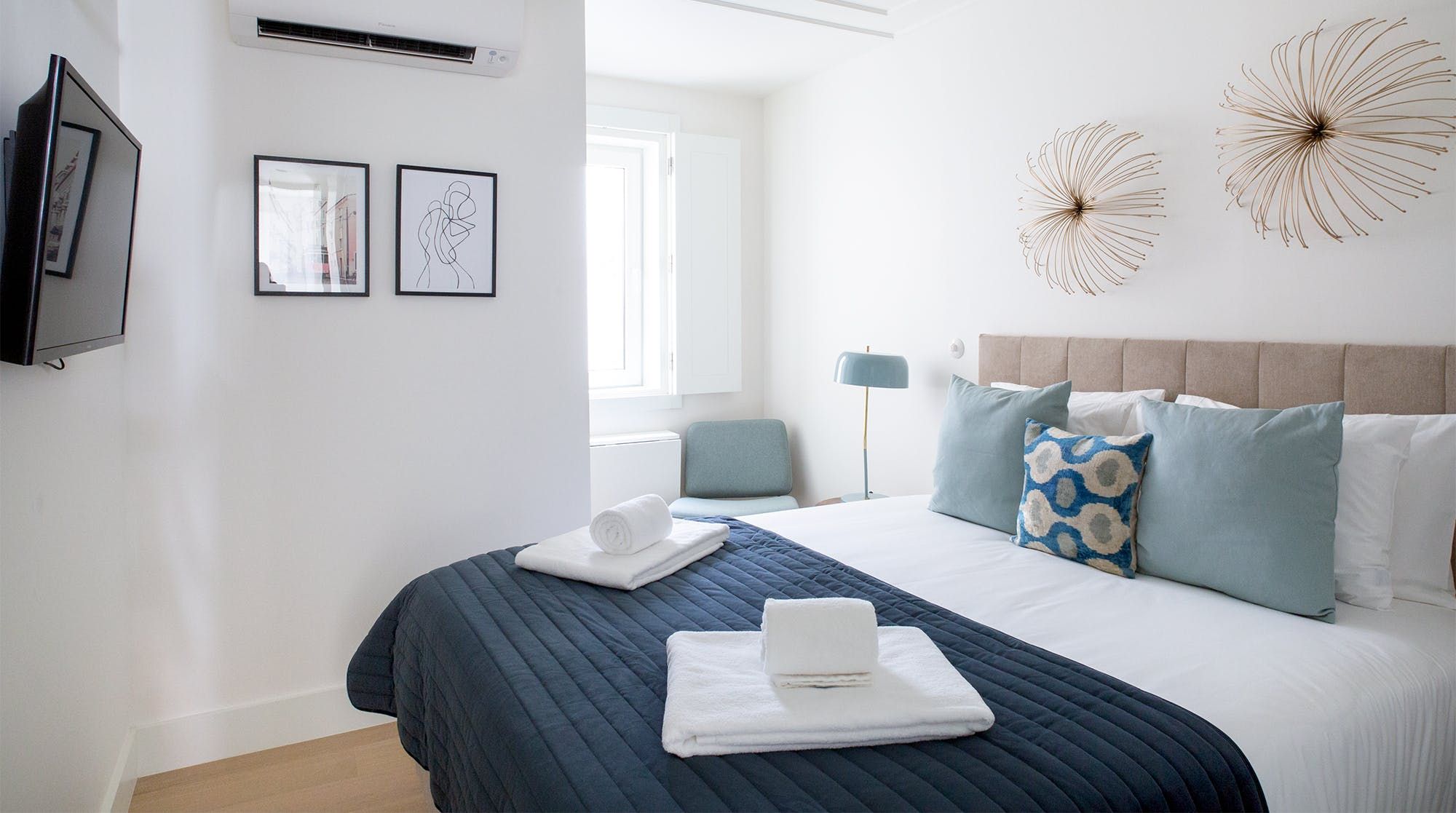 Located in the vibrant neighbourhood of Baixa, Bolo de Mirtilo is a simple home, drawing inspiration from Mid-Century aesthetic. You can tell a professional was involved in the decoration – all the tasteful furniture has been carefully selected to work with the gentle grey-blue colour palette. The long balcony on the side of the communal area overlooks the busy streets, which are only minutes away from the Santa Justa lift, Sāo Jorge Castle, or the Tejo riverfront.